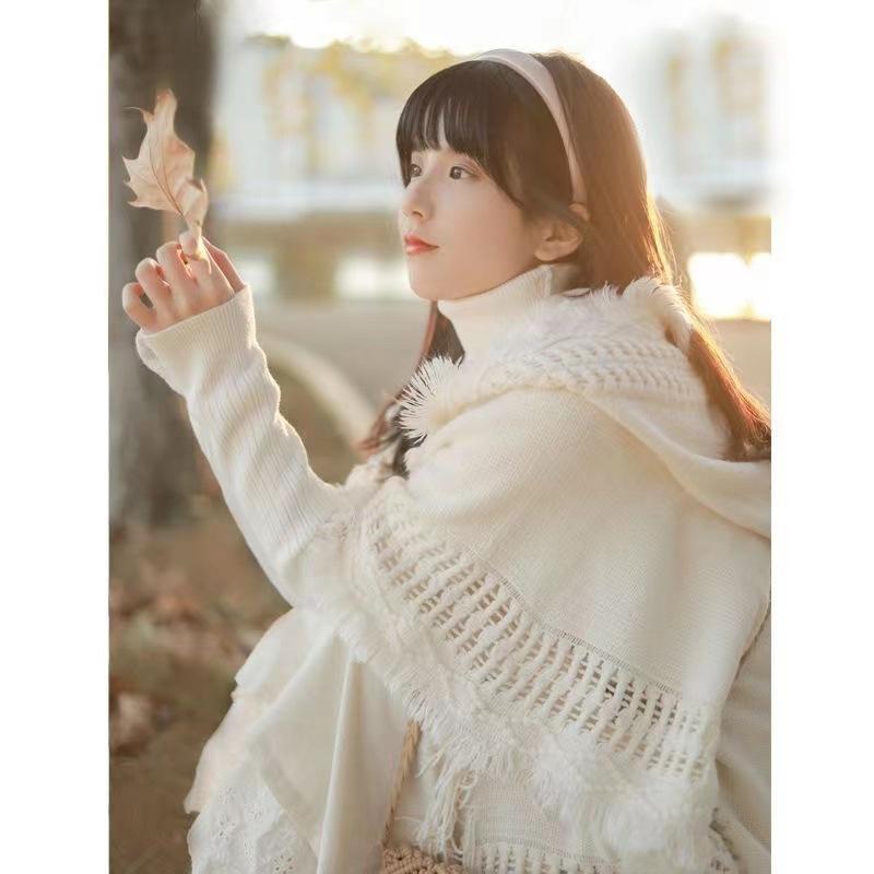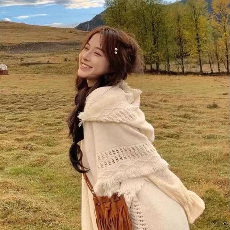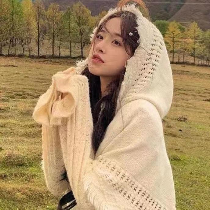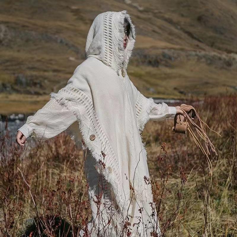Suéter bohemio con borlas y chal estilo Mori, tejido de punto, capa de viaje de pastizales de Xinjiang, bufanda con capucha, combina con todo para mujer
