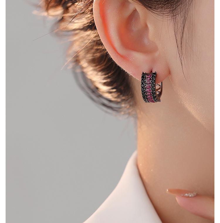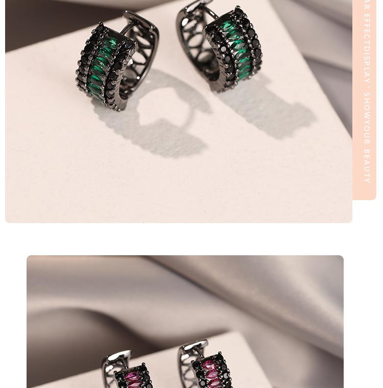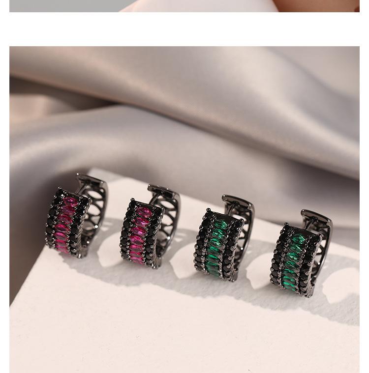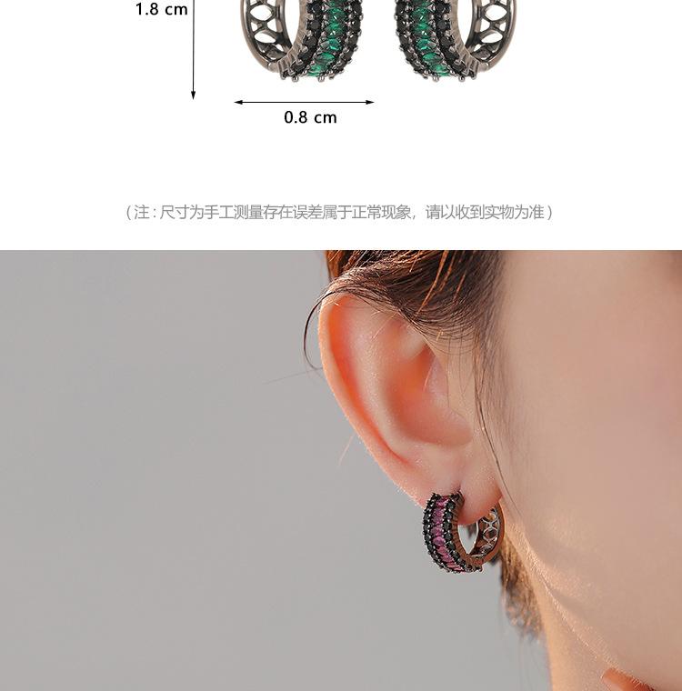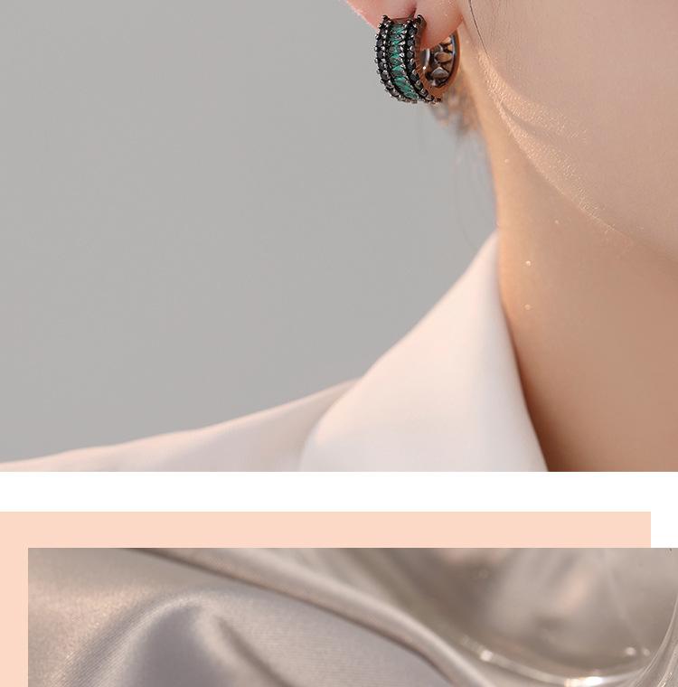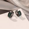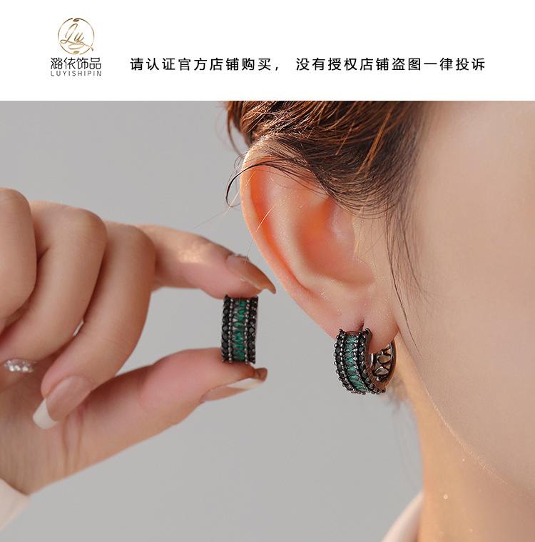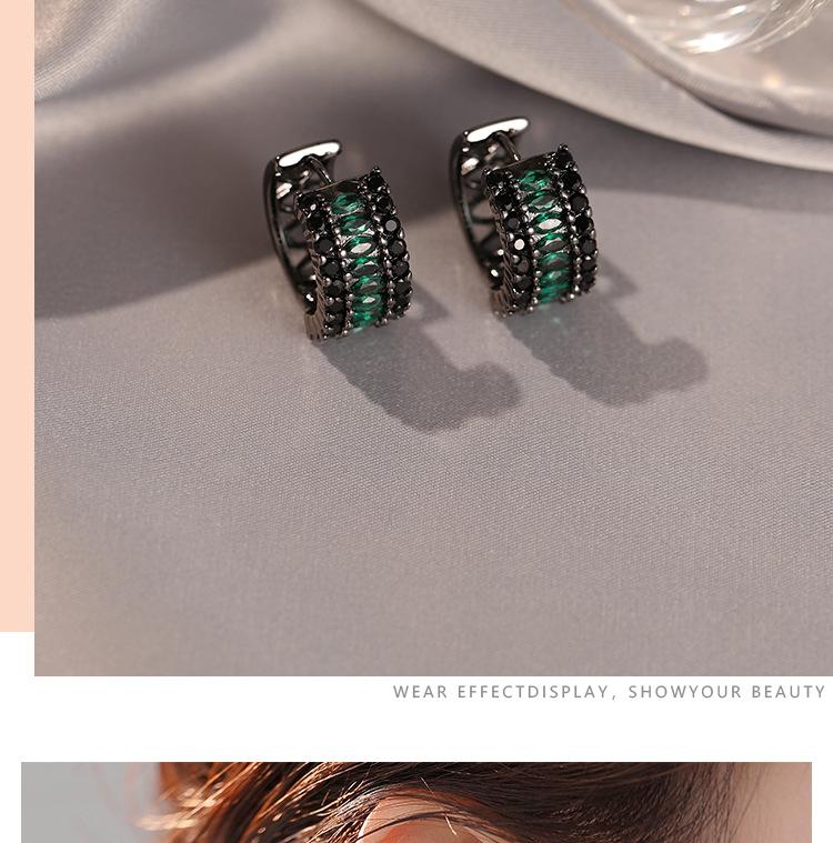 Pendientes de lujo ligeros de alta gama con incrustaciones de circonita verde, pendientes de círculo negro retro, pendientes de temperamento de nicho, venta al por mayor