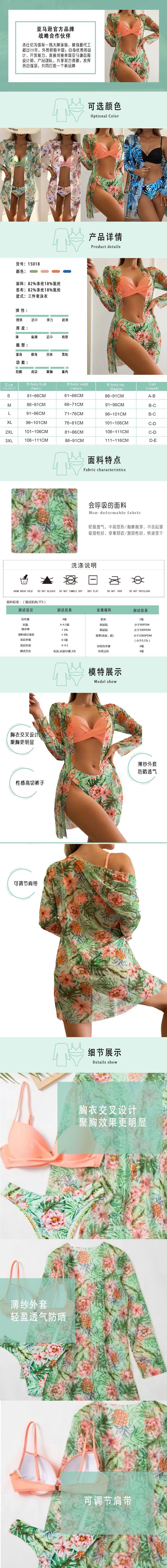 Traje de Baño Bikini al por Mayor, Conjunto de Tres Piezas con Tirantes, Bikini para Mujer Estilo Europeo y Americano
