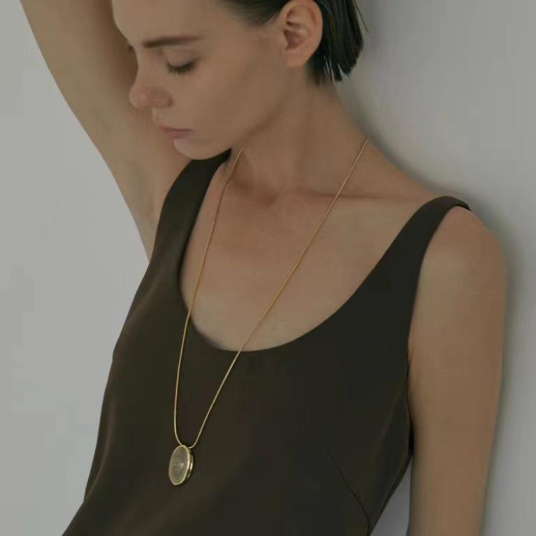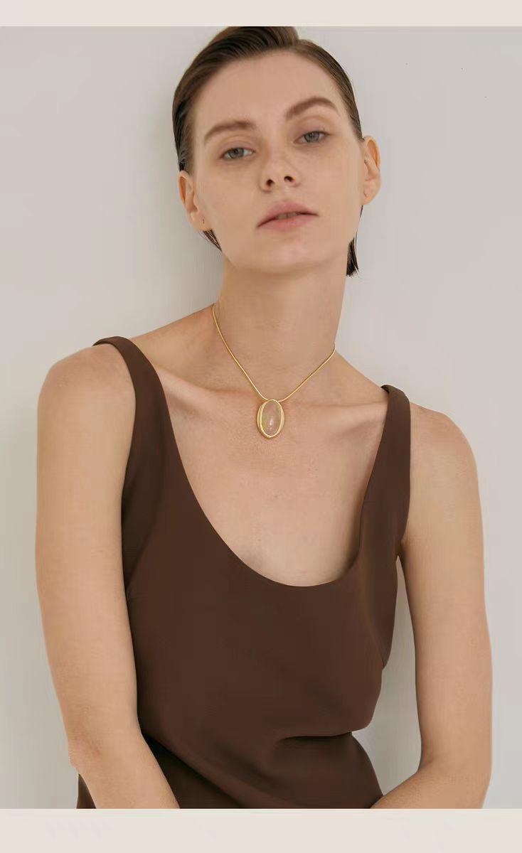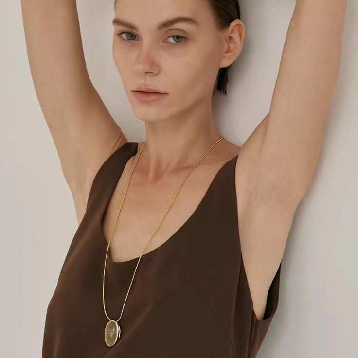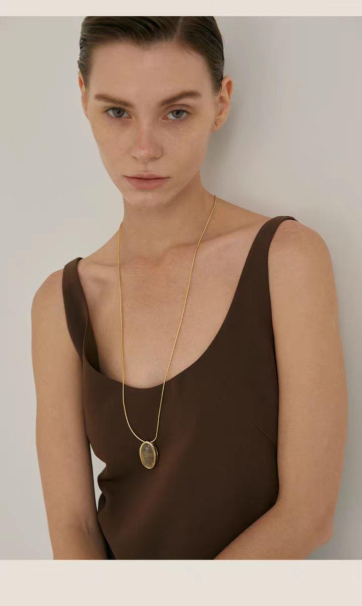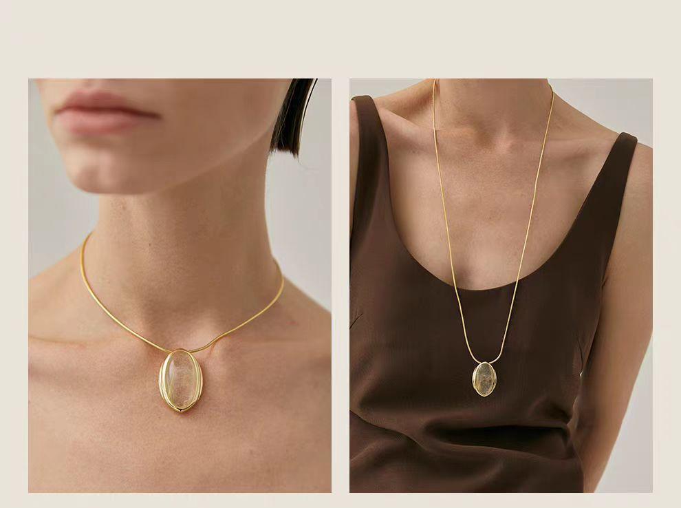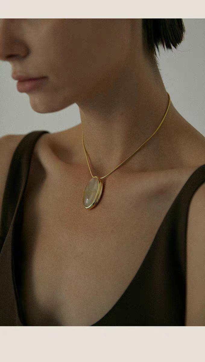 Collar con colgante de piedra natural de cristal, chapado en cobre, oro auténtico, cadena ajustable, nicho, collar sencillo que combina con todo, de moda y de alta calidad.