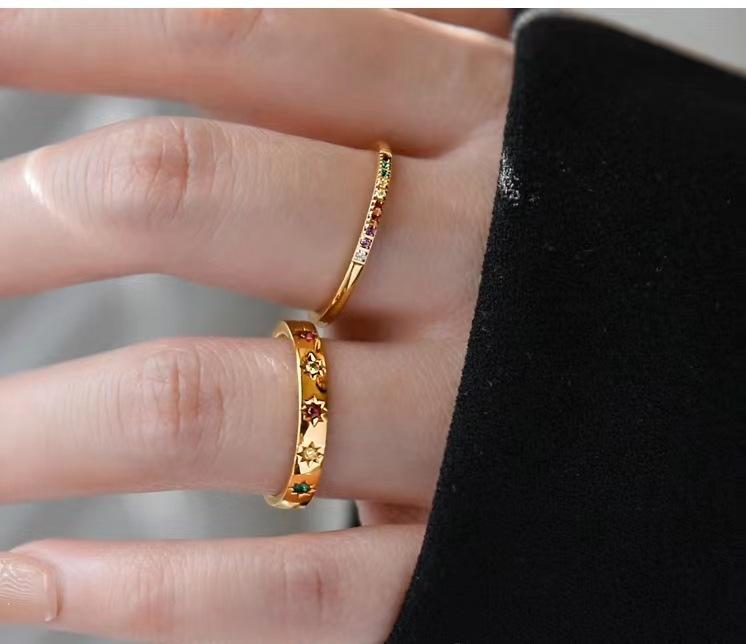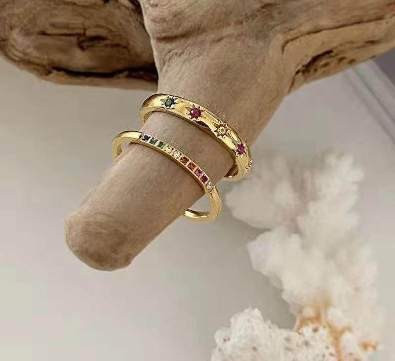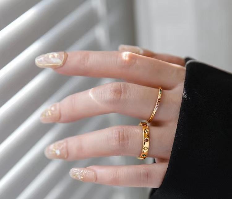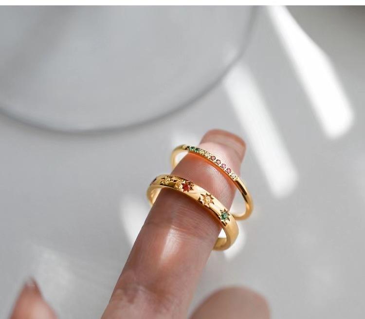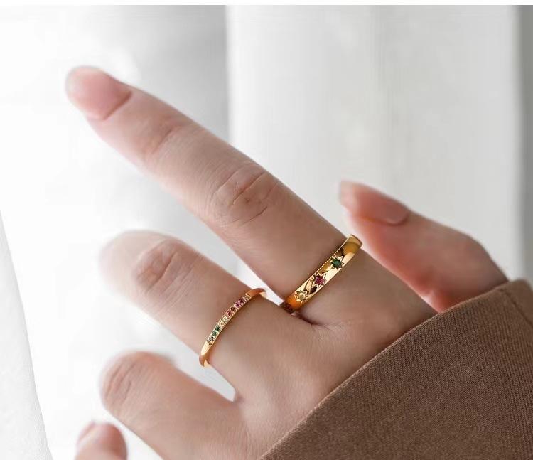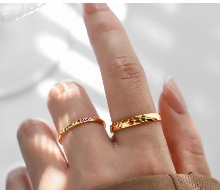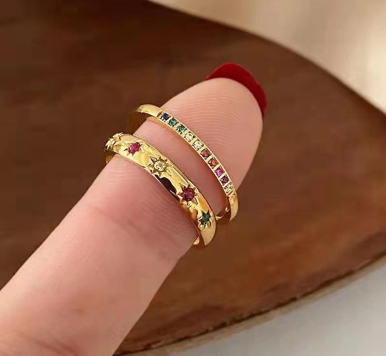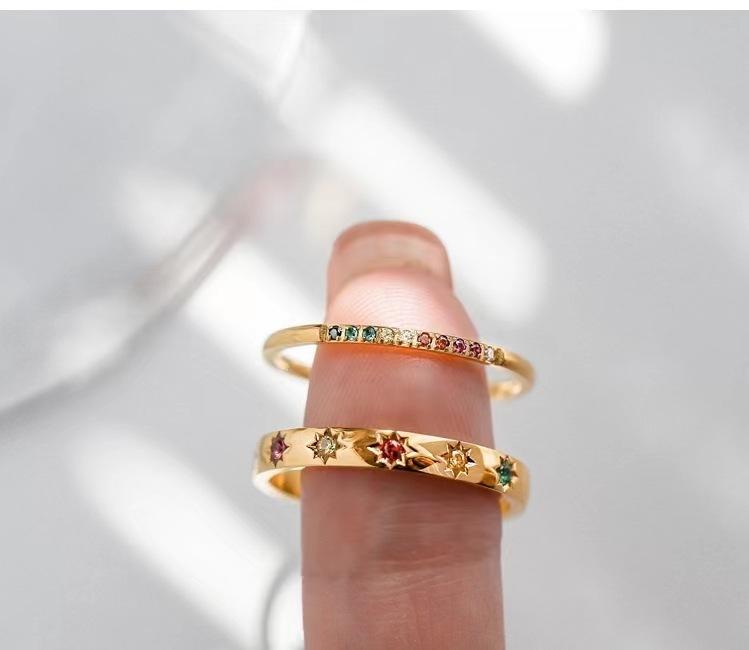 Anillo de circonita de color estrella de alta calidad con diseño de nicho japonés y coreano popular y recomendado, estilo INS, resistente a la decoloración, venta al por mayor