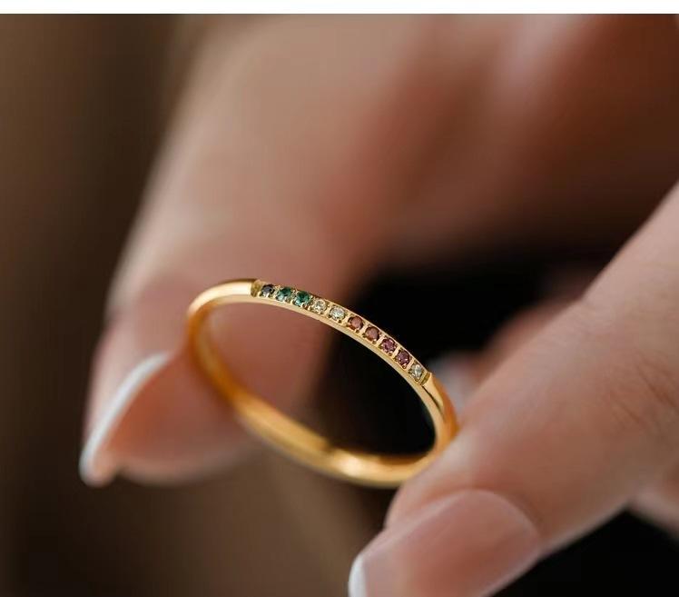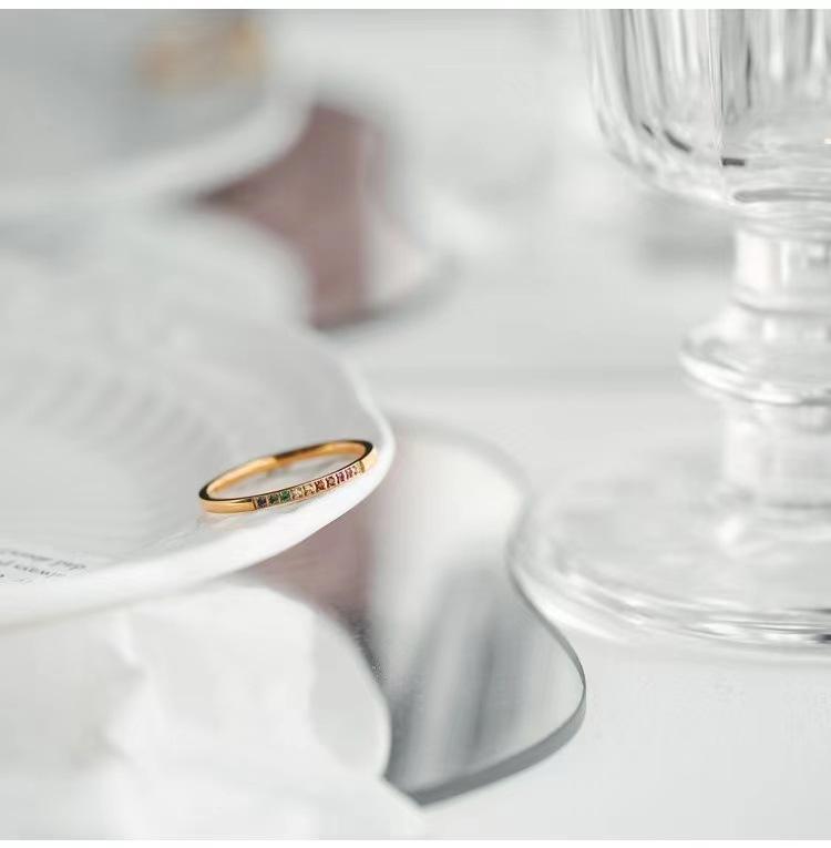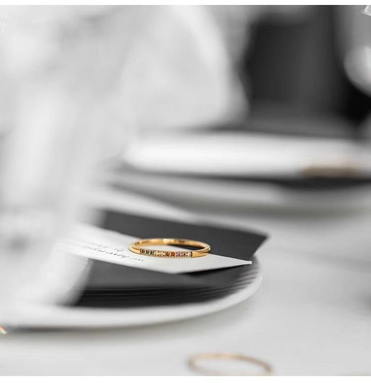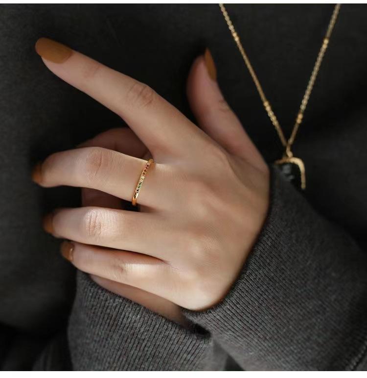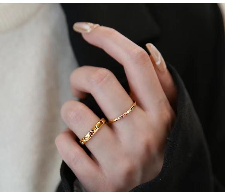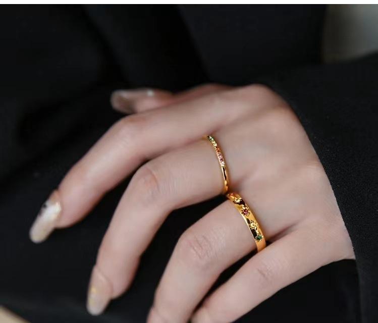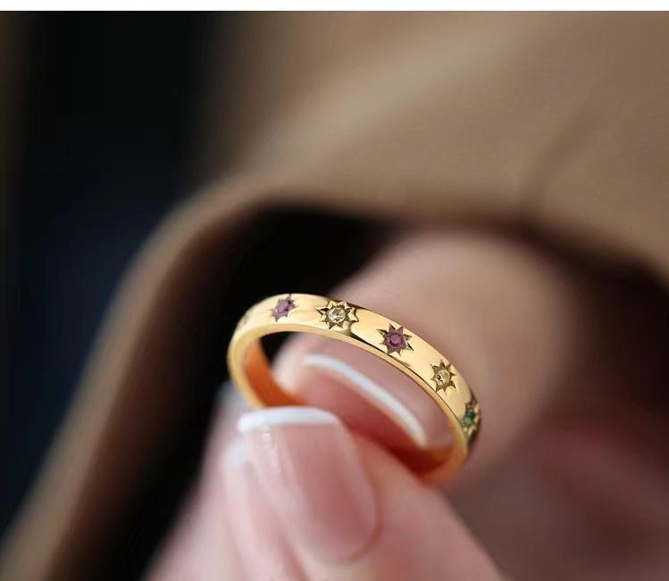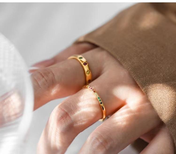 Anillo de circonita de color estrella de alta calidad con diseño de nicho japonés y coreano popular y recomendado, estilo INS, resistente a la decoloración, venta al por mayor