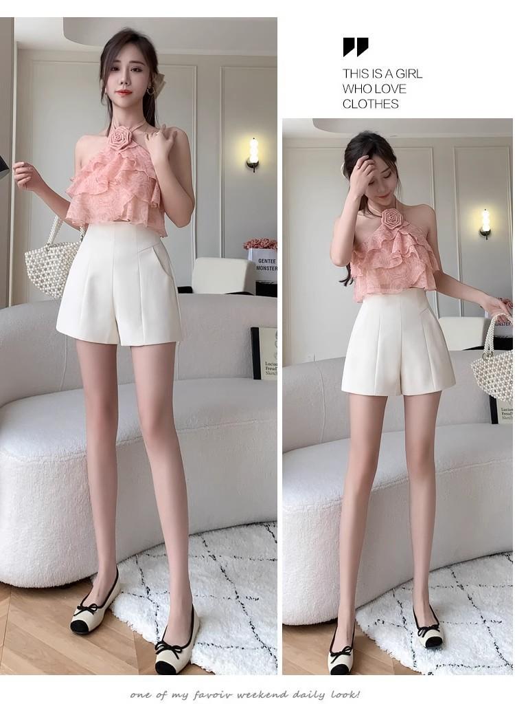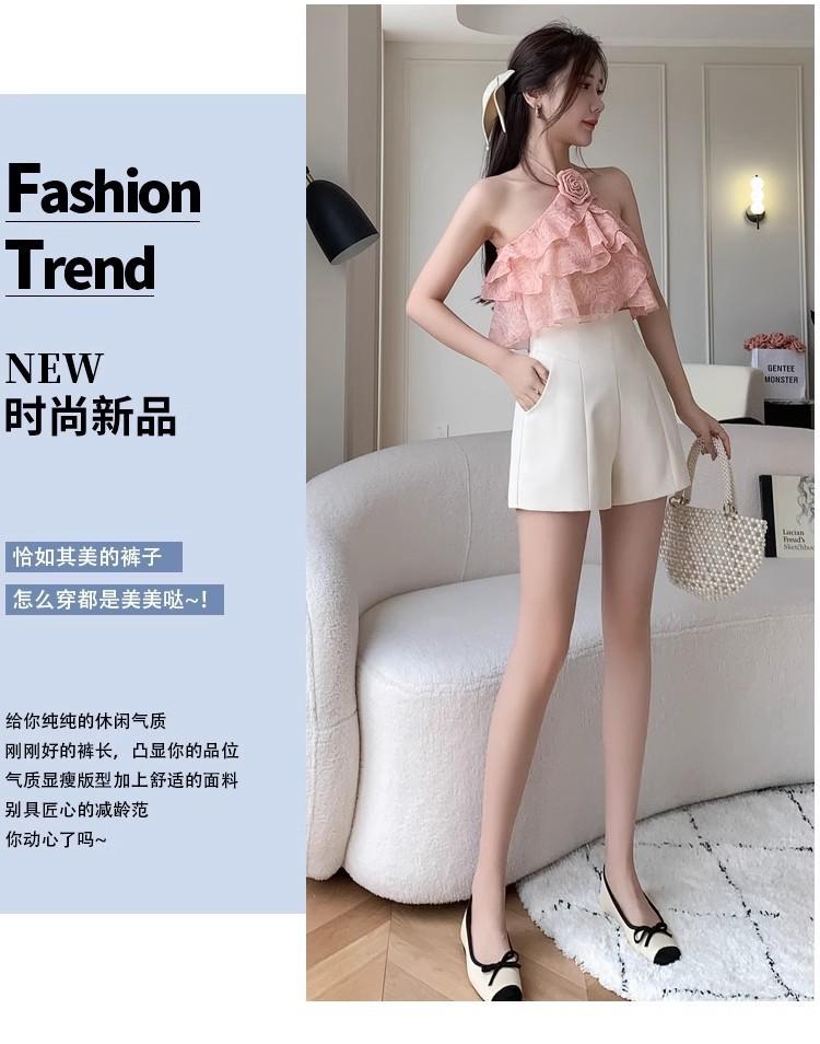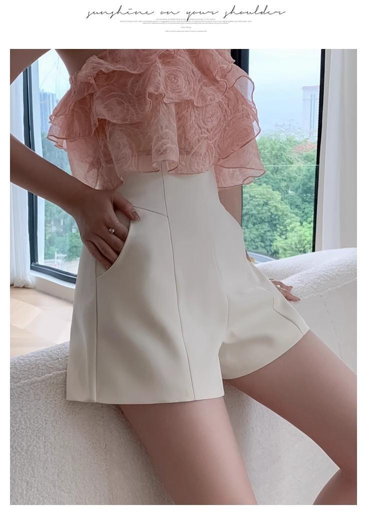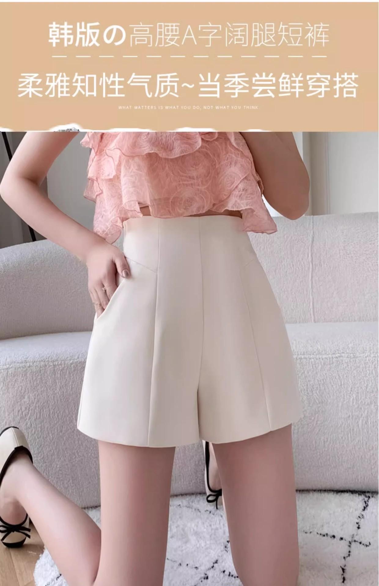 Primavera y Verano 2024 Nuevo Pantalón Casual Adelgazante de Cintura Alta para Mujer Tipo A Suelto Traje Pantalones de Pierna Ancha Shorts Blancos
