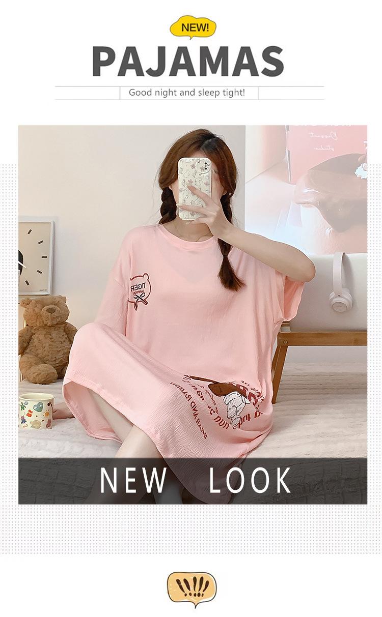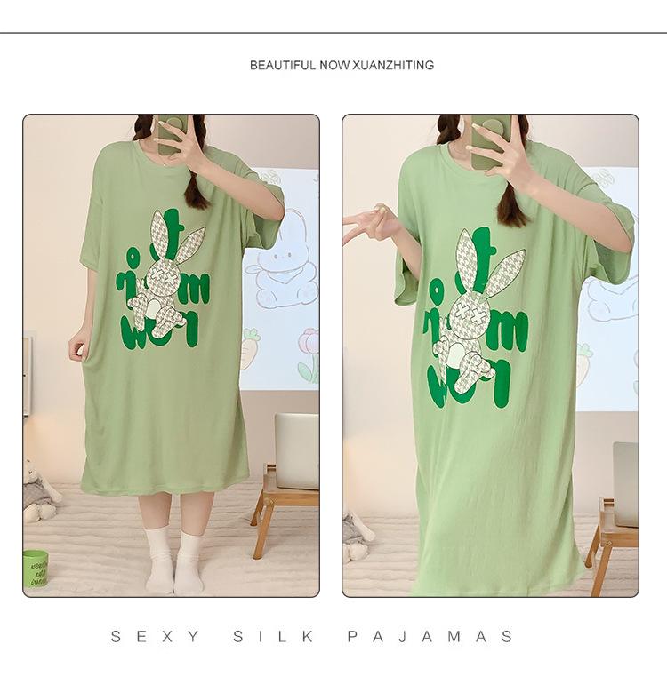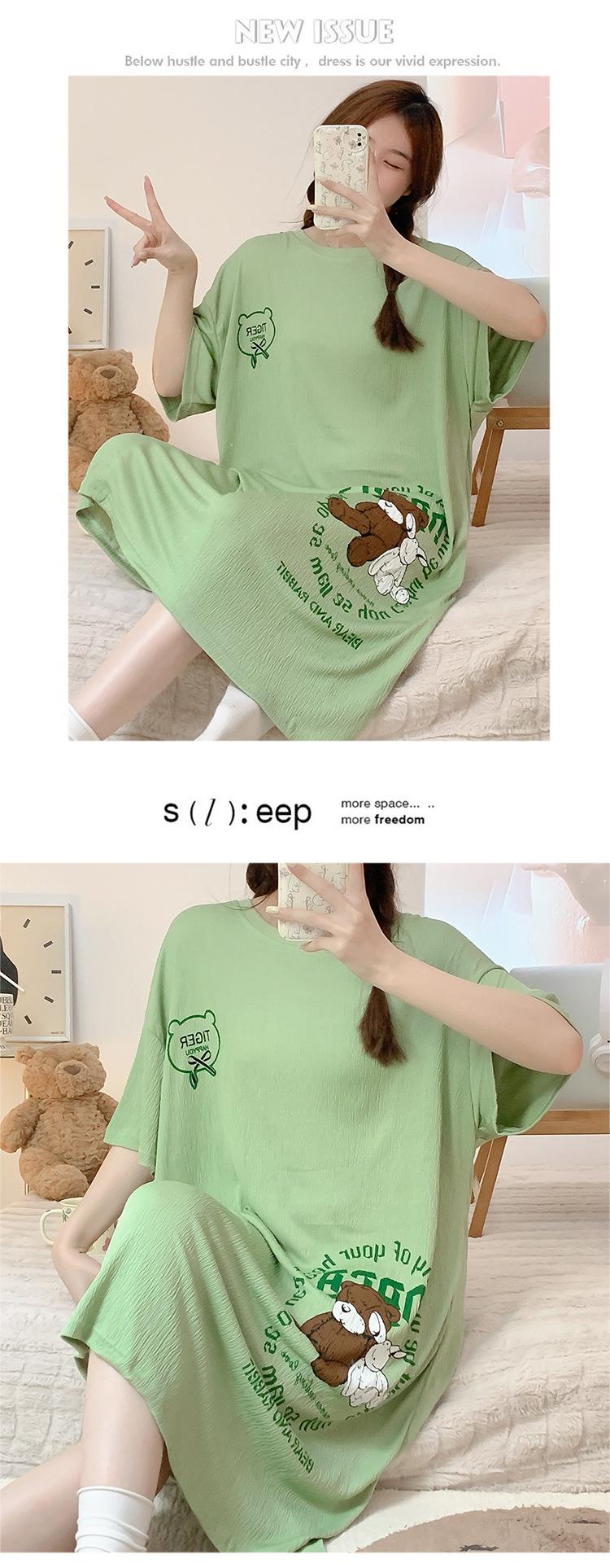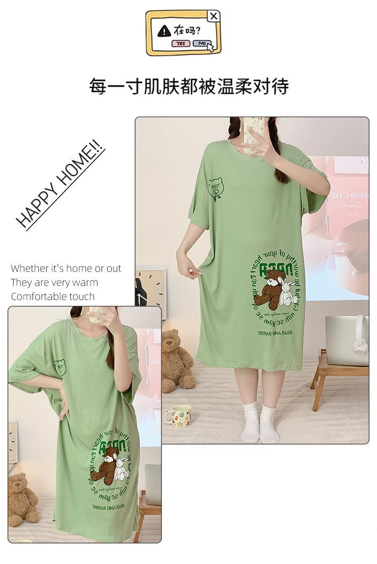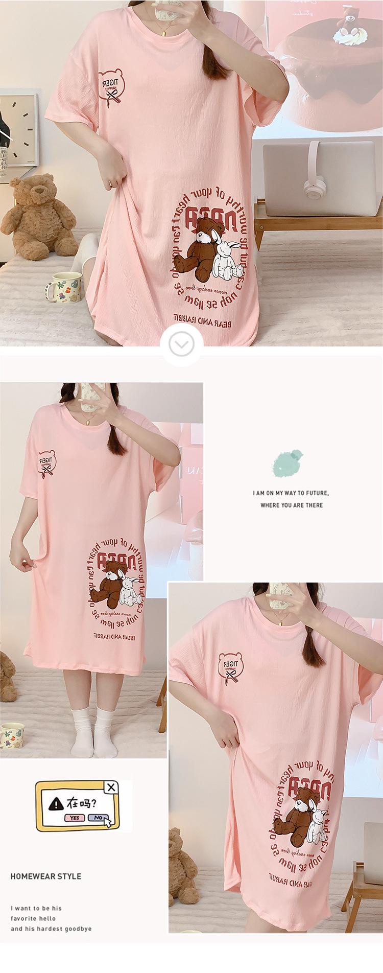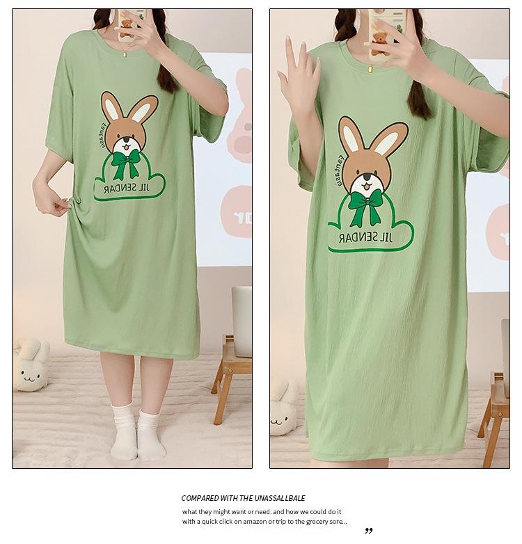 Pijama de verano para mujer, dulce camisón largo de manga corta con dibujos animados, talla grande, 250 kg de grasa, ropa para el hogar que se puede usar al aire libre