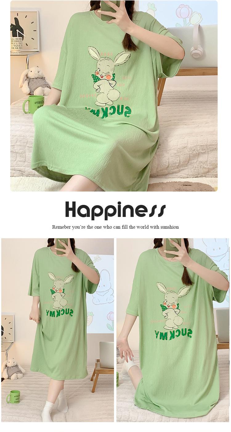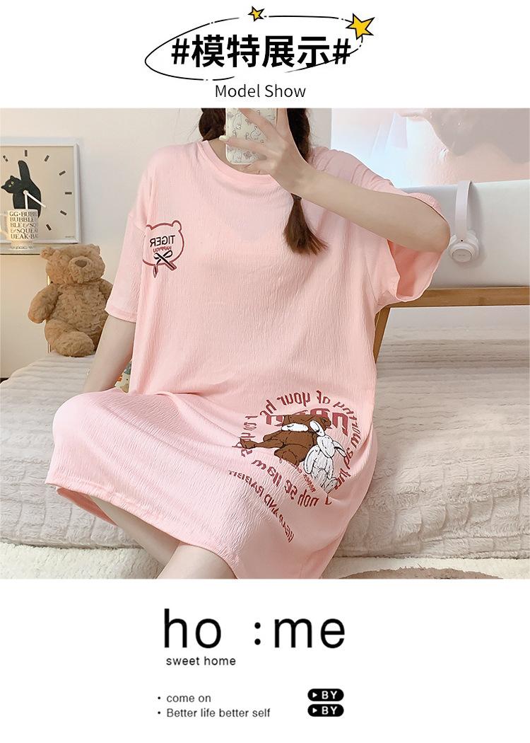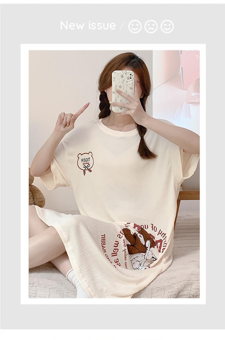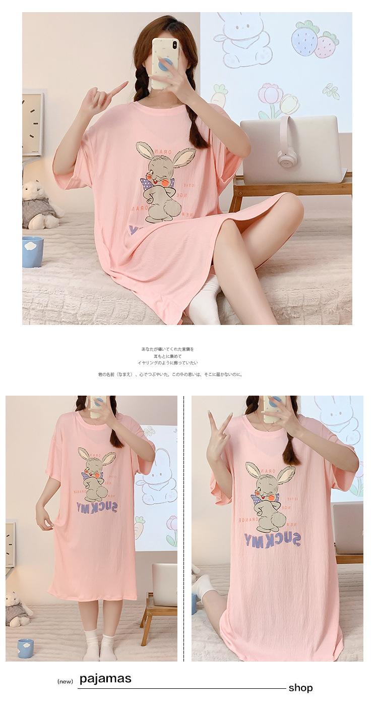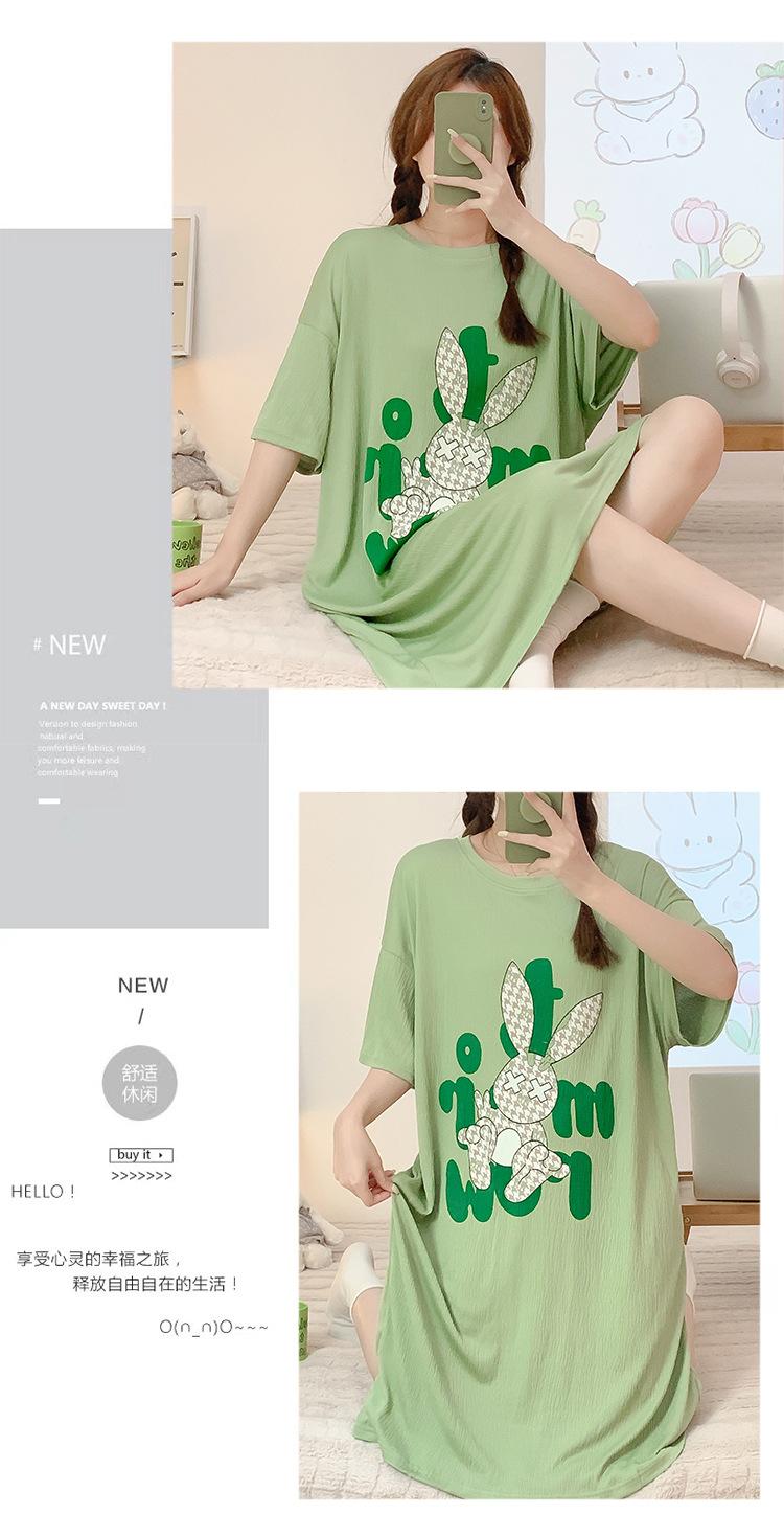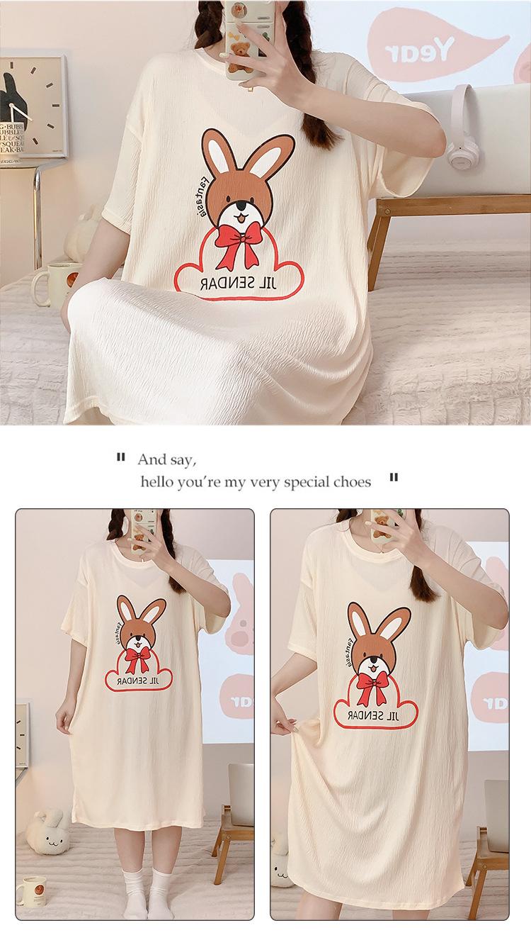 Pijama de verano para mujer, dulce camisón largo de manga corta con dibujos animados, talla grande, 250 kg de grasa, ropa para el hogar que se puede usar al aire libre