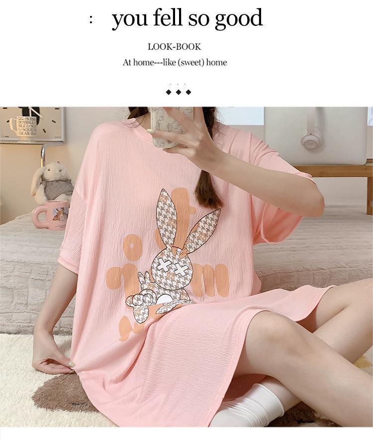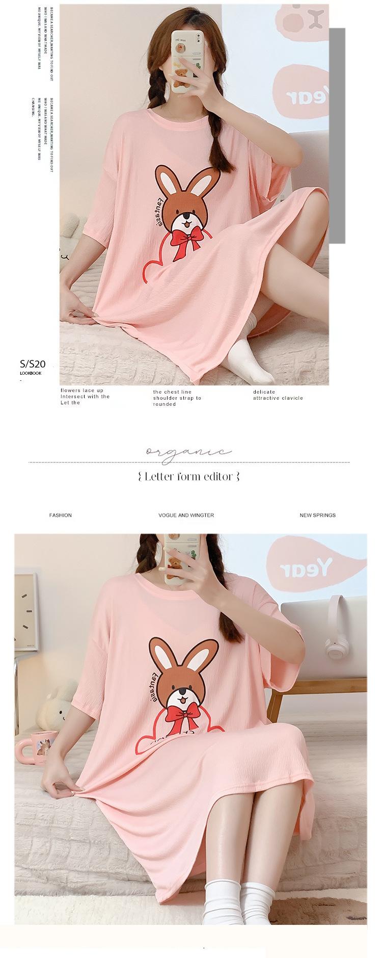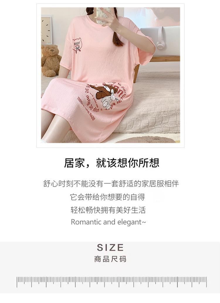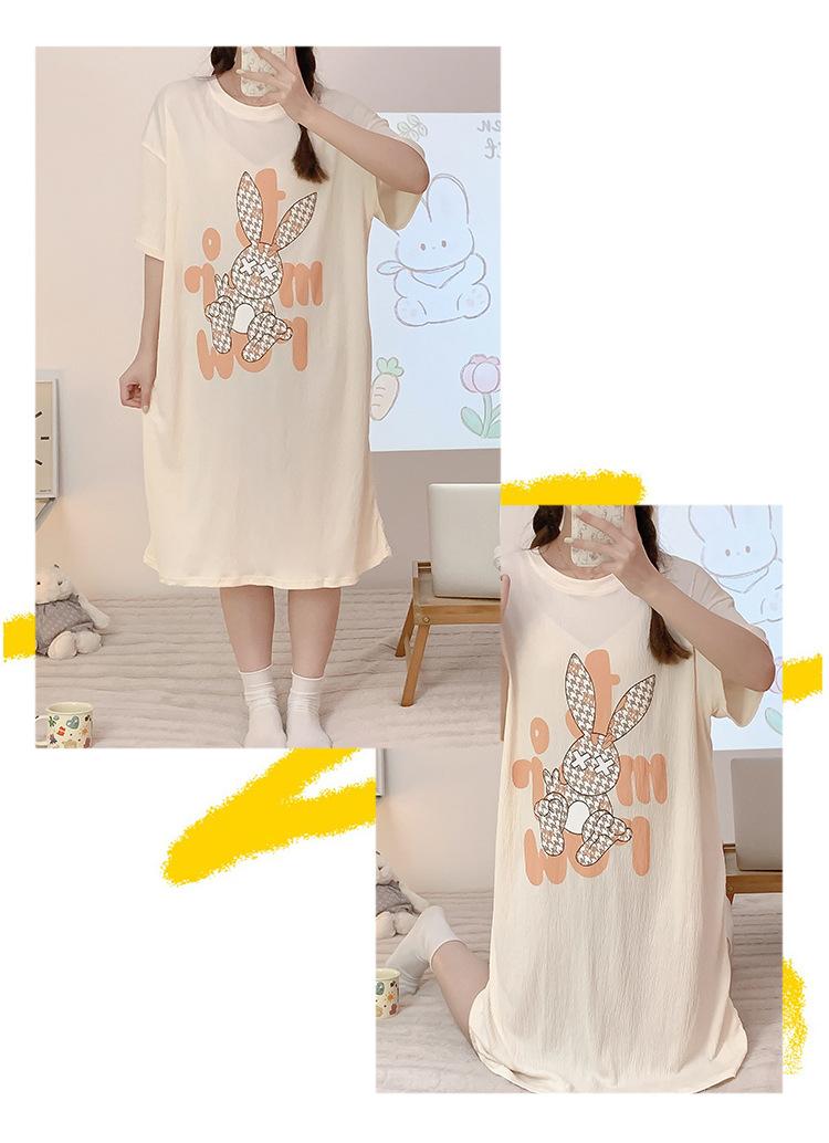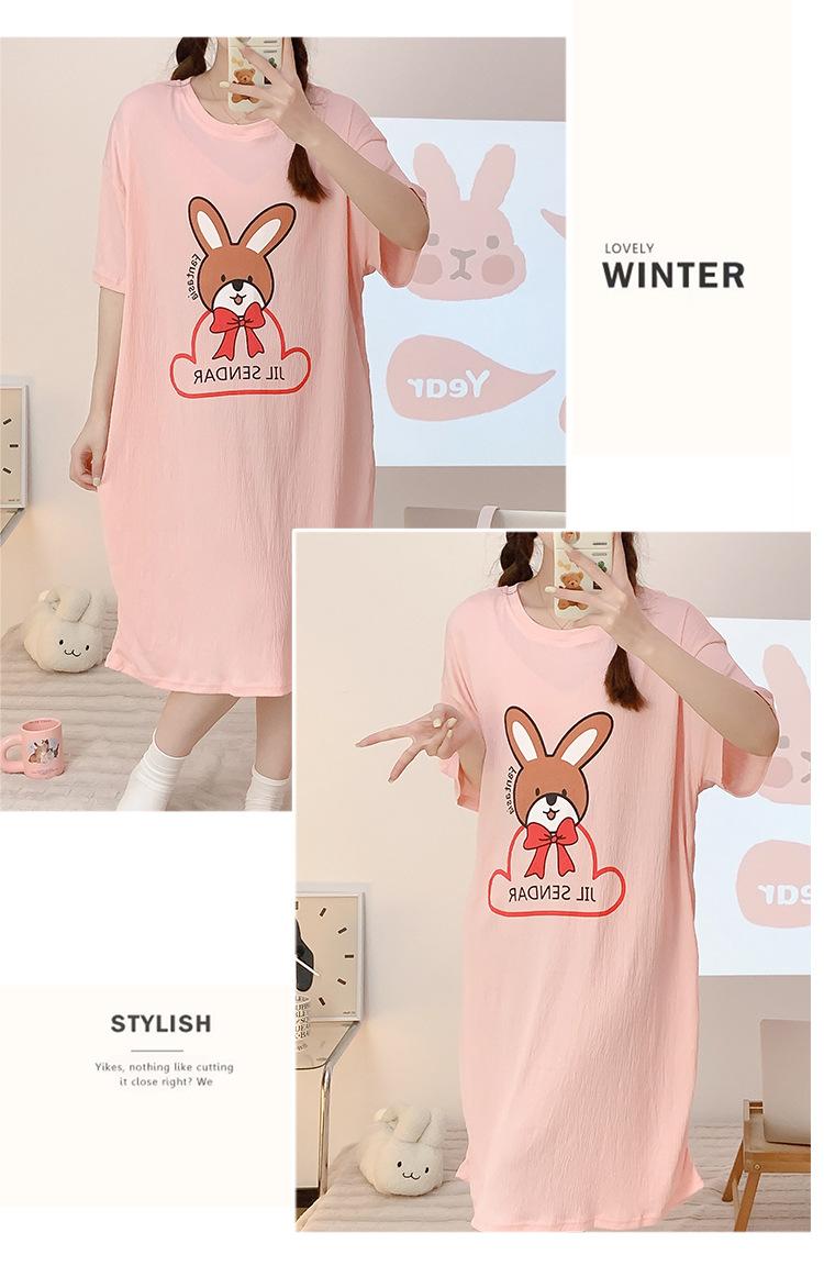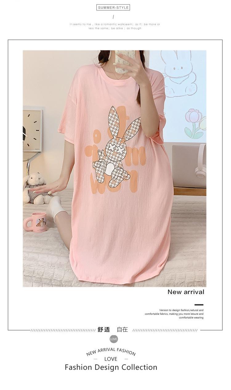 Pijama de verano para mujer, dulce camisón largo de manga corta con dibujos animados, talla grande, 250 kg de grasa, ropa para el hogar que se puede usar al aire libre