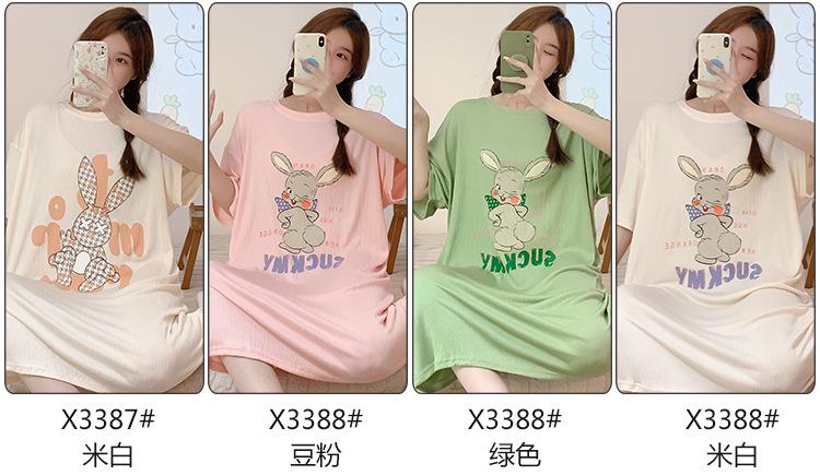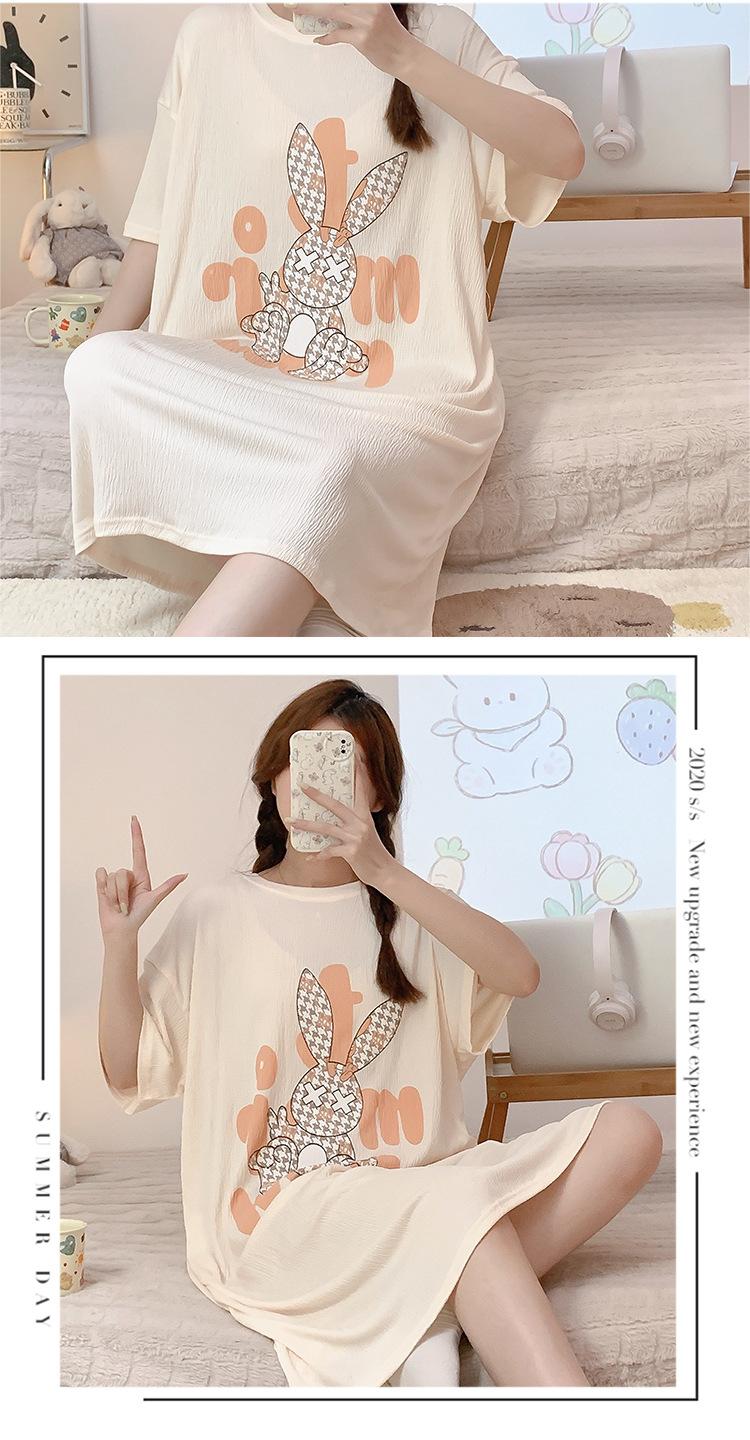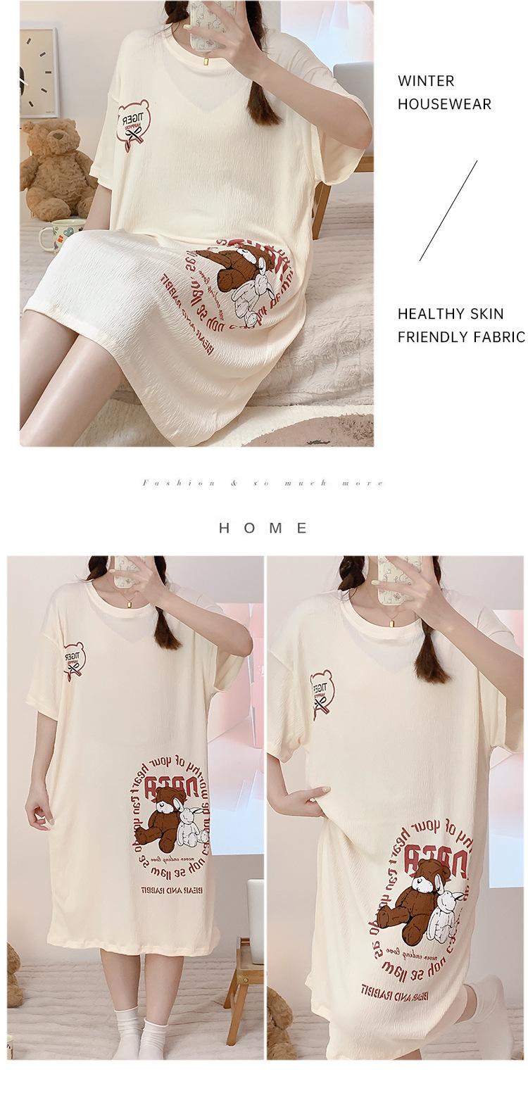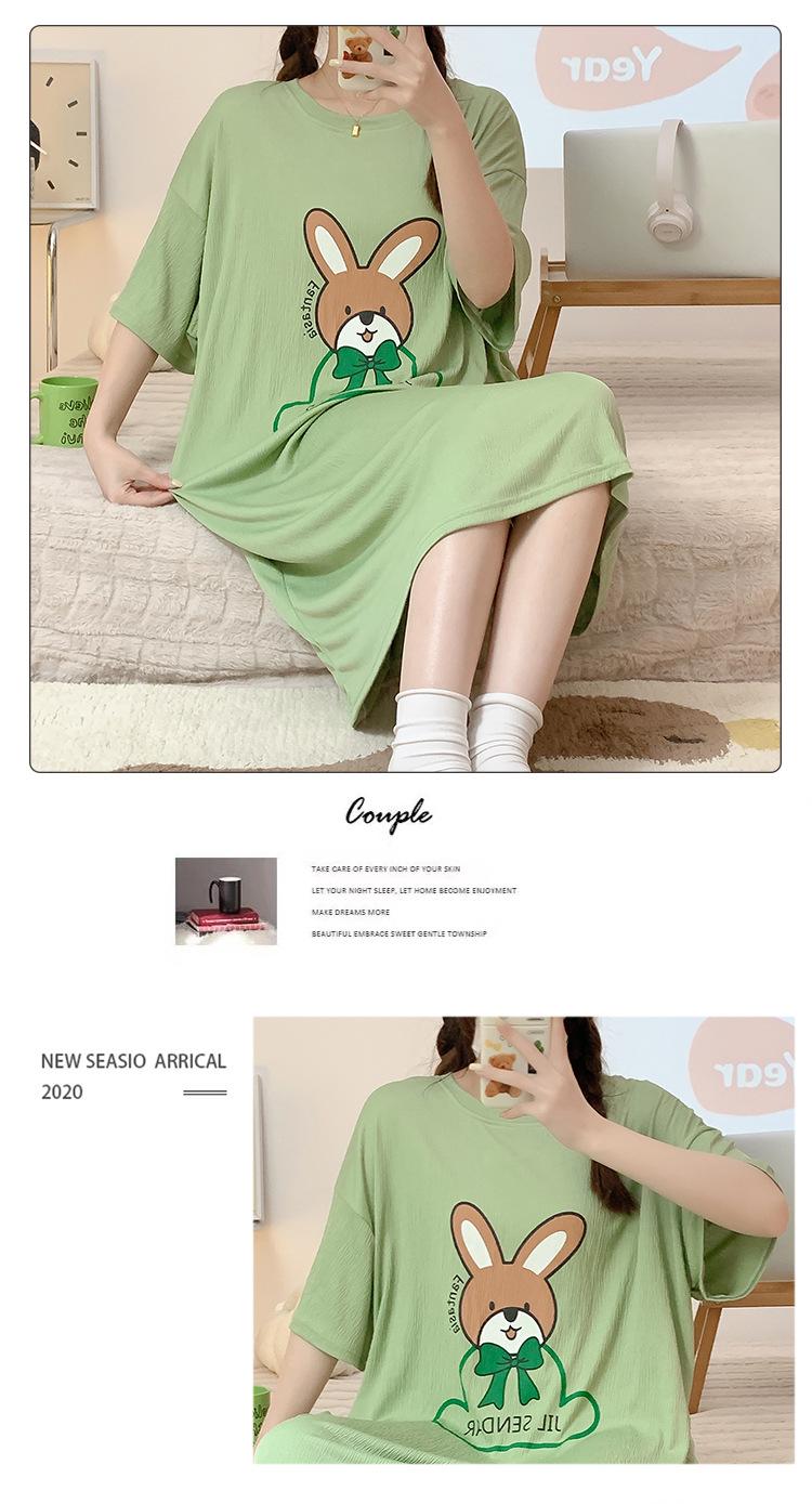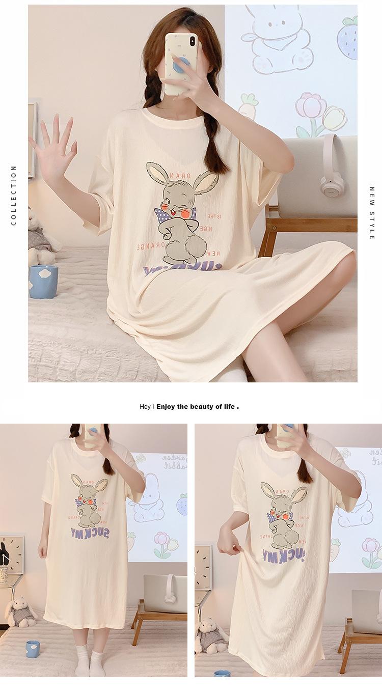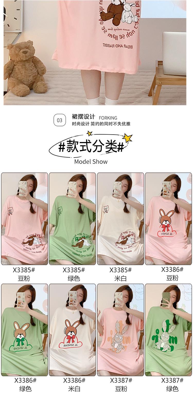Pijama de verano para mujer, dulce camisón largo de manga corta con dibujos animados, talla grande, 250 kg de grasa, ropa para el hogar que se puede usar al aire libre