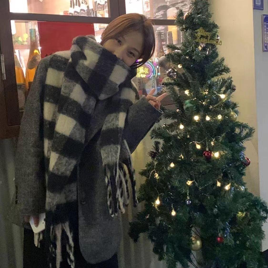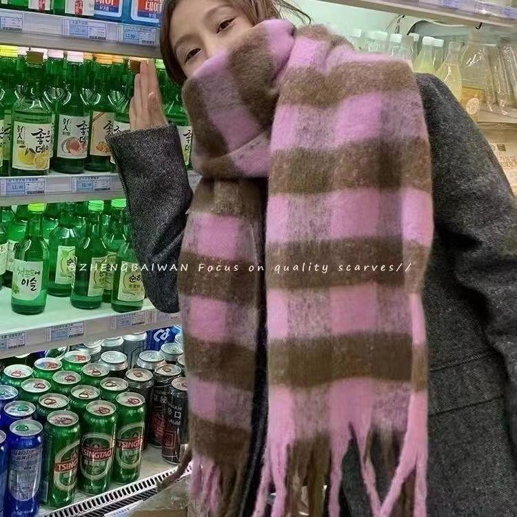 Bufanda a cuadros para mujer Invierno Otoño e Invierno Nuevo Cachemira Engrosada Cálida Cuello Combinable Borla Chal para Hombre