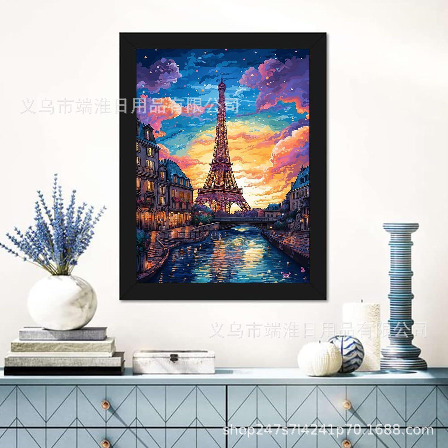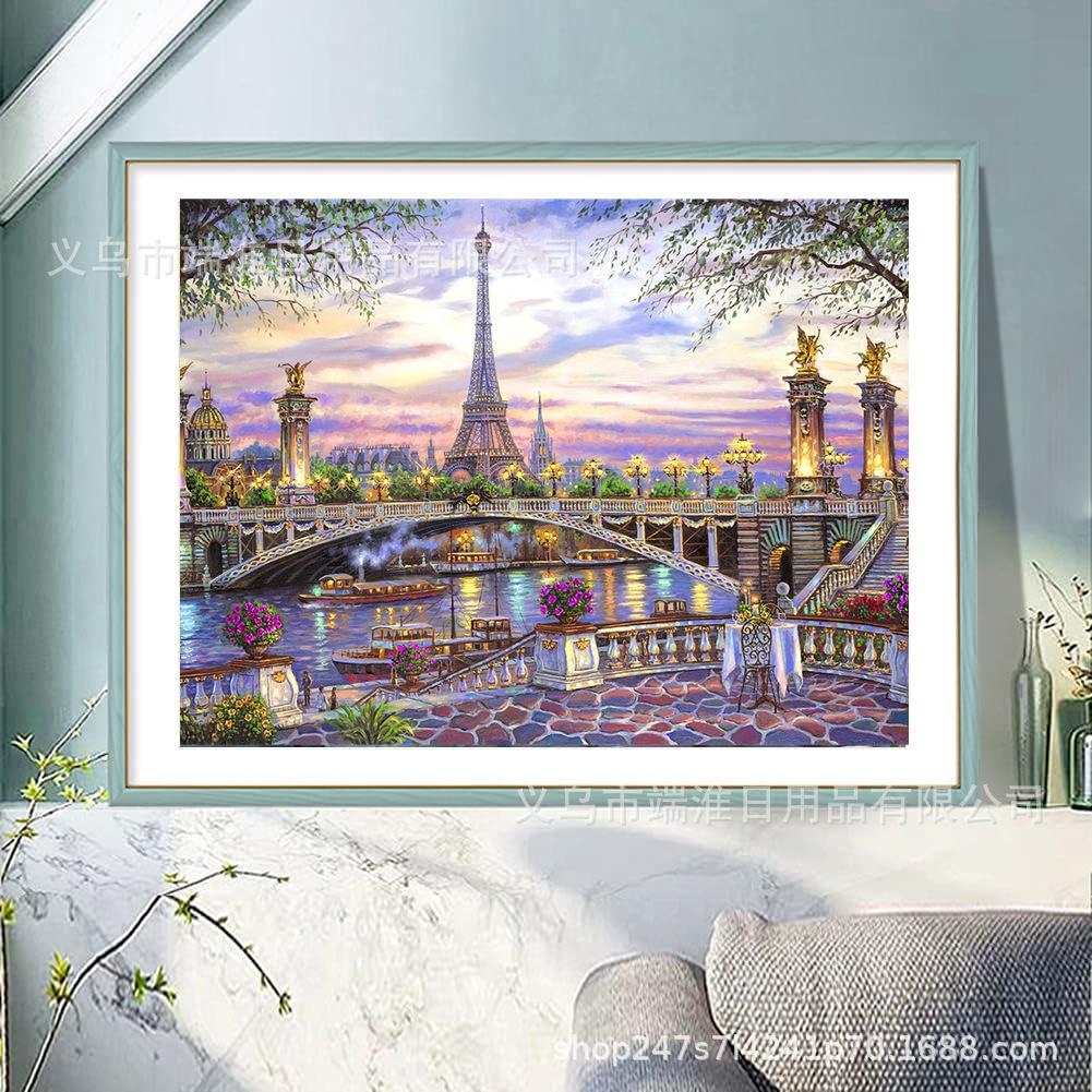 Pintura de Diamantes 5D Transfronteriza Paisaje de Torre Pintura de Diamantes DIY Diamante Completo Diamante Redondo Decoración Pegatinas Colgantes Amazon Fábrica Directo