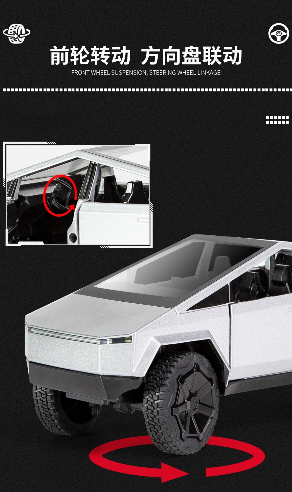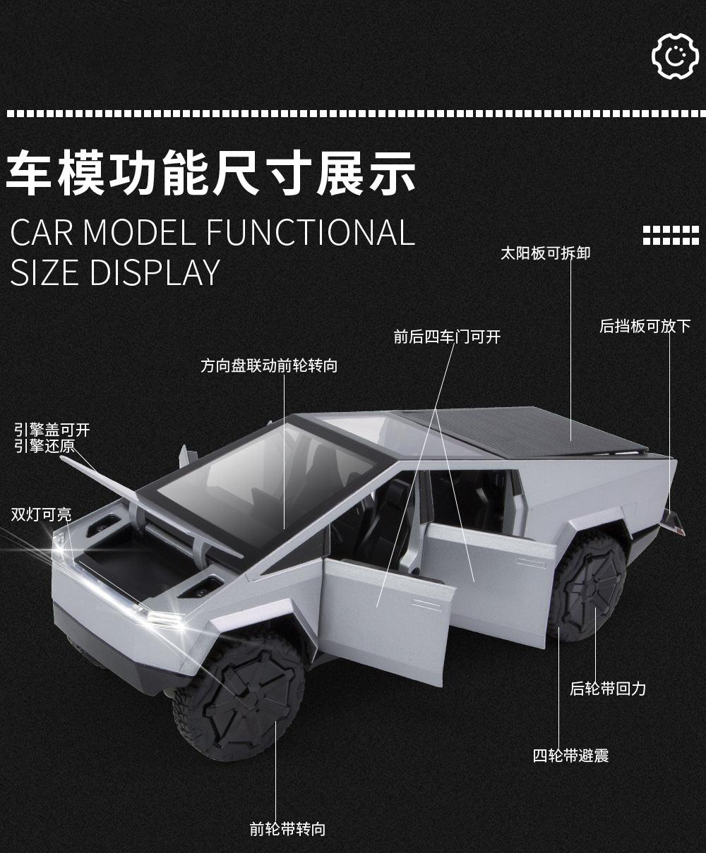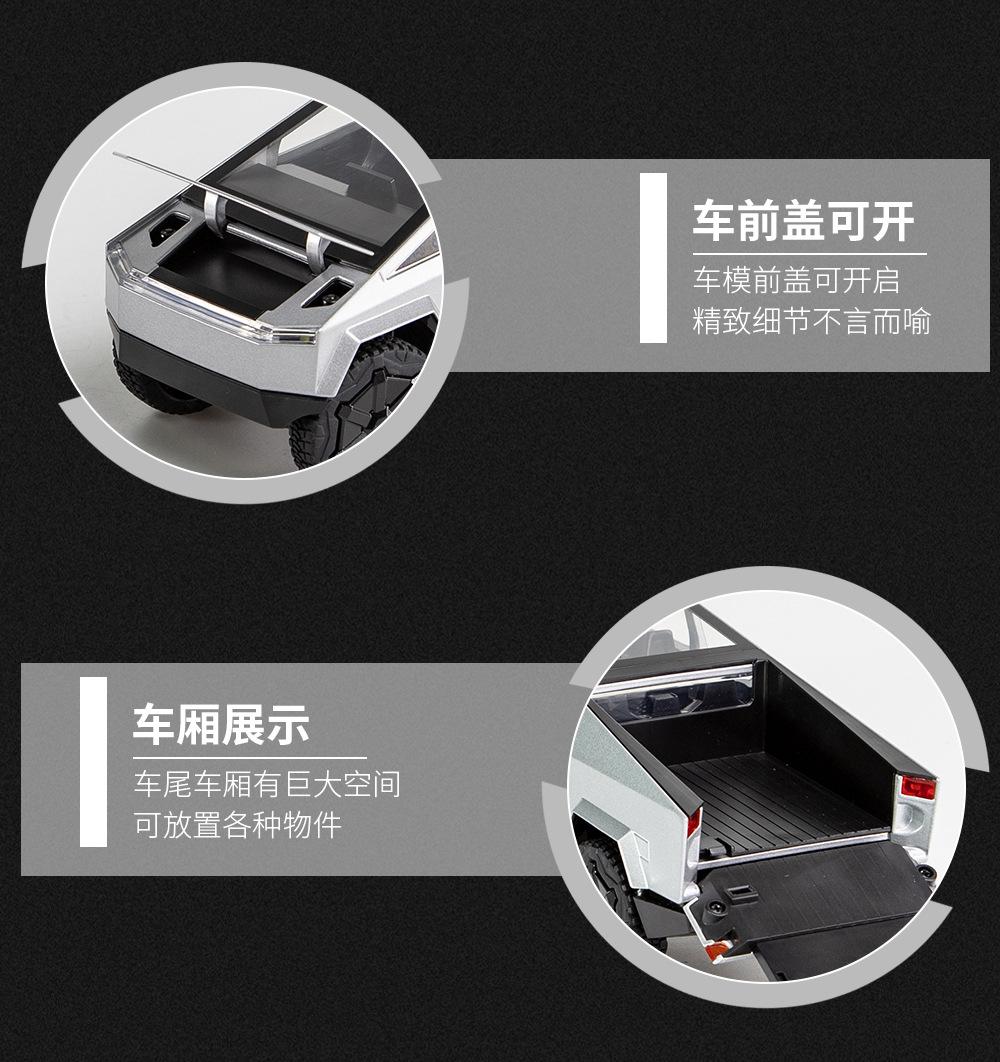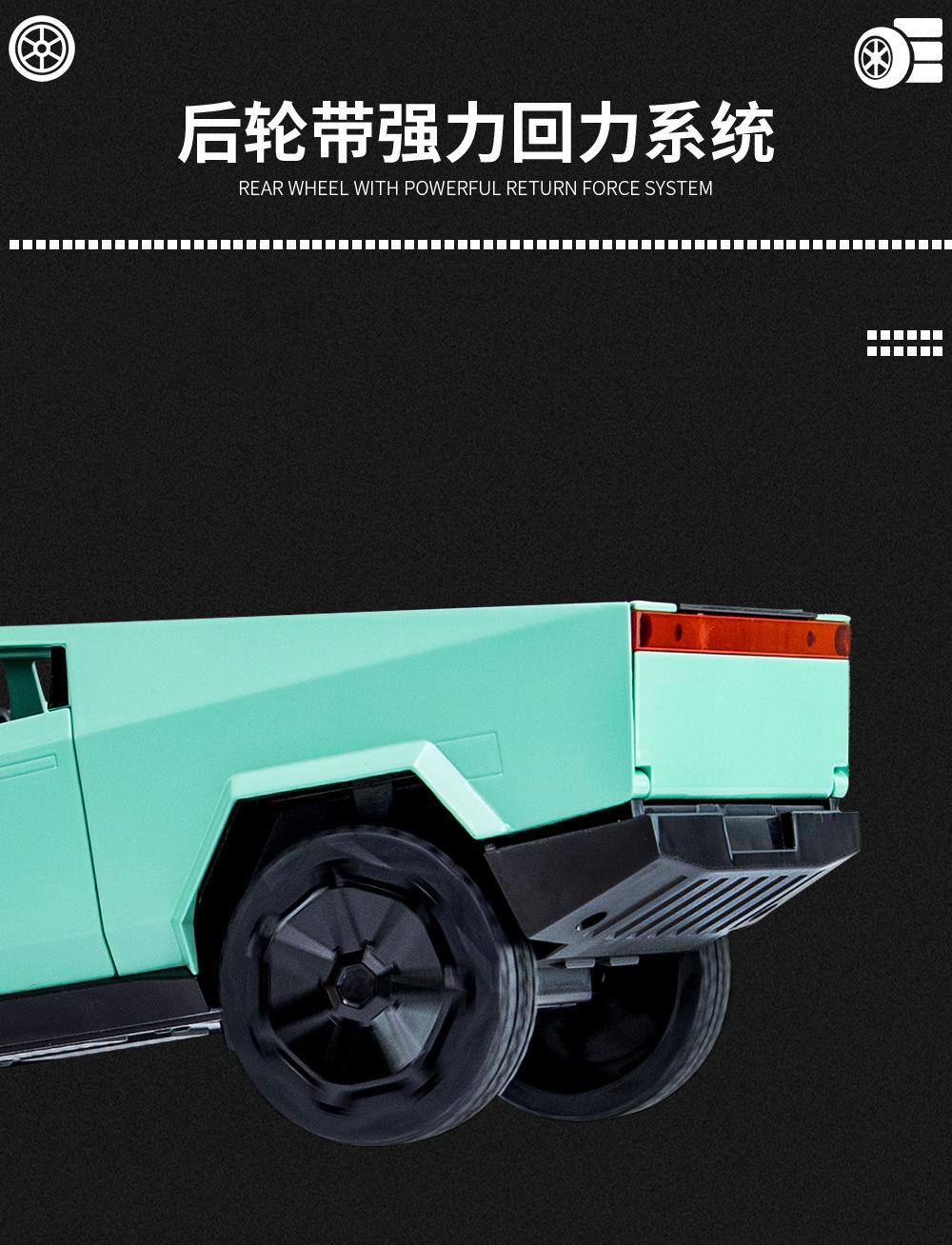 1. Material del producto: La parte delantera está hecha de material de aleación para crear los detalles y la textura del vehículo real. El compartimento trasero está hecho de plástico ABS, que es ligero y no se deforma fácilmente, manteniendo la belleza general del modelo.