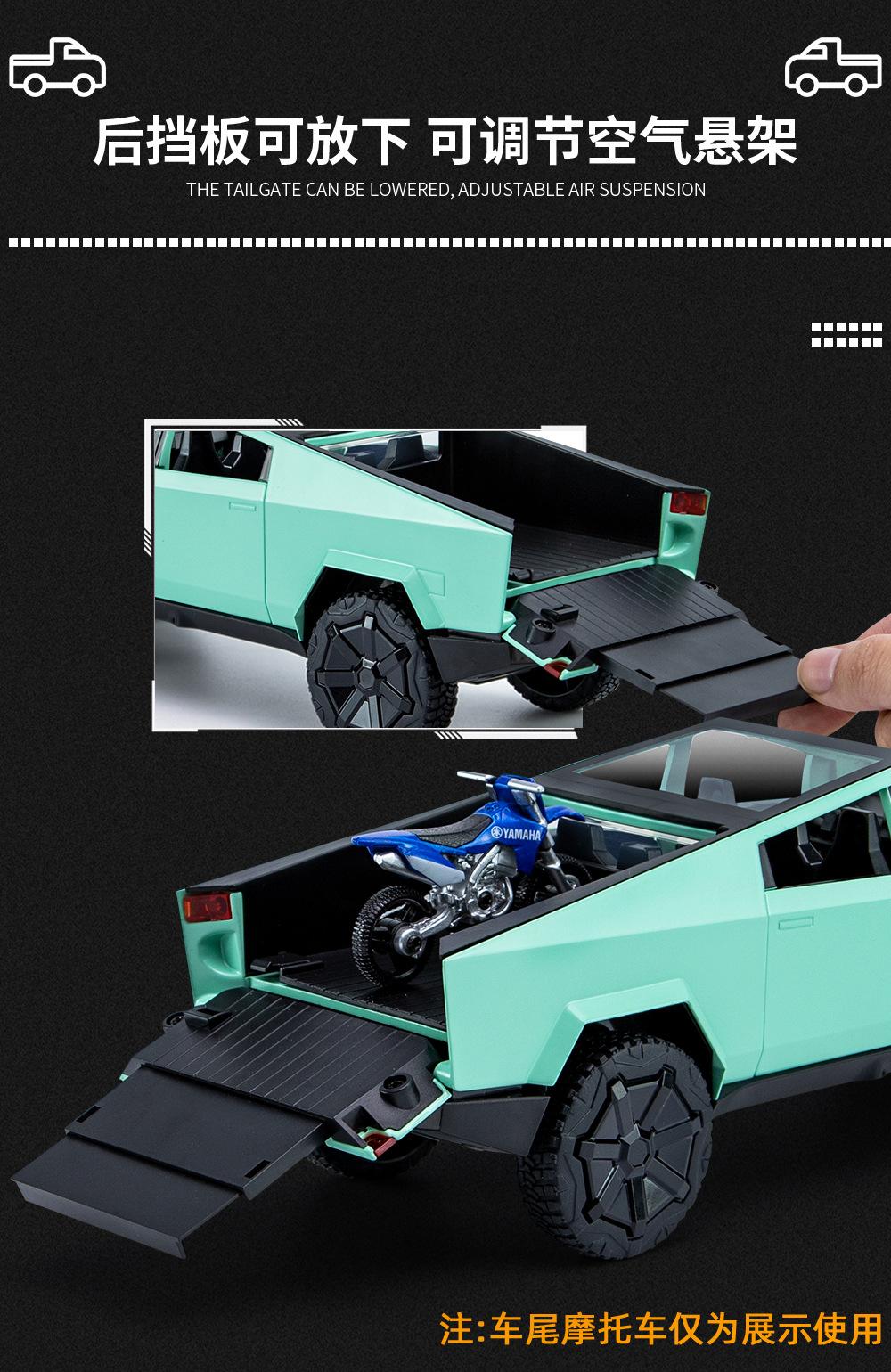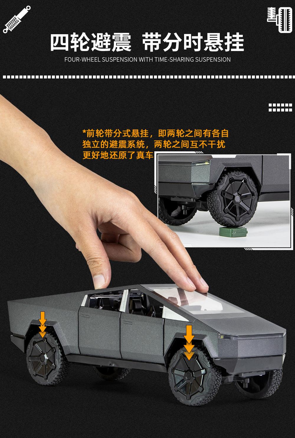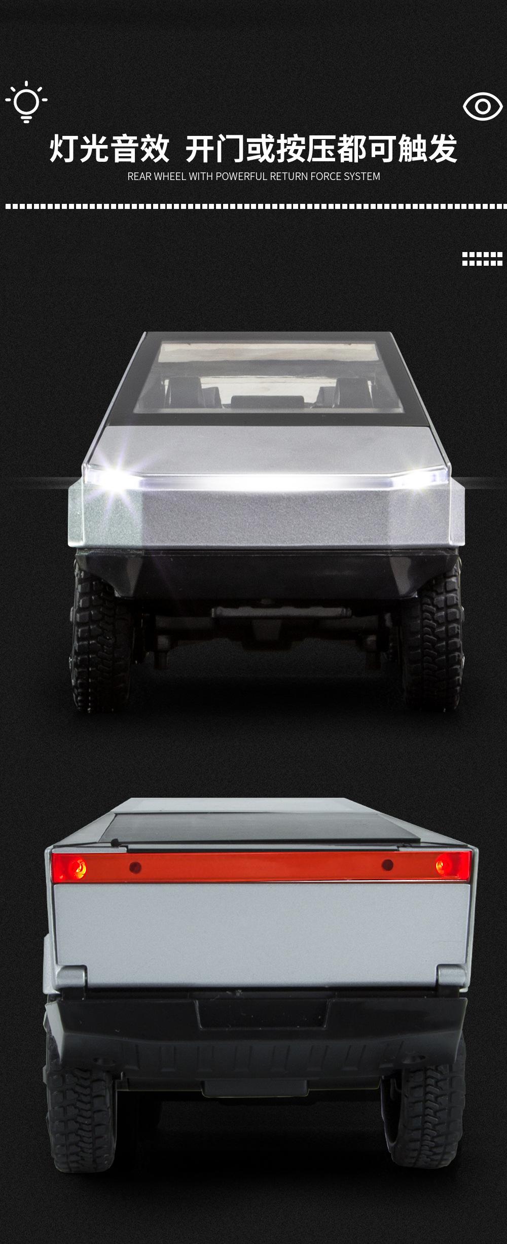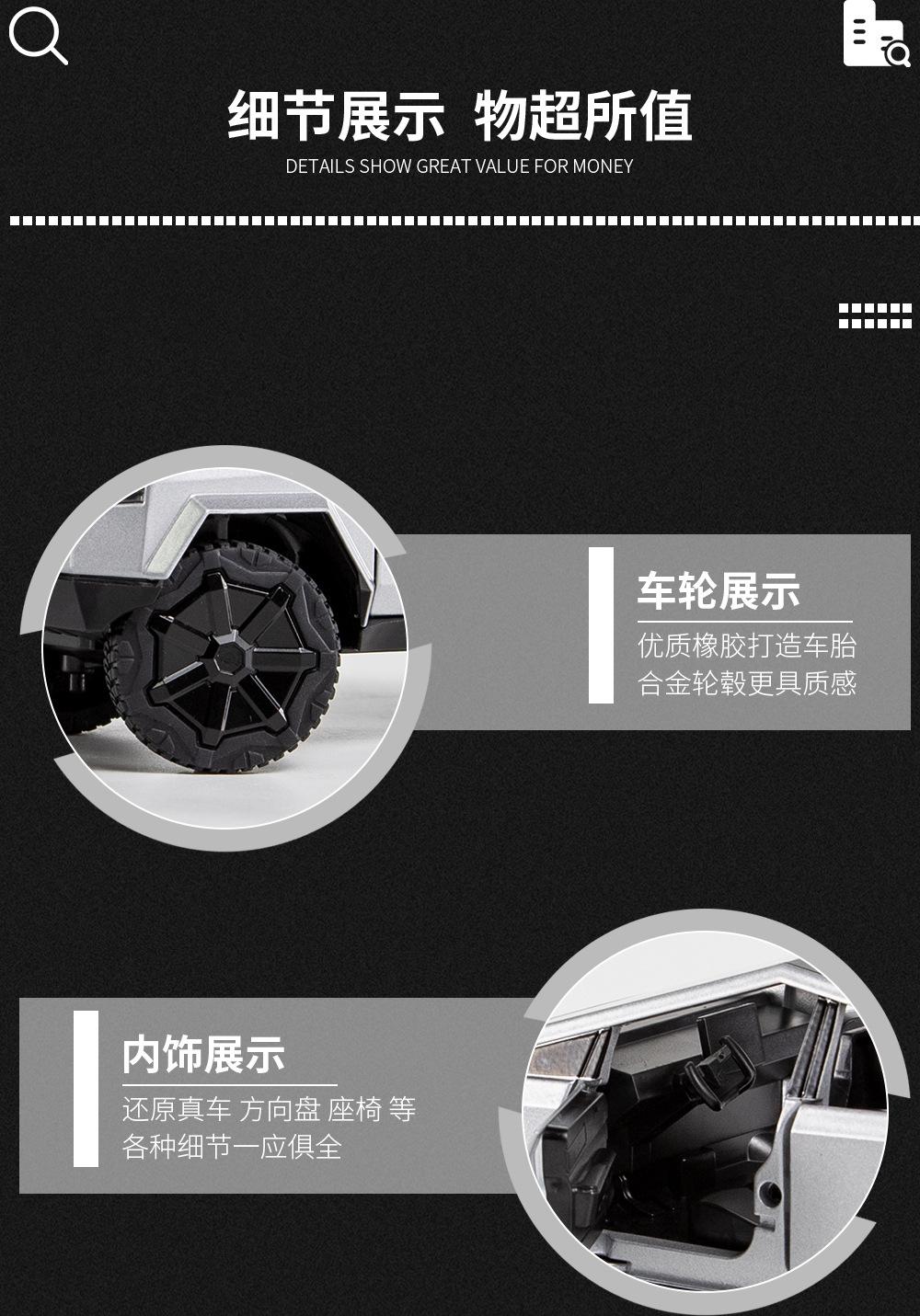 1. Material del producto: La parte delantera está hecha de material de aleación para crear los detalles y la textura del vehículo real. El compartimento trasero está hecho de plástico ABS, que es ligero y no se deforma fácilmente, manteniendo la belleza general del modelo.