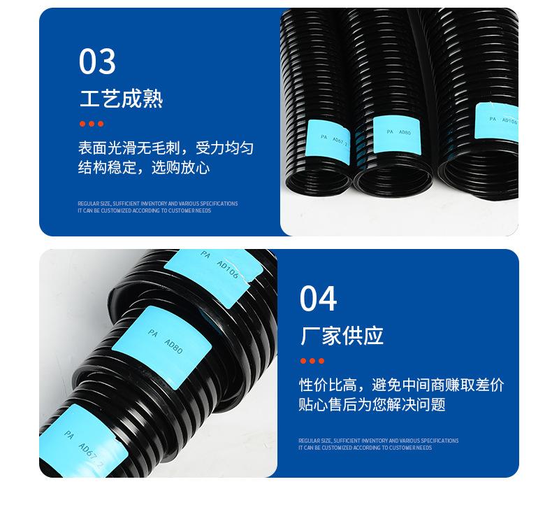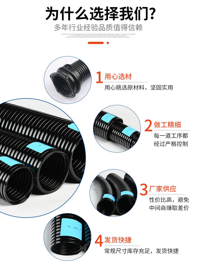 Manguera de tubo corrugado de plástico de gran diámetro PE AD67.2/80/106PP con protección contra llamas y roscado de cable.