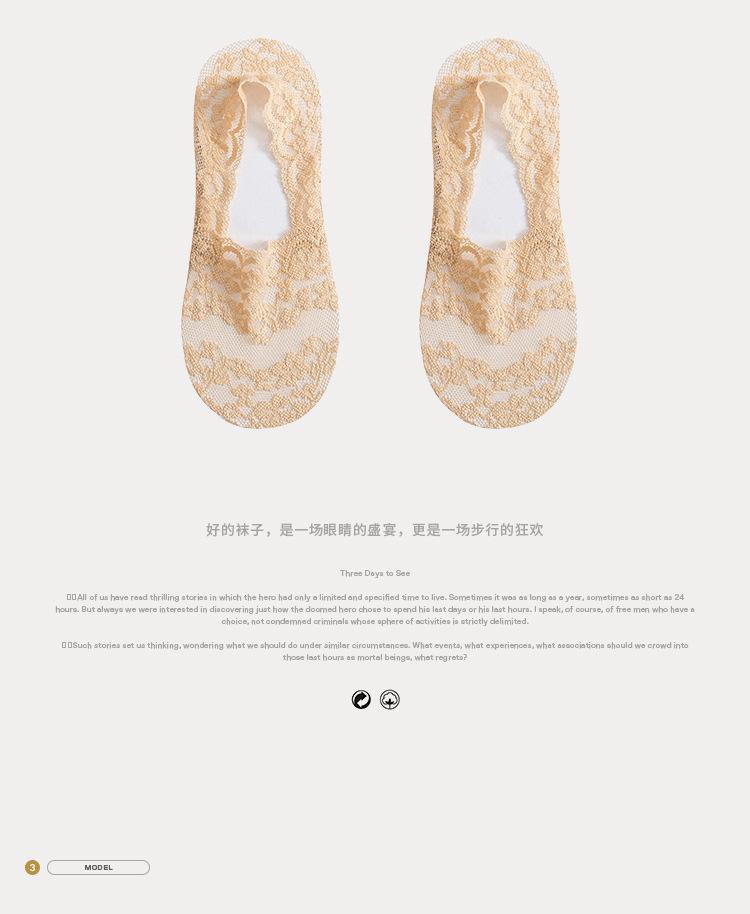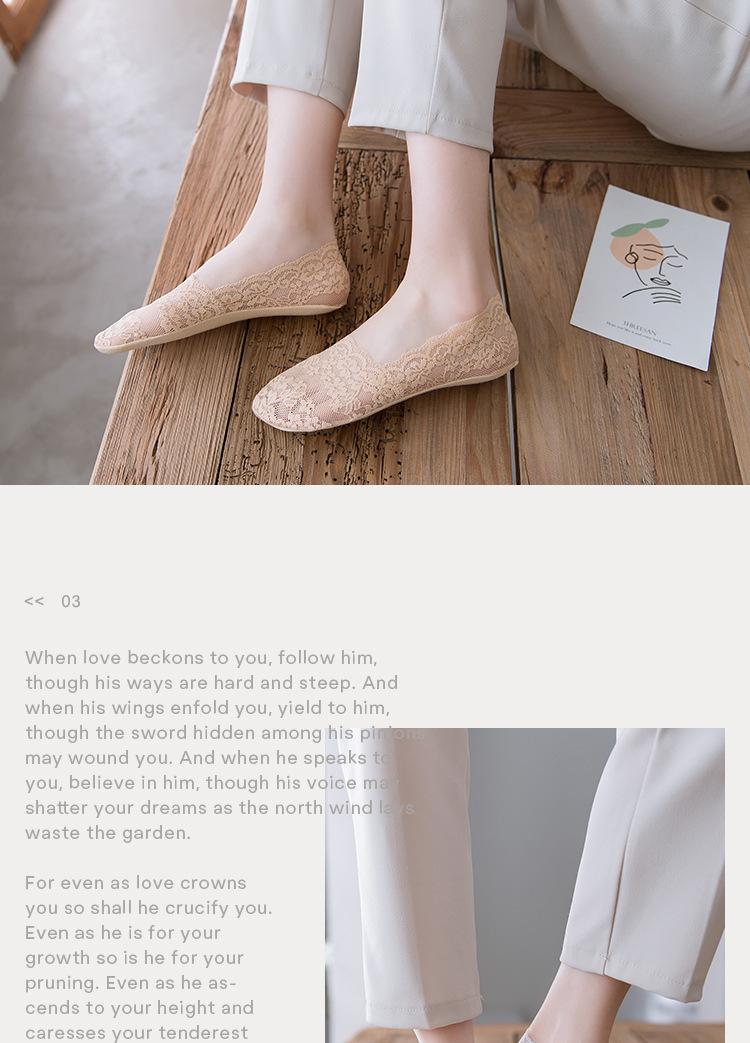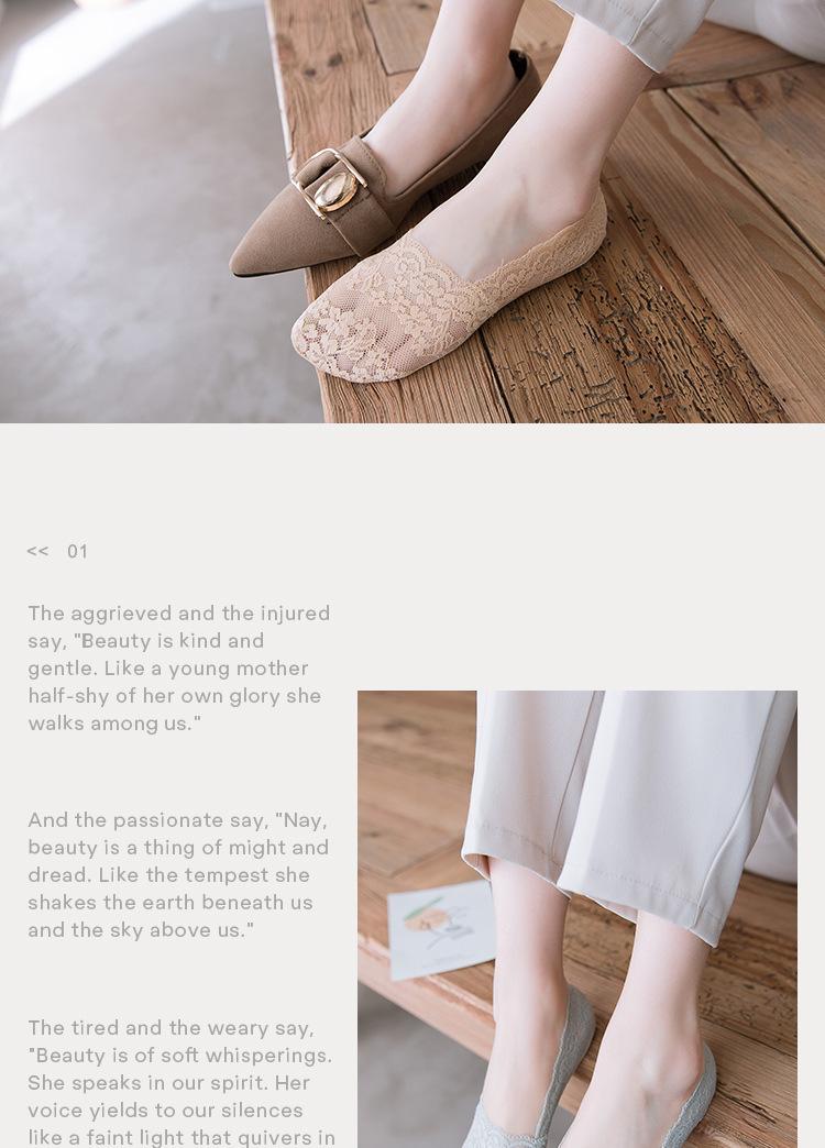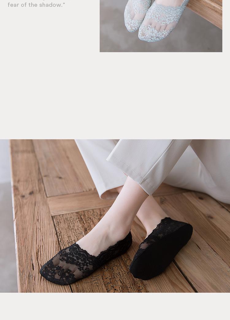 Calcetines náuticos de encaje, de boca baja, invisibles, antideslizantes, para mujer, de primavera y verano, finos, de algodón, de silicona.