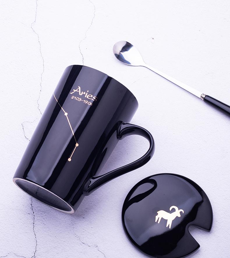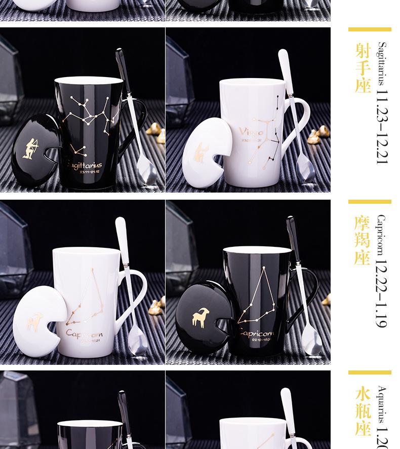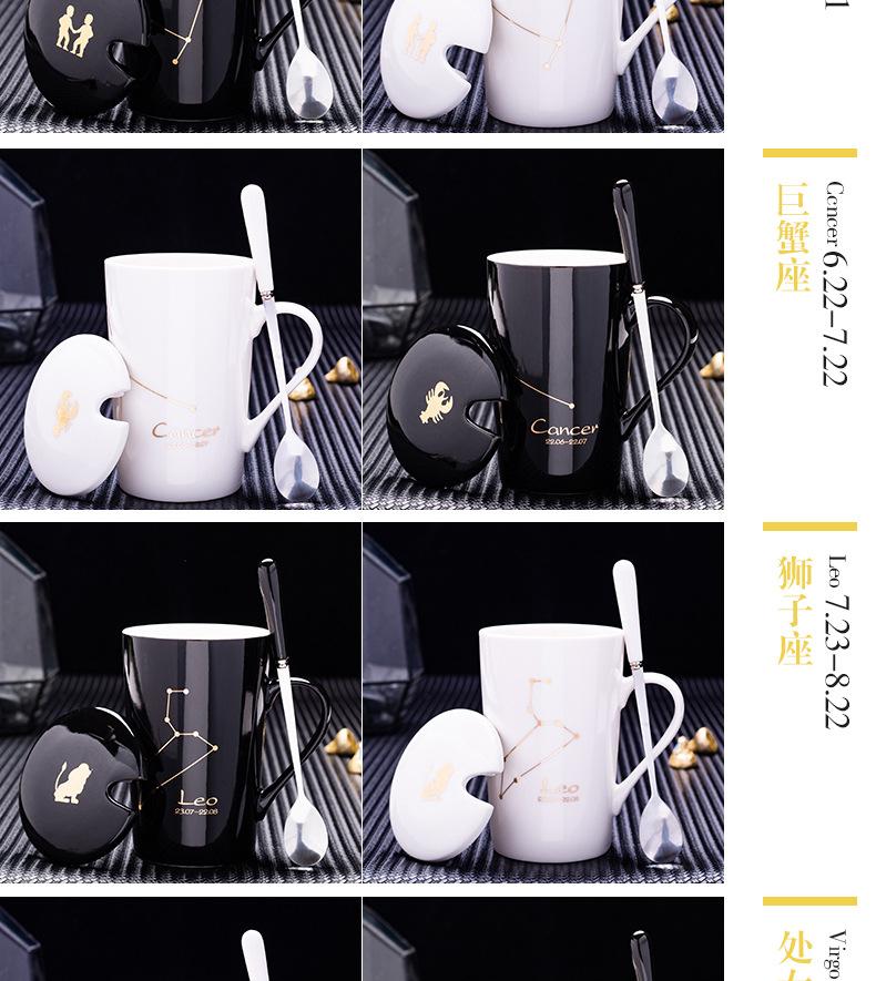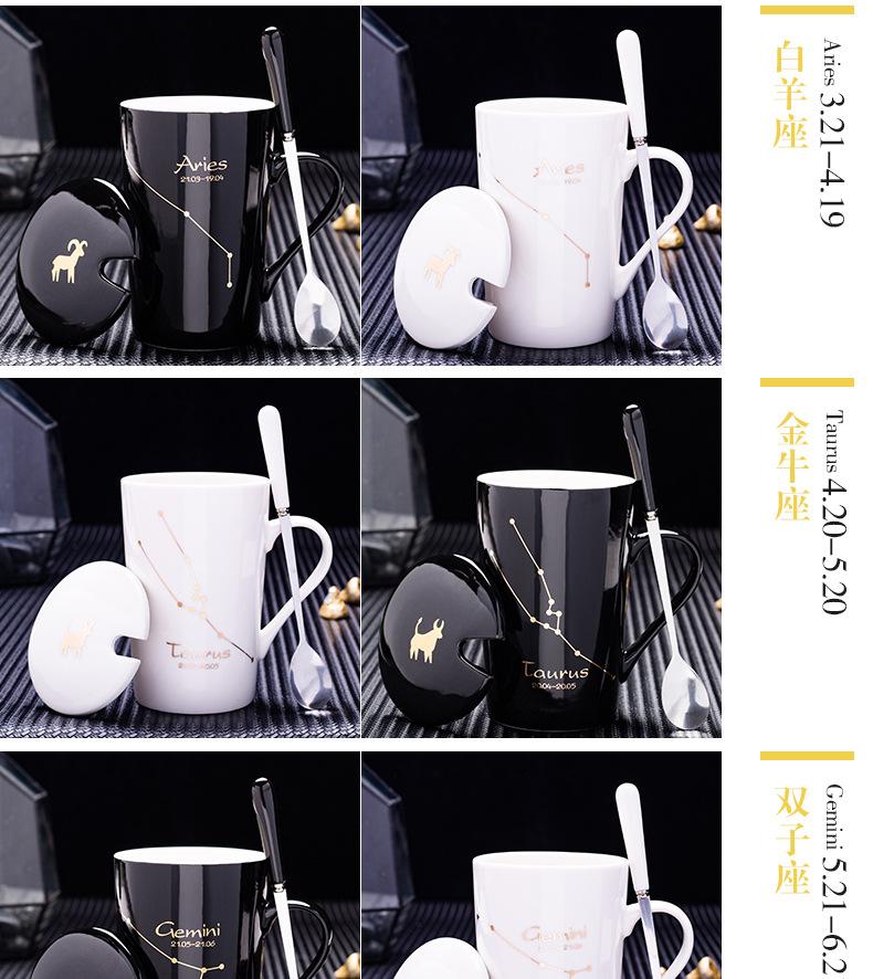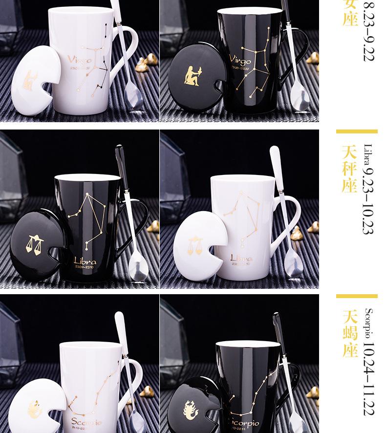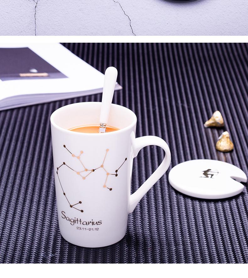 Gran oferta de taza de cerámica de las Doce Constelaciones con tapa y cuchara, taza de té para parejas, taza de agua con logotipo imprimible, regalo de acompañamiento.