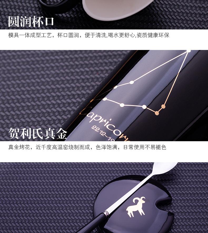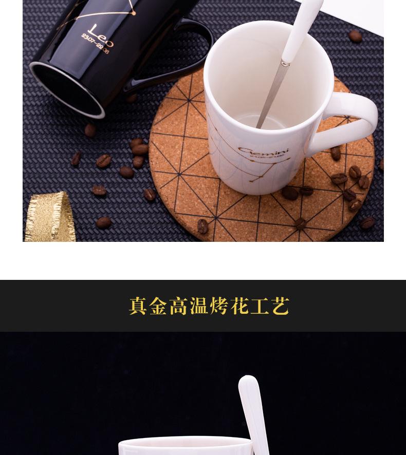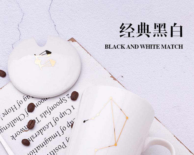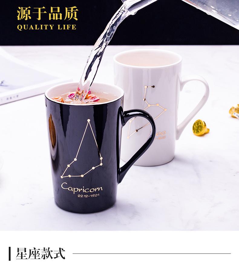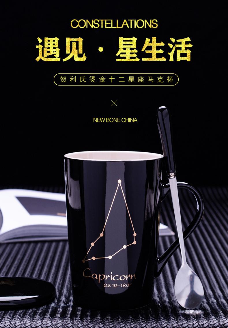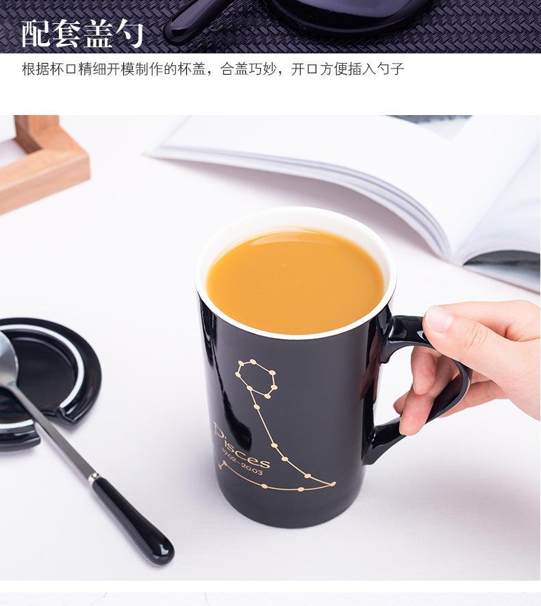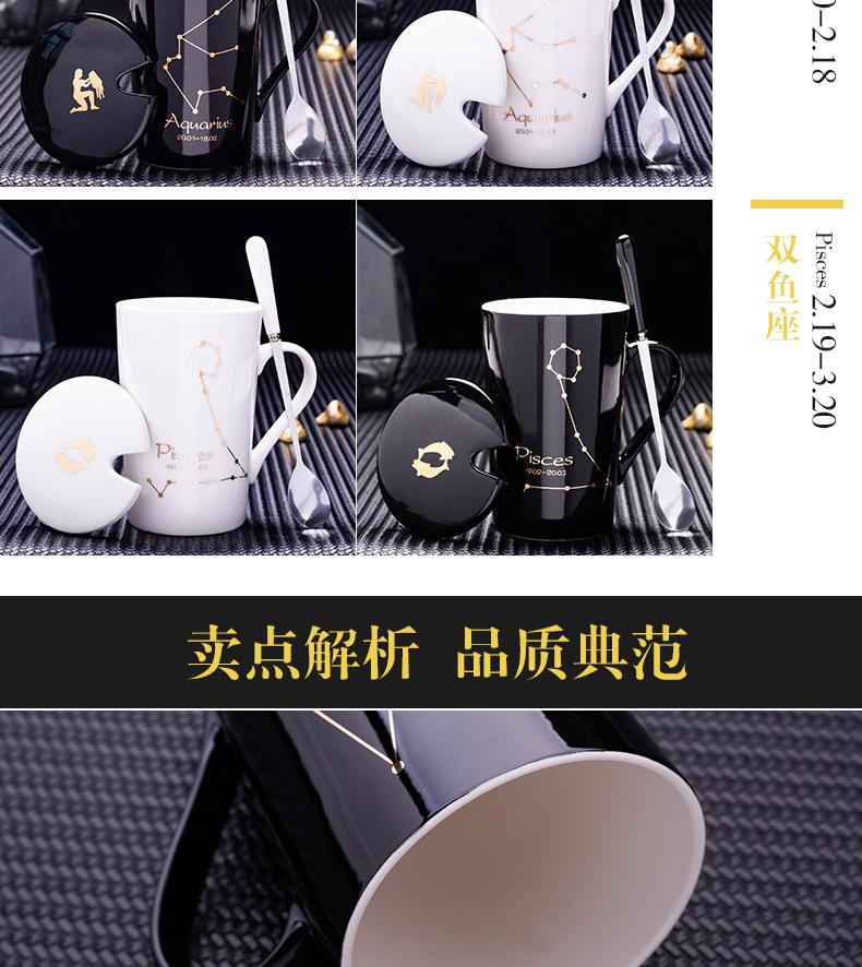 Gran oferta de taza de cerámica de las Doce Constelaciones con tapa y cuchara, taza de té para parejas, taza de agua con logotipo imprimible, regalo de acompañamiento.