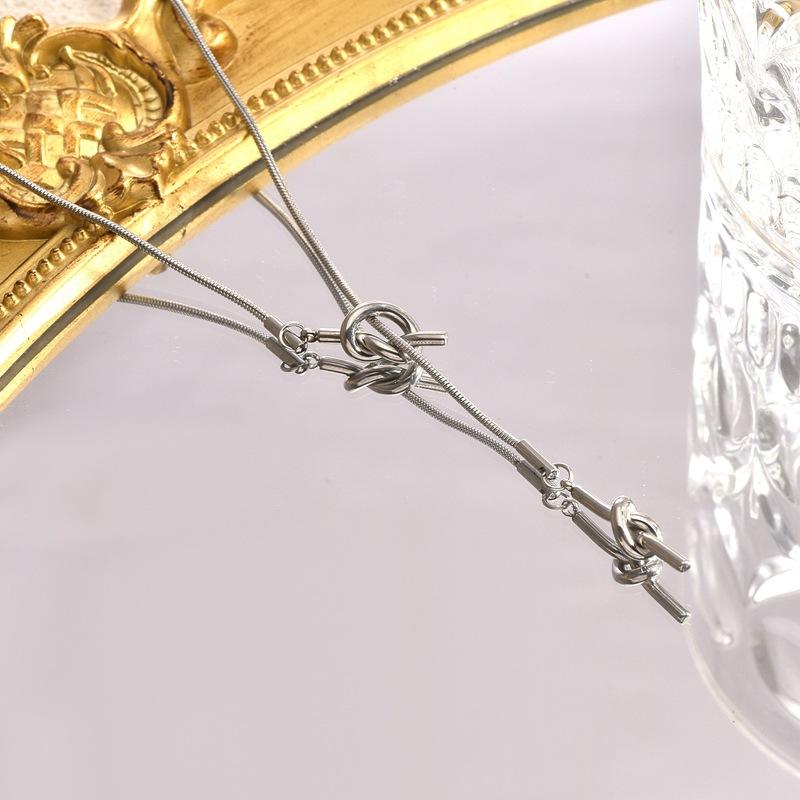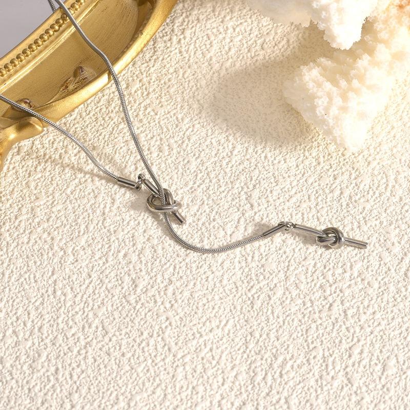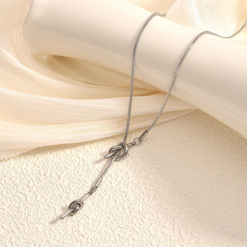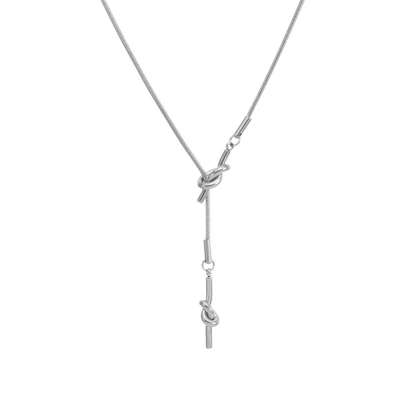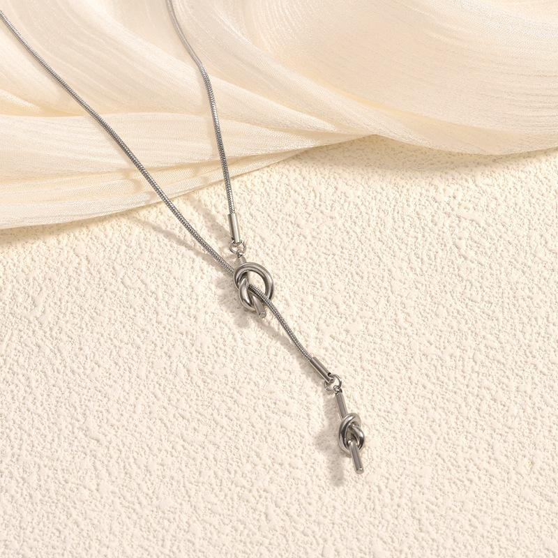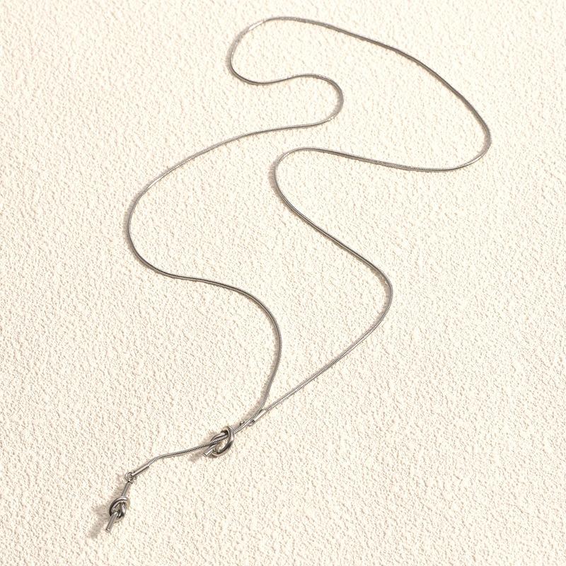 Collar largo chapado en oro con cadena de suéter de acero inoxidable ajustable con nudo en forma de corazón y diseño de viento frío transfronterizo