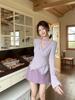 Conjunto de dos piezas elegante y bonito de primavera y otoño con chaqueta y falda de traje corto degradado.