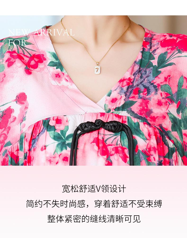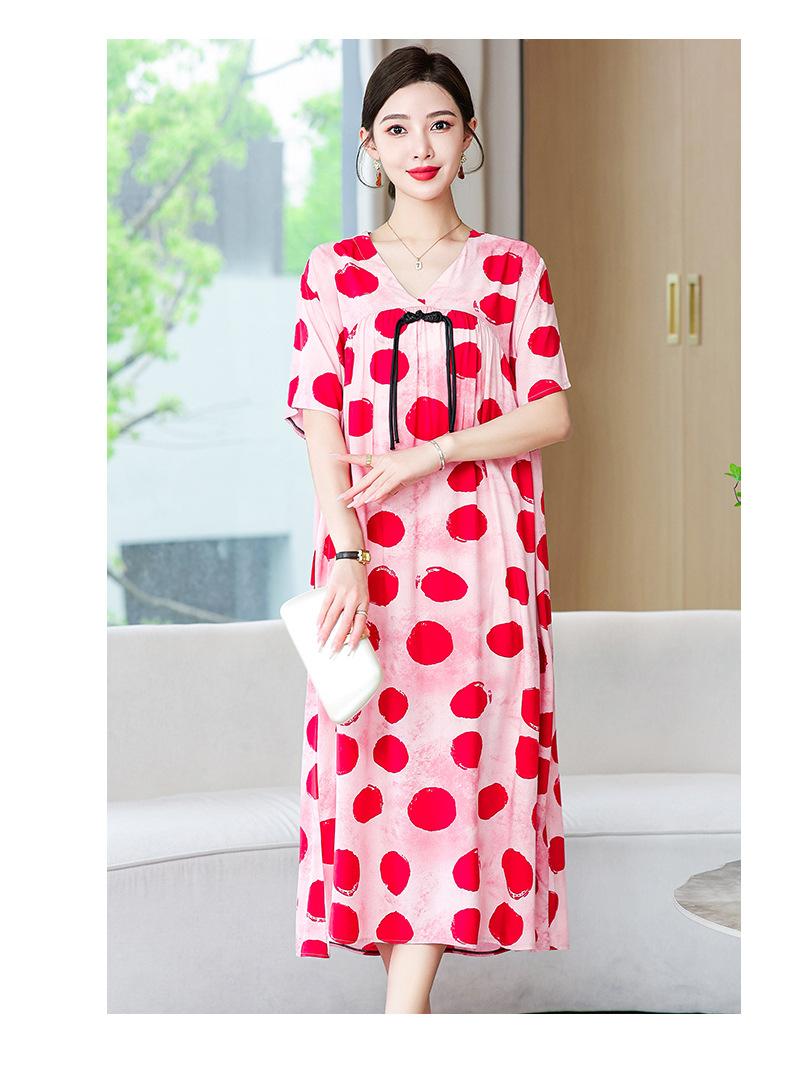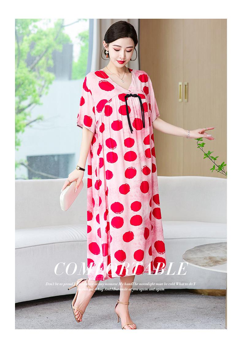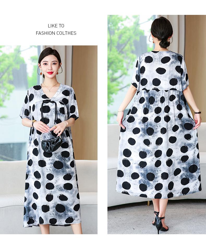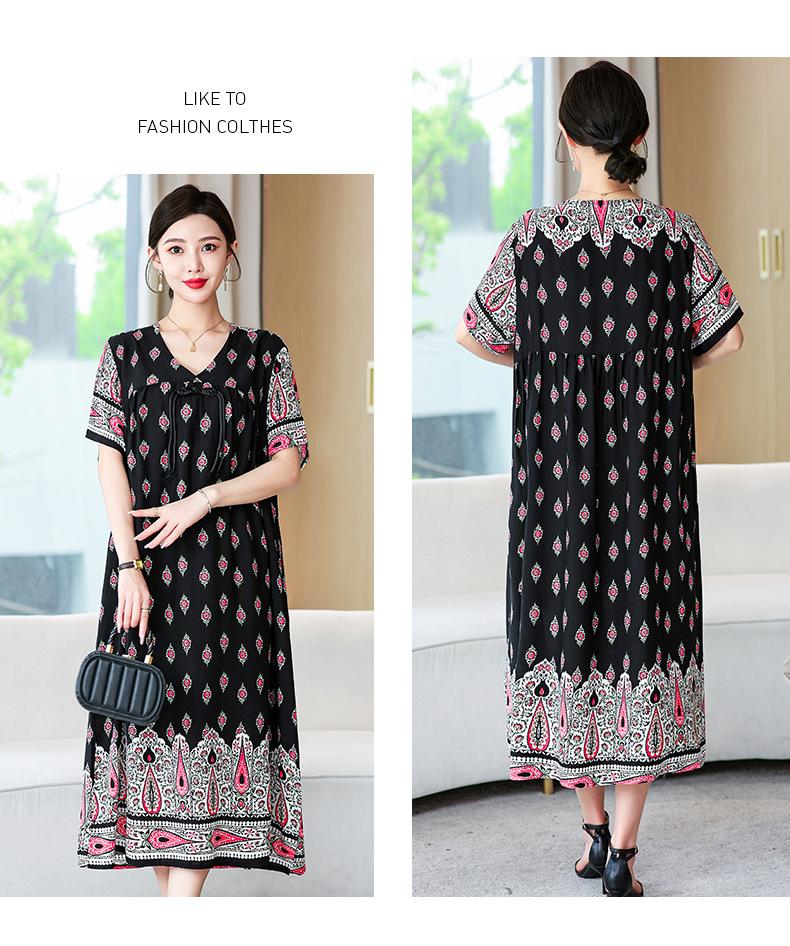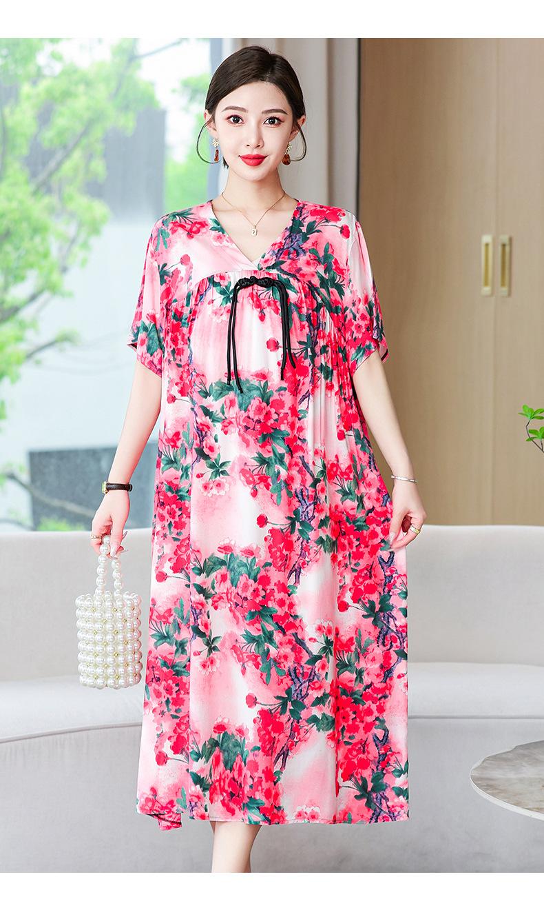 Vestido de seda de algodón de alta gama nuevo de 2023, prenda exterior de verano de moda para madres de mediana edad, falda larga con estampado de bolsillo para lucir esbelta.
