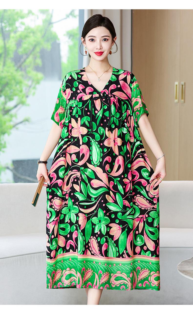 Vestido de seda de algodón de alta gama para mujer, nuevo temperamento, de verano, de alta gama, para madre joven, de talla grande, con vuelo grande, para playa, adelgazante