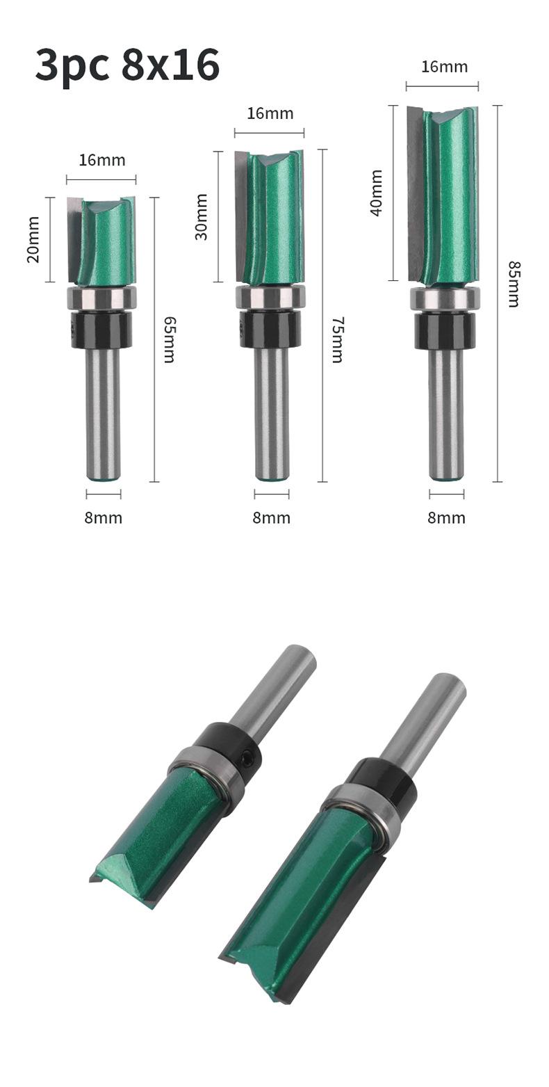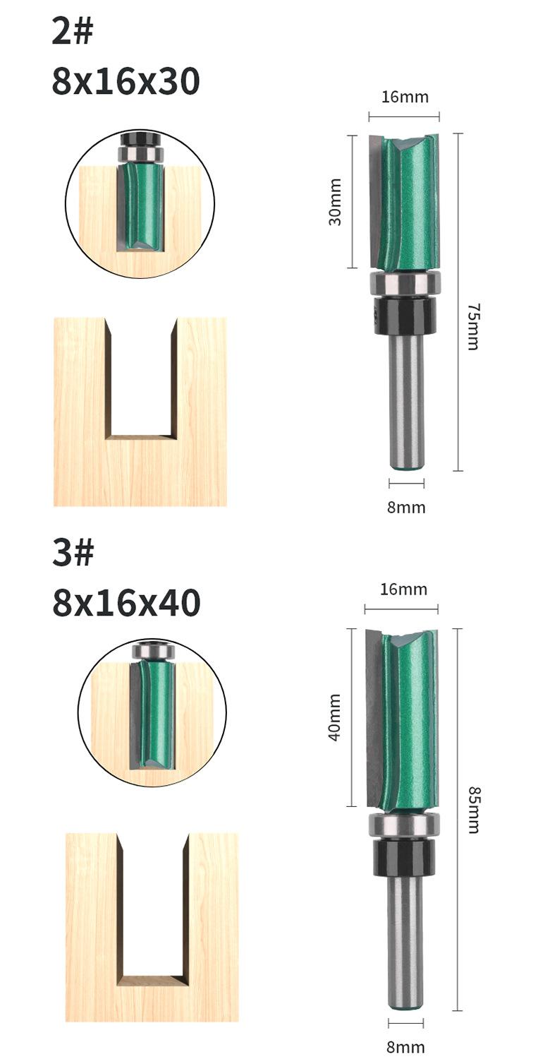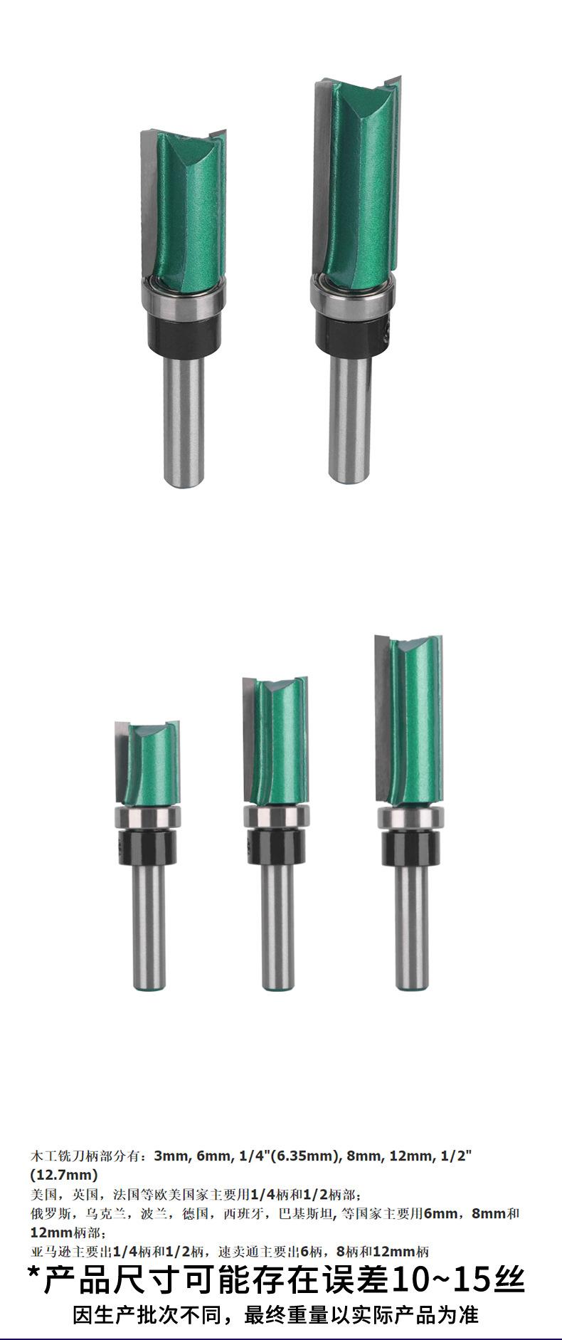Fresa de doble filo para carpintería, con rodamiento de 8 vástagos, fresa recta para pintura verde, fresa de perfilado, fresa de corte, fresa de ranurado, fresa de doble filo para carpintería.
