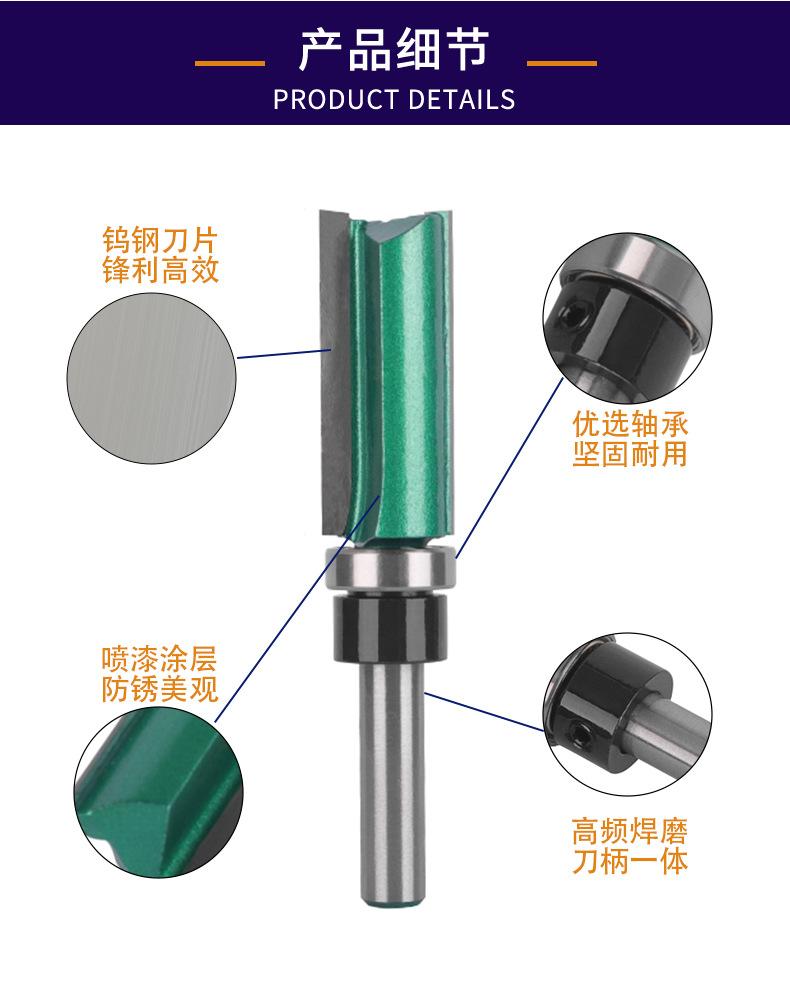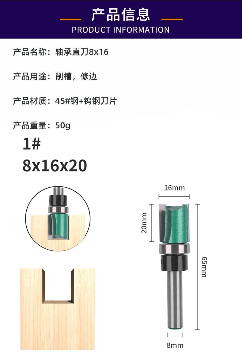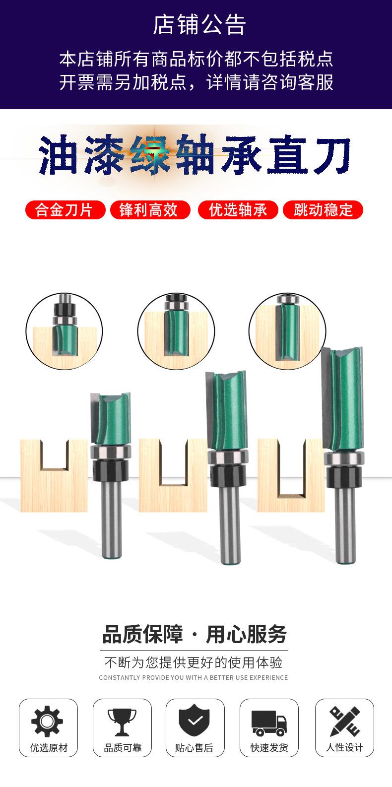 Fresa de doble filo para carpintería, con rodamiento de 8 vástagos, fresa recta para pintura verde, fresa de perfilado, fresa de corte, fresa de ranurado, fresa de doble filo para carpintería.