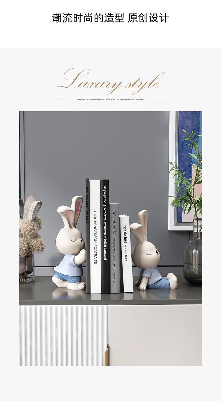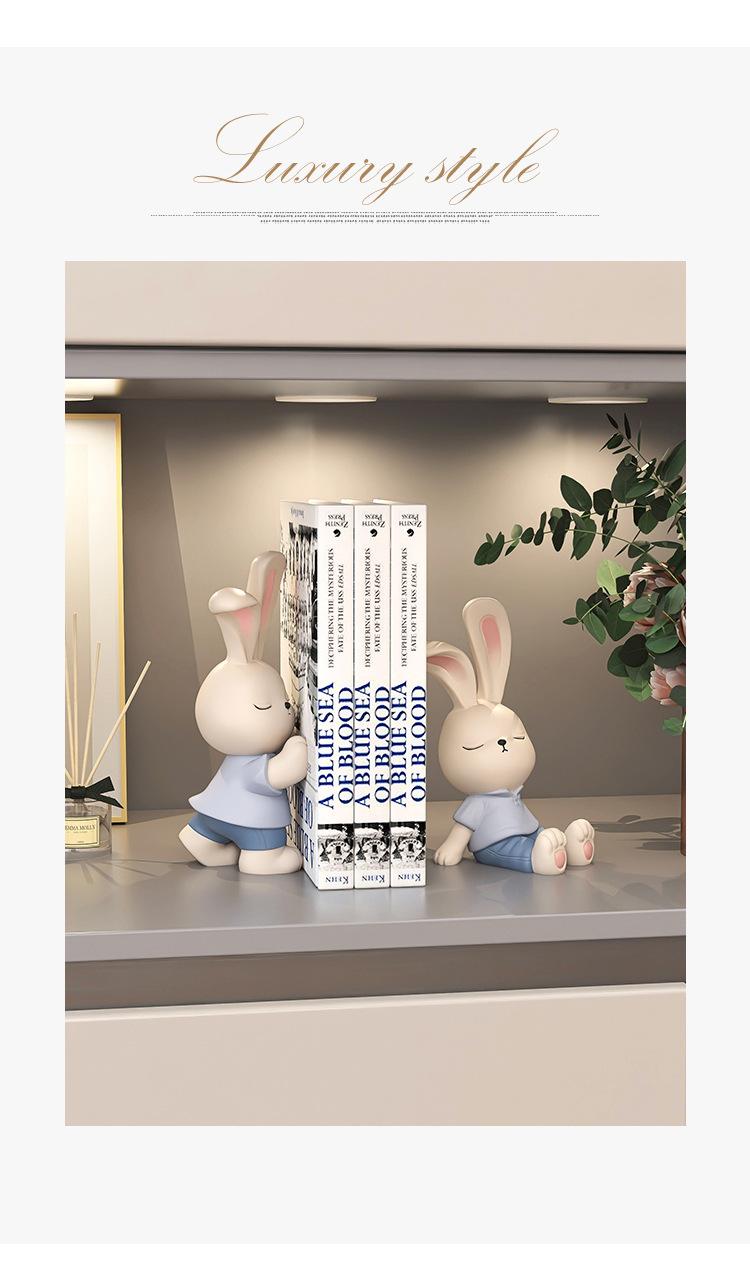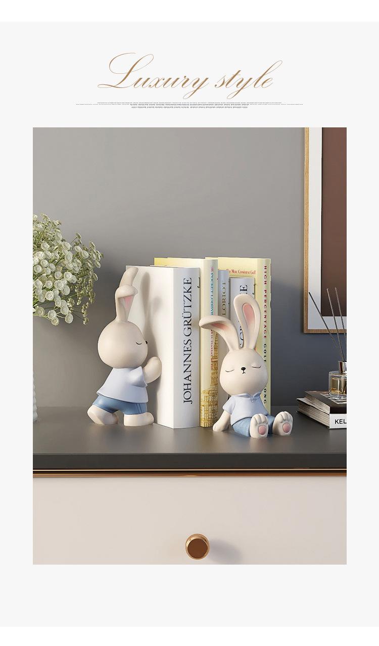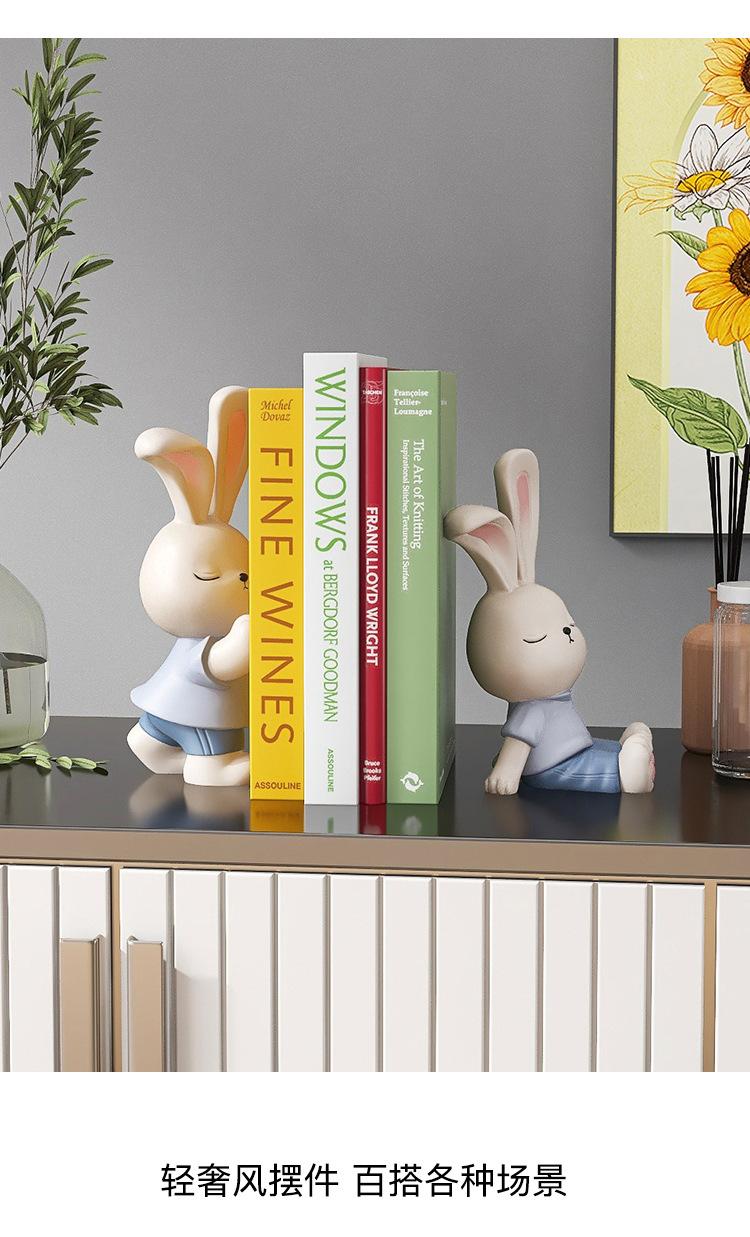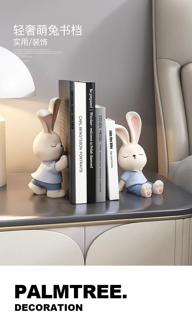 Lindos adornos de conejo para sujetalibros, decoración para sala de estar, estudio, hogar, habitación de niños, escritorio, soporte para libros, decoración de escritorio, regalo