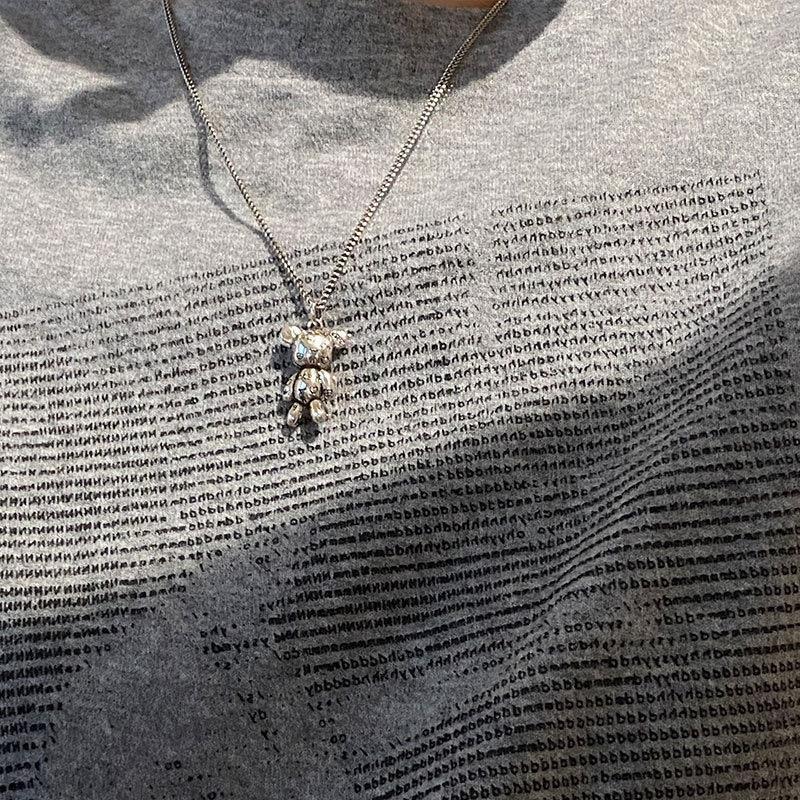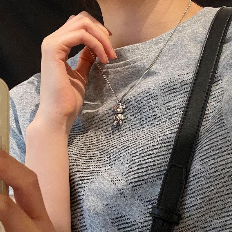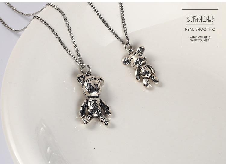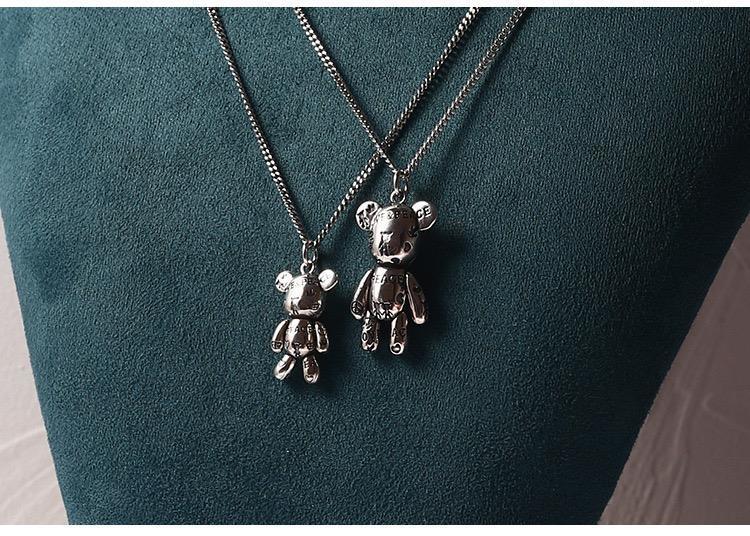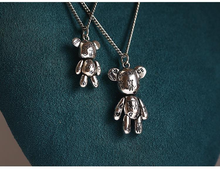Collar con colgante de oso con letras artesanales desgastadas retro de Dongdaemun de Corea del Sur, collar de nicho de hip hop personalizado