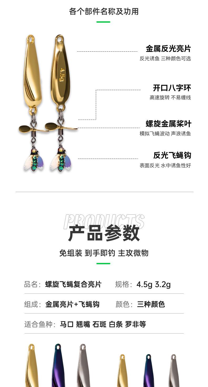 Grupo de pesca con mosca, hélice giratoria, semillas de melón, lentejuelas, cebo falso, microobjeto, grupo de pesca, boca de caballo, cebo de tira blanca arrogante