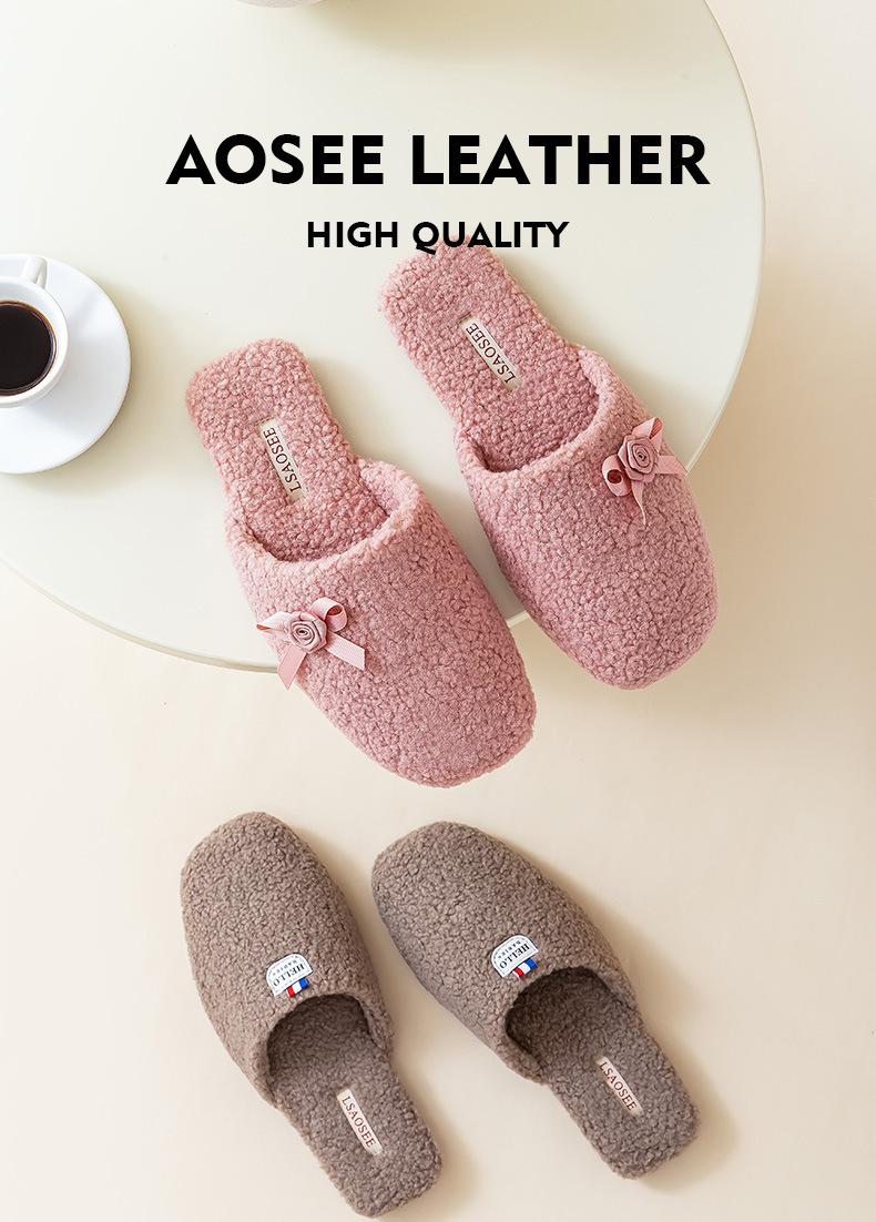 Pantuflas de felpa lindas de Liang para mujer, suela de tendón, para interior, antideslizantes, para hombre, para casa, para pareja, zapatos cálidos para otoño e invierno, para mujer