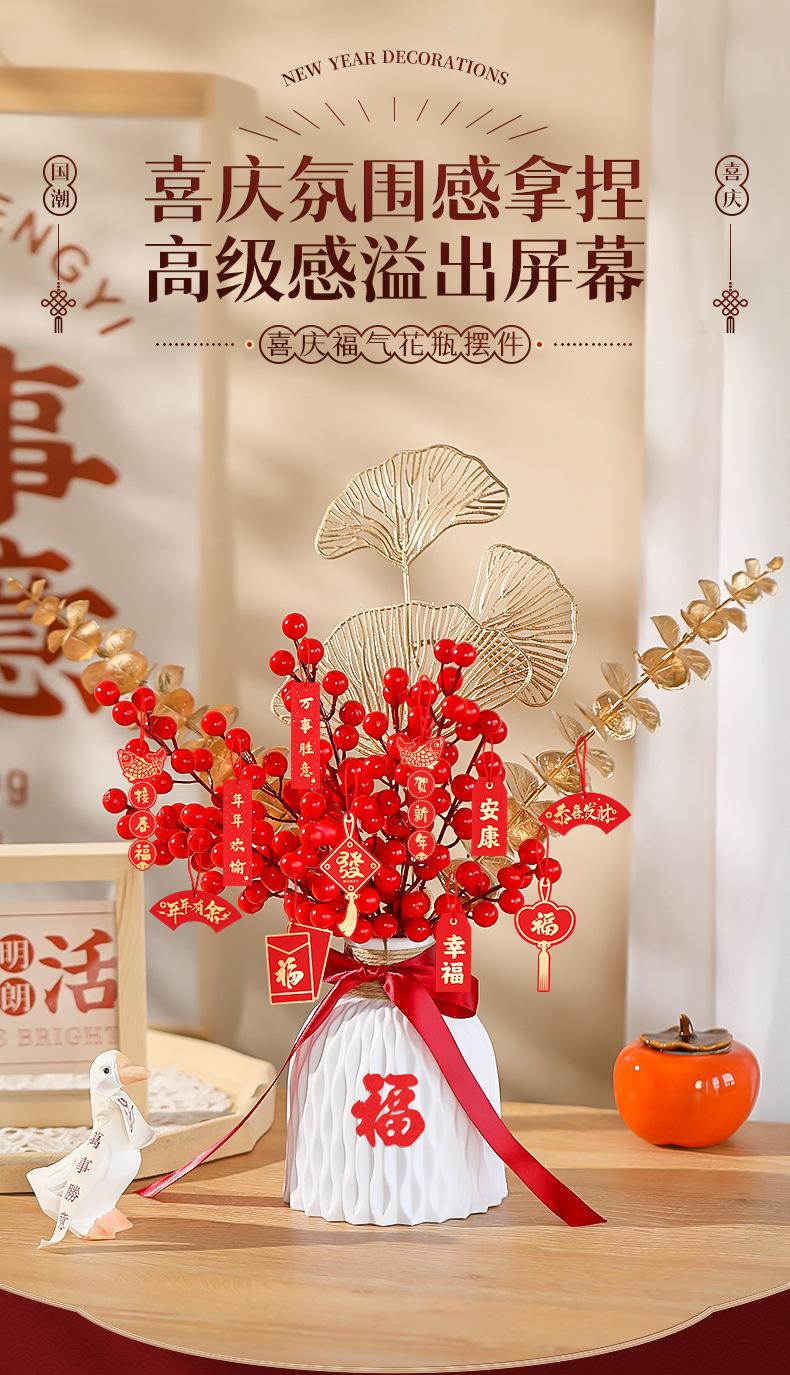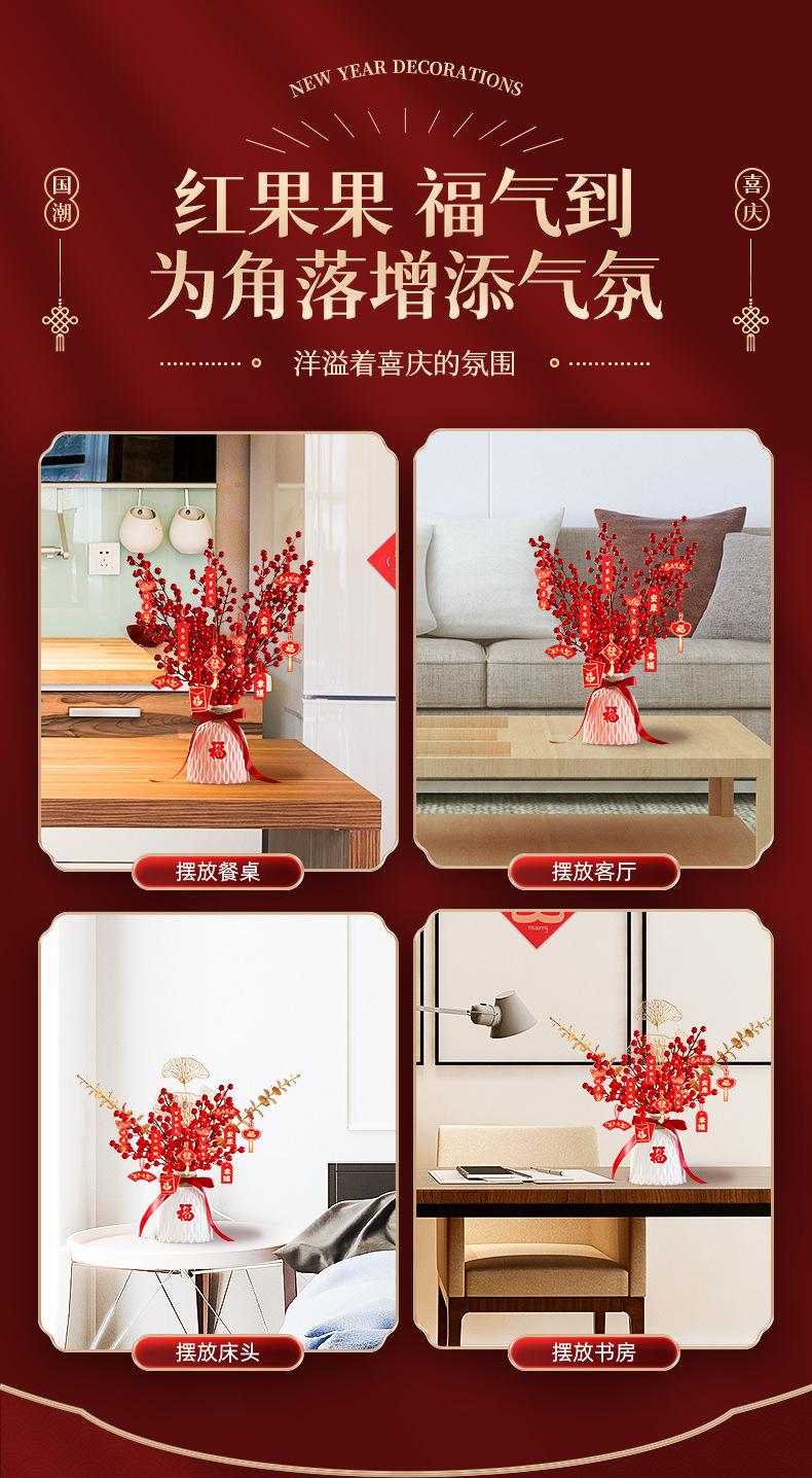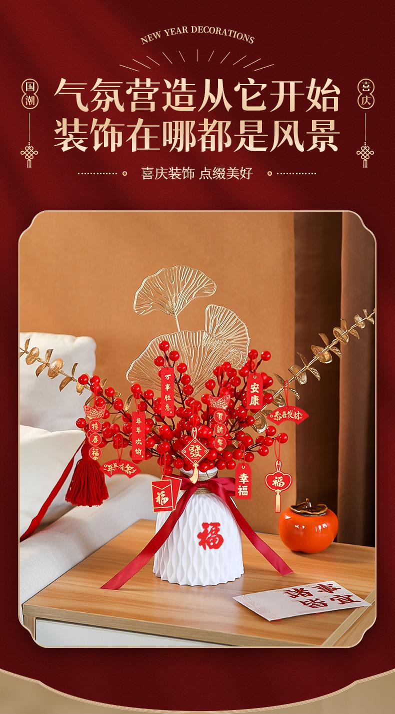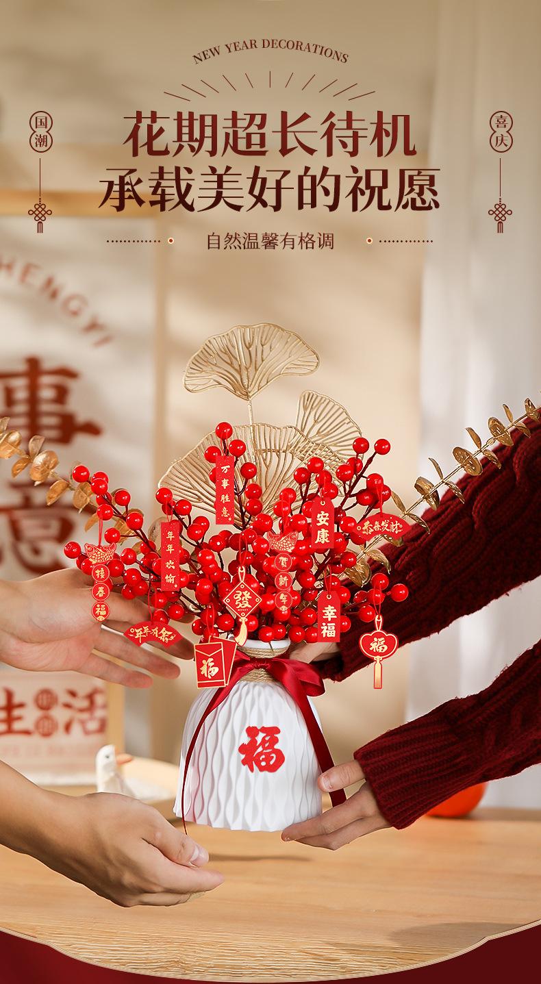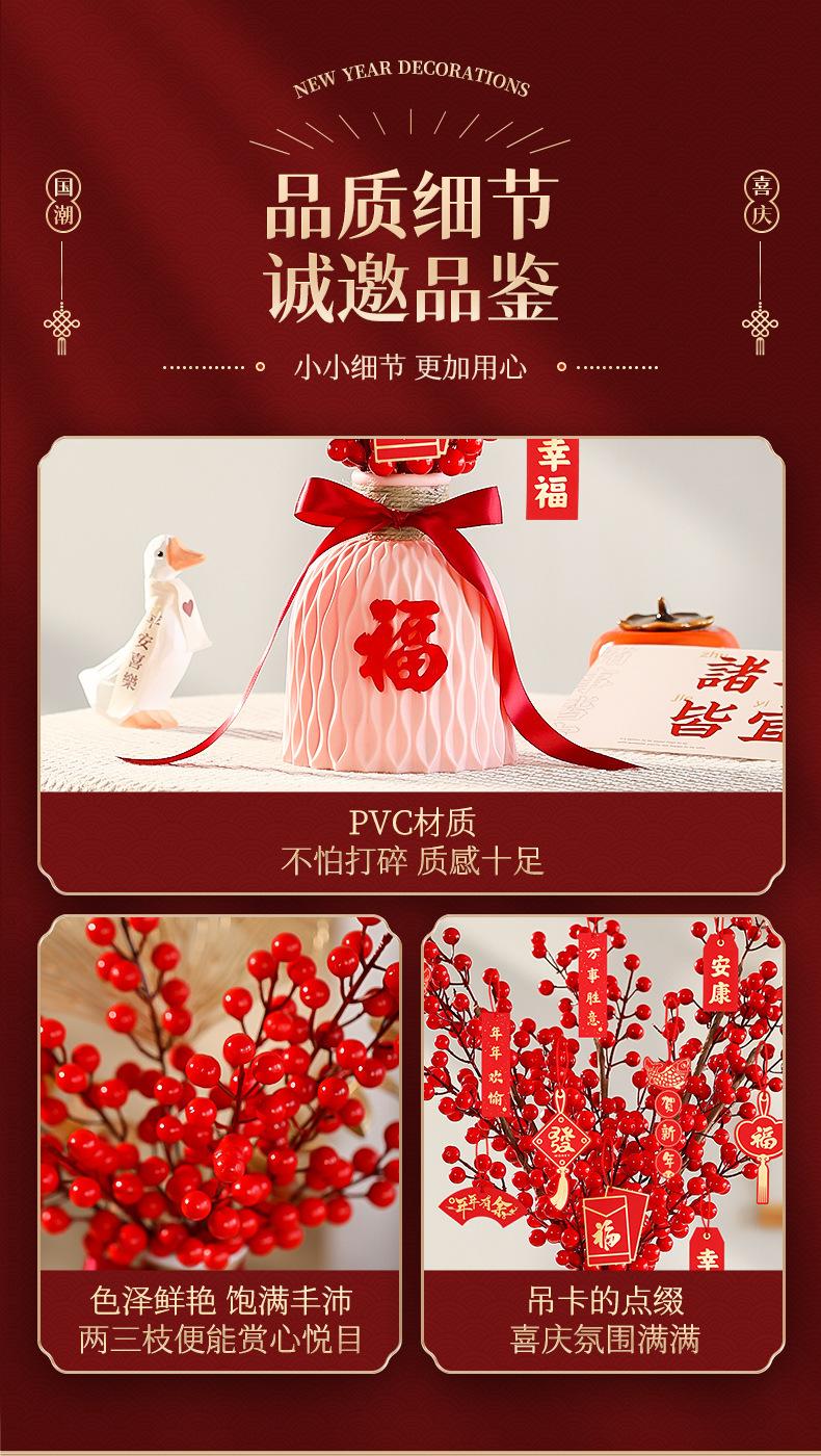 Decoraciones de Año Nuevo 2024, fruta roja, fruta de la fortuna, inauguración de la casa, felicidad, eucalipto, acebo, fruta roja, fruta de la fortuna, adornos de inauguración de la casa