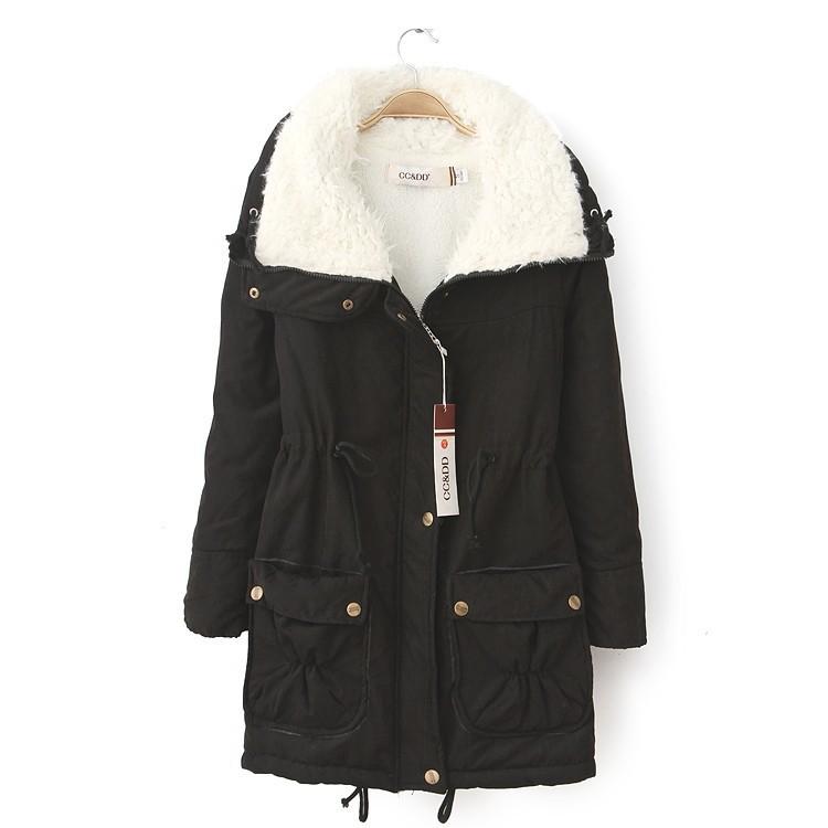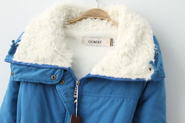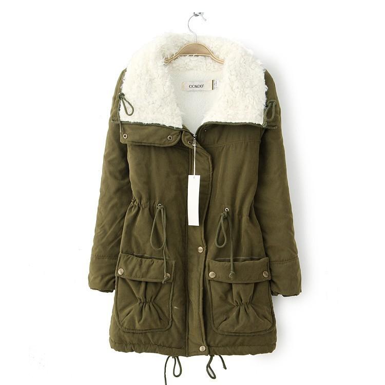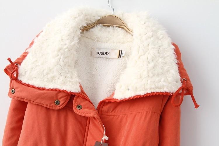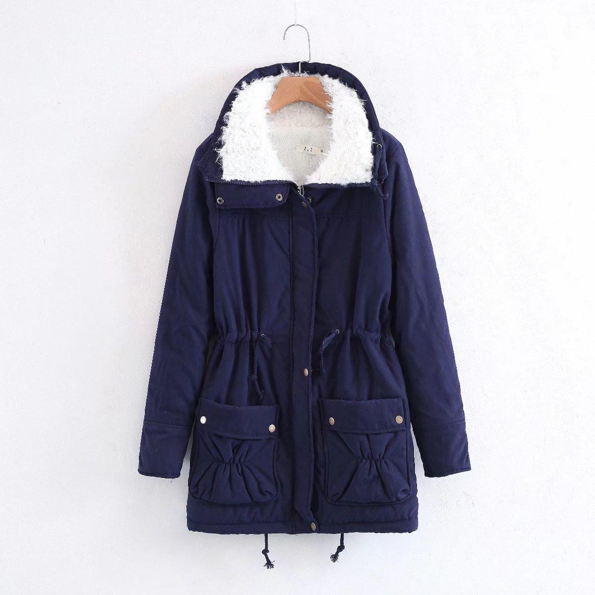 Nueva Chaqueta de Algodón de Bolsillo Grande Estilo Coreano Otoño/Invierno 2024 con Cintura Ajustable con Cordón, Forro de Lana de Cordero, Gruesa y Cuello Vuelto para Mujer