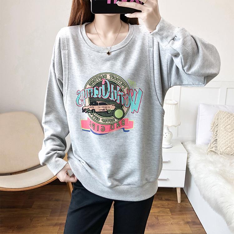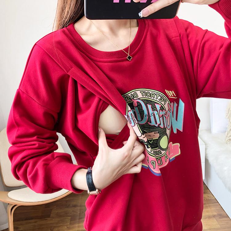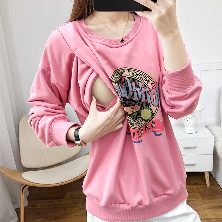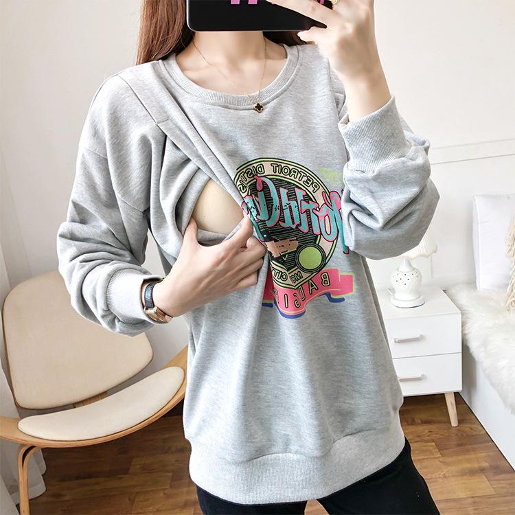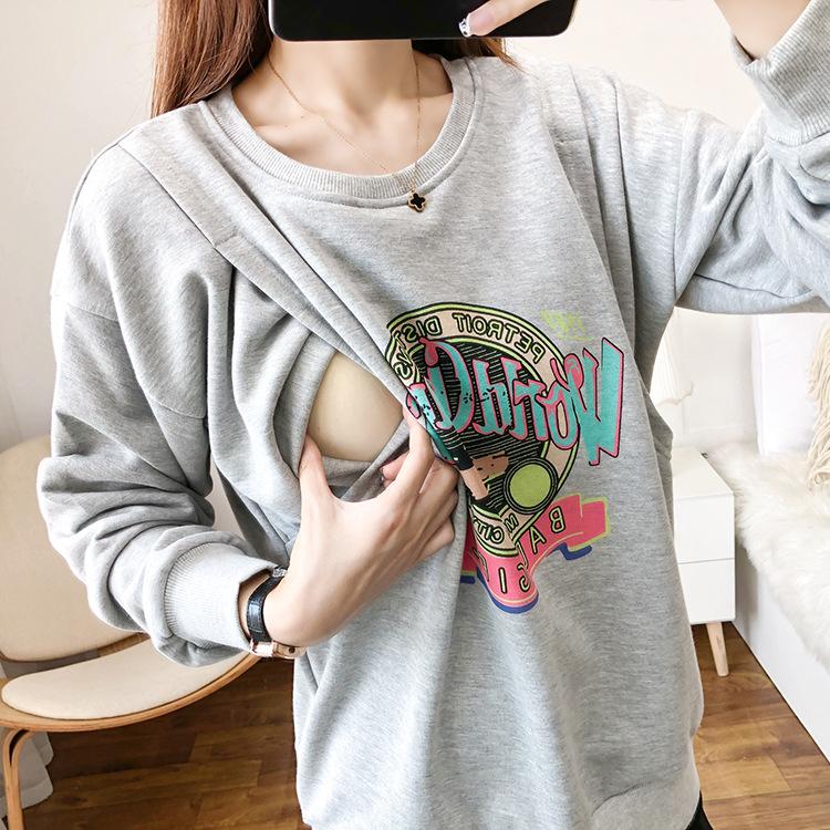 Ropa de maternidad, top de lactancia, manga larga, moda de otoño, ropa de lactancia, suéter holgado de lactancia para otoño e invierno.
