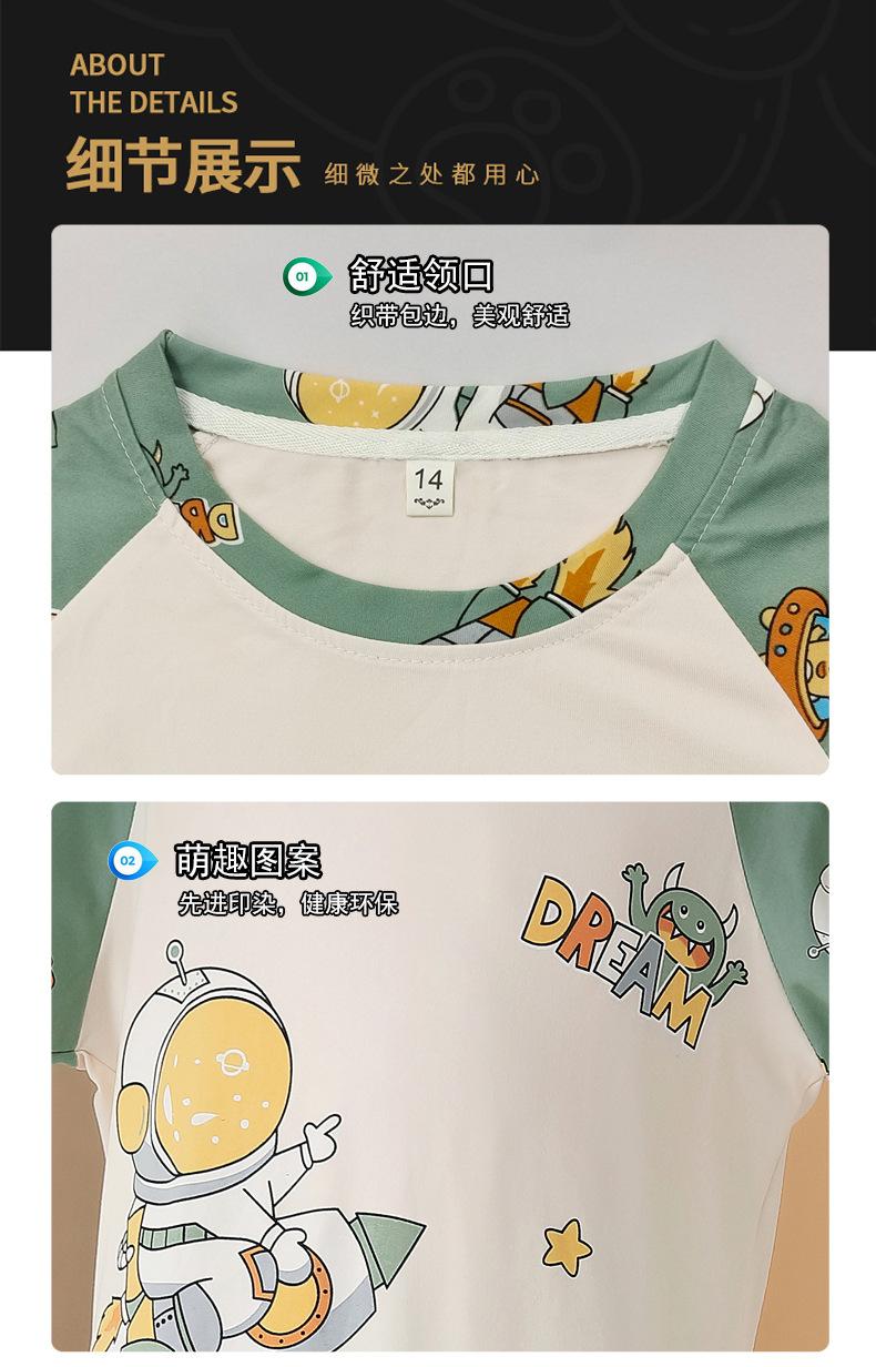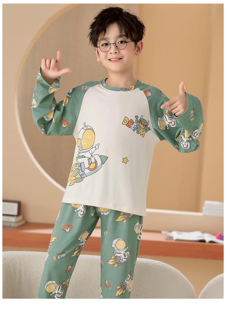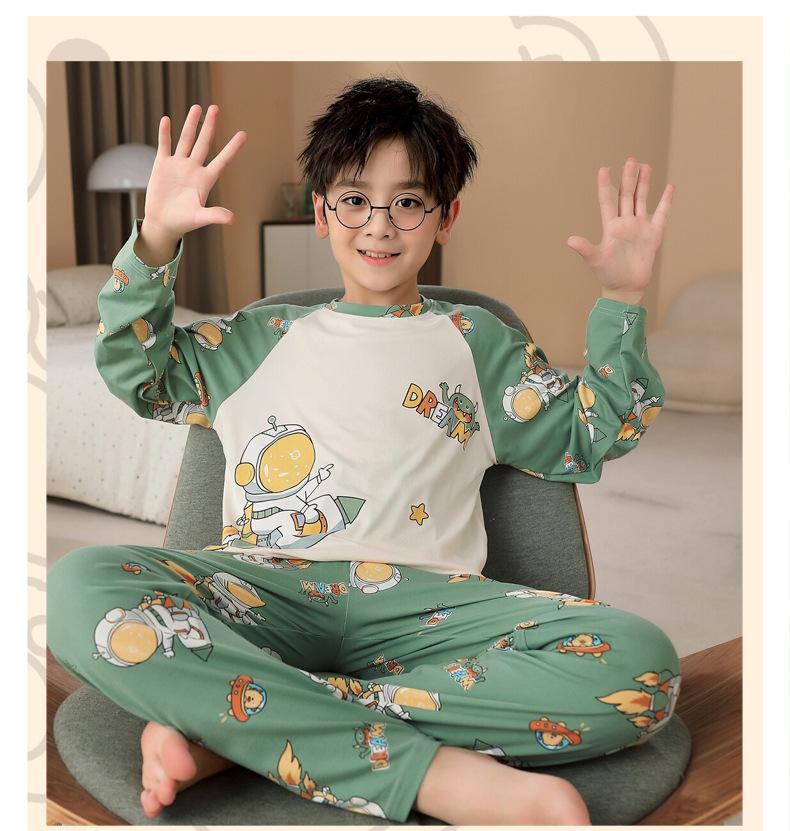 Pijamas de primavera y otoño para niños, cuello redondo, manga larga, informal, dibujos animados, para niños medianos y grandes, traje holgado y fino, ropa de casa