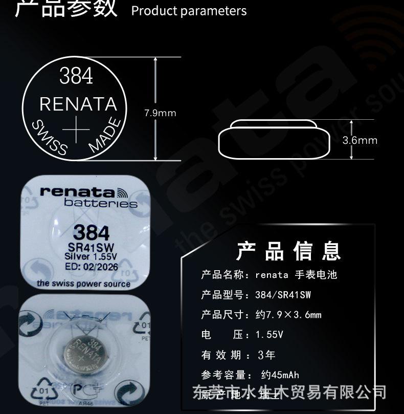 Pila de reloj Renata Renada 384 original SR41SW/LR41/L736F, botón electrónico D392, venta al por mayor