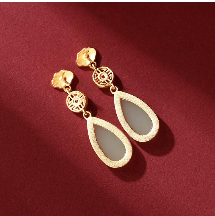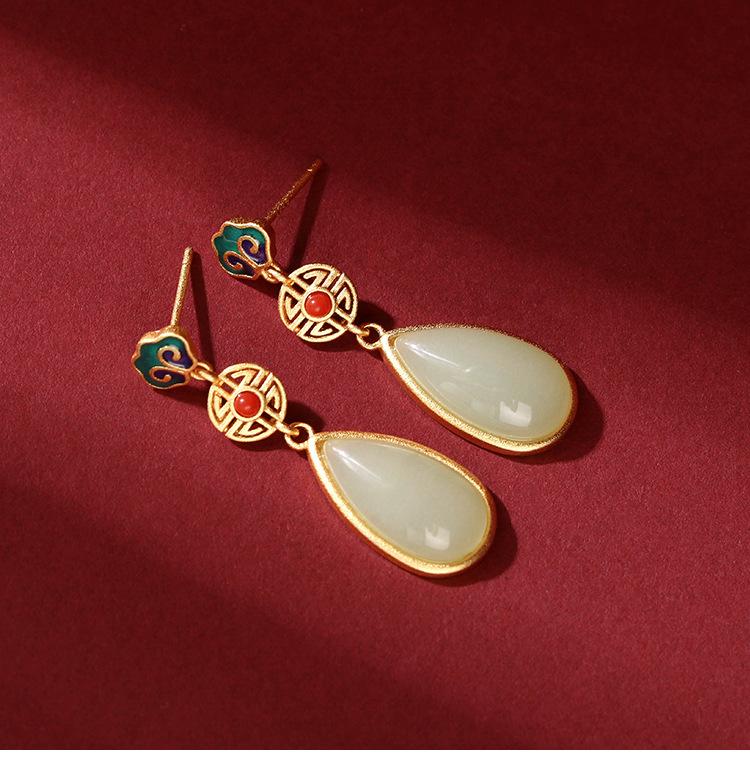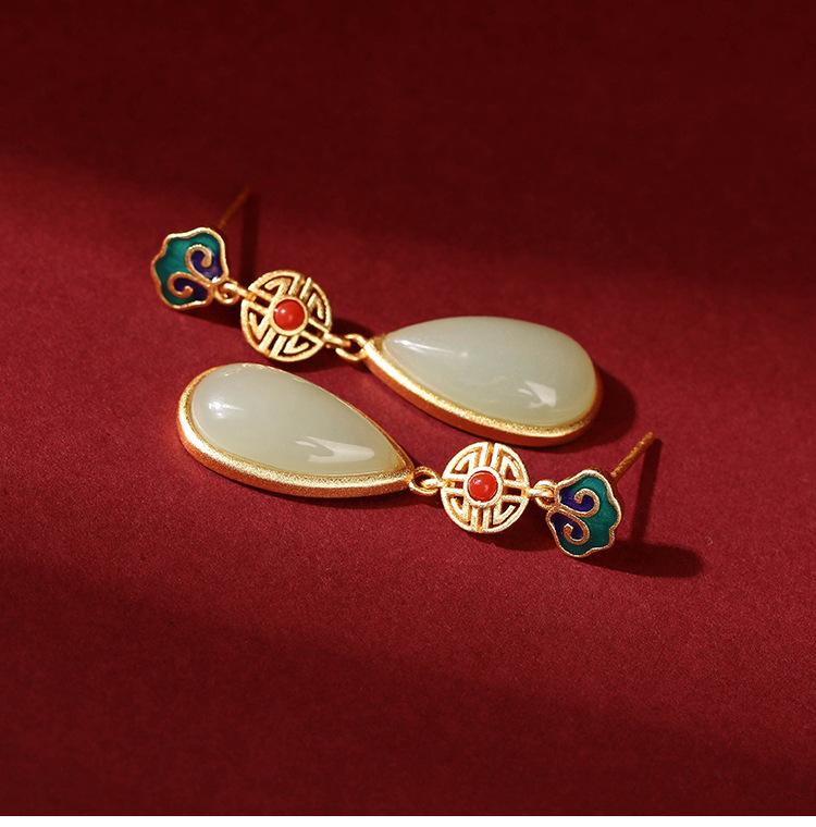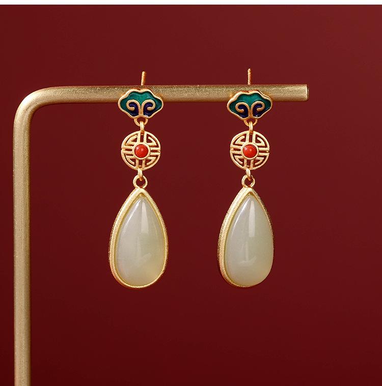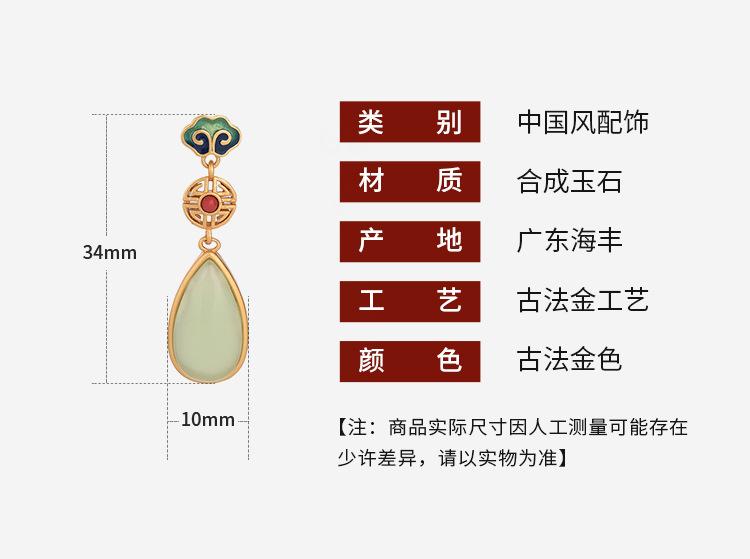 Nuevos pendientes chinos de método antiguo con incrustaciones de oro, imitación de jade hetiano, pegamento Xiangyun, pendientes antiguos, pasador de plata, pendientes vintage de verano.