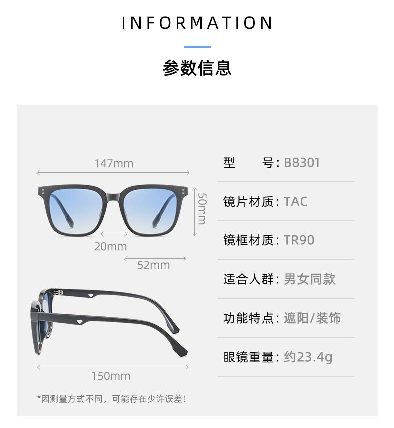 Gafas de sol polarizadas de estilo coreano para mujer, montura grande INS, modernas gafas de sol de calle con protección solar, gafas de sol polarizadas TR para hombres