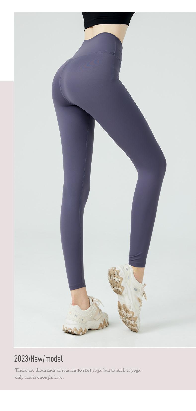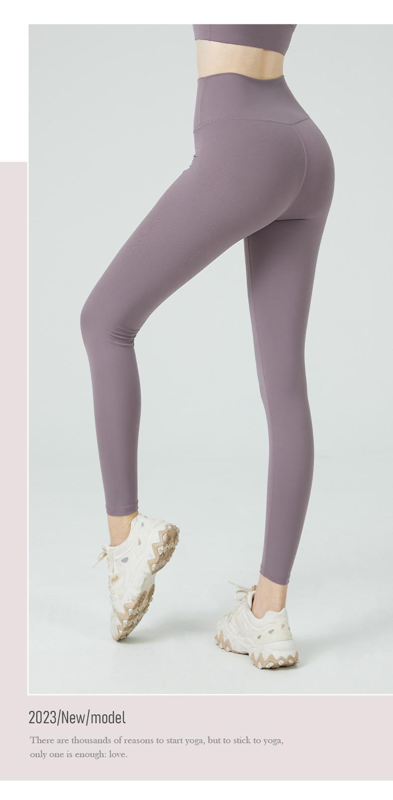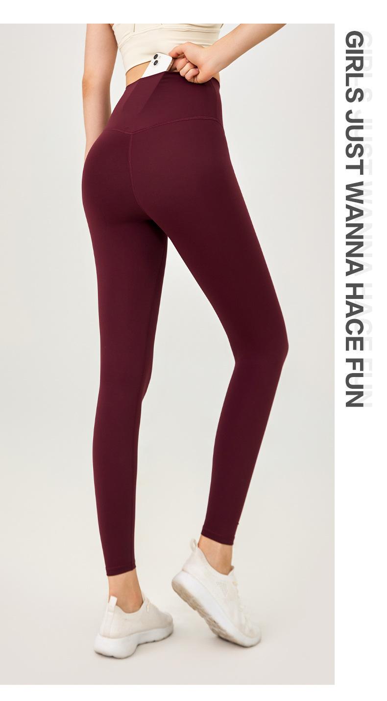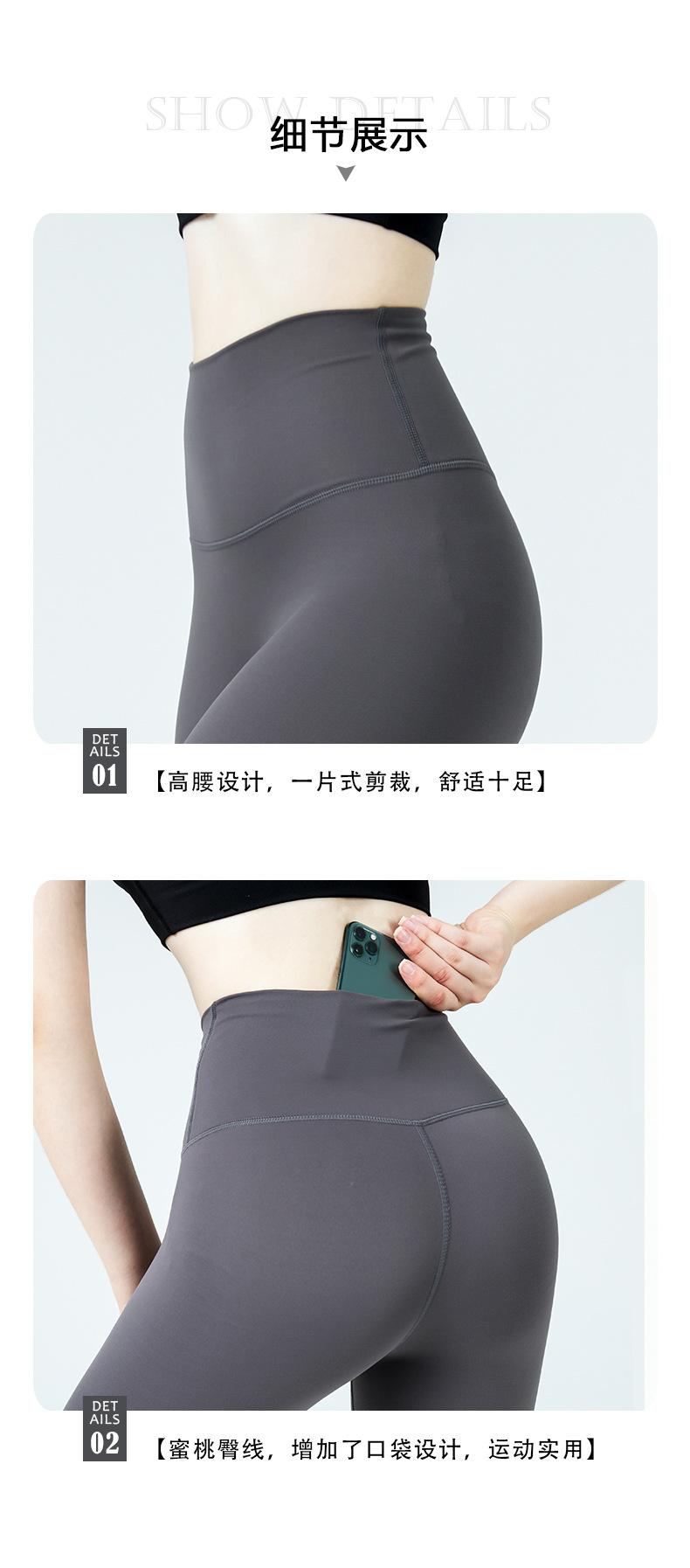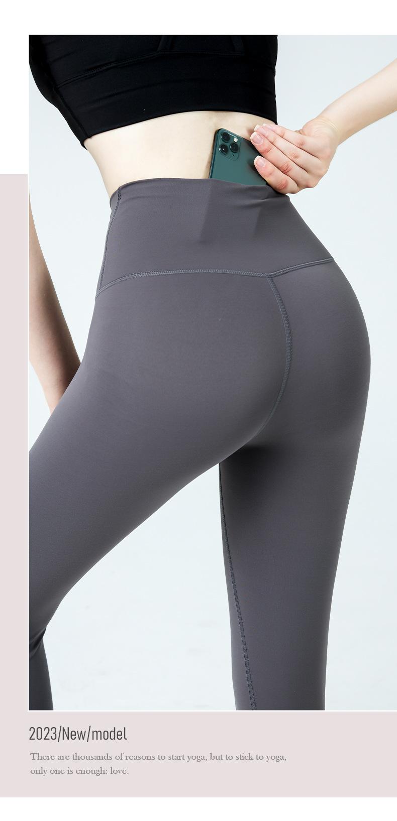 Pantalones de yoga de cintura alta con bolsillos en la cadera para mujer, estilo deportivo europeo y americano, color melocotón, ropa de yoga para mujer.