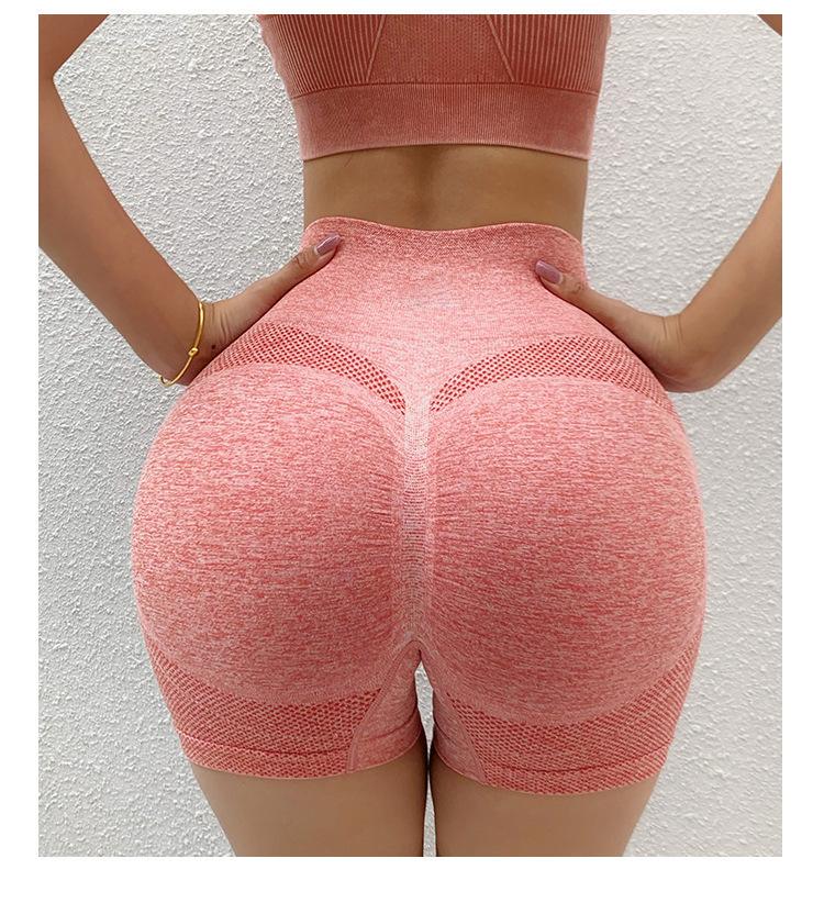 Pantalones cortos deportivos de cintura alta, ajustados, transpirables, elásticos, color melocotón, para yoga, de secado rápido, para mujer.