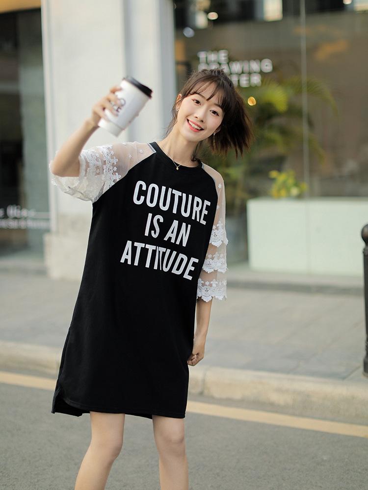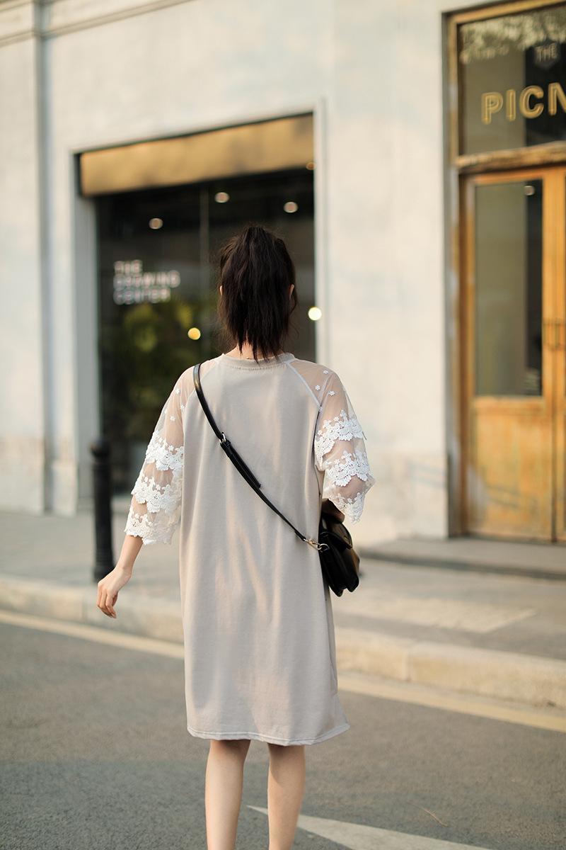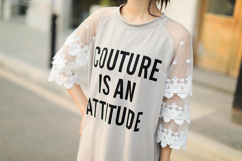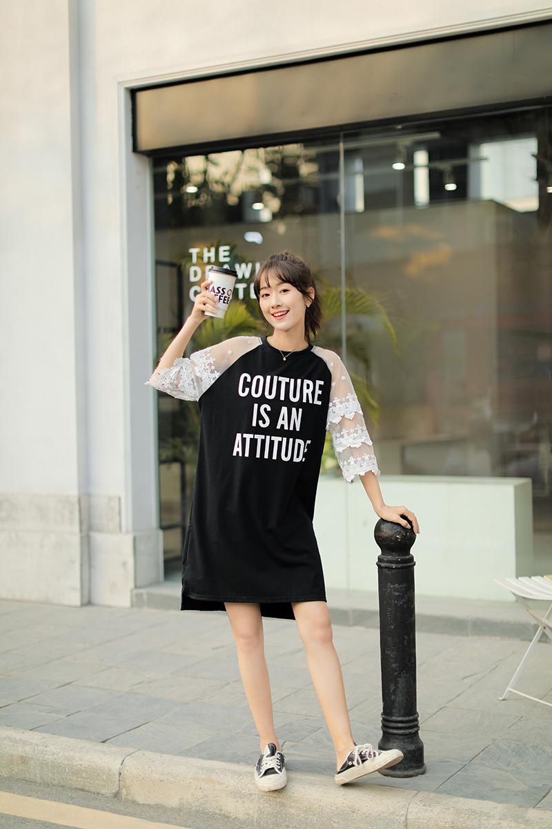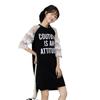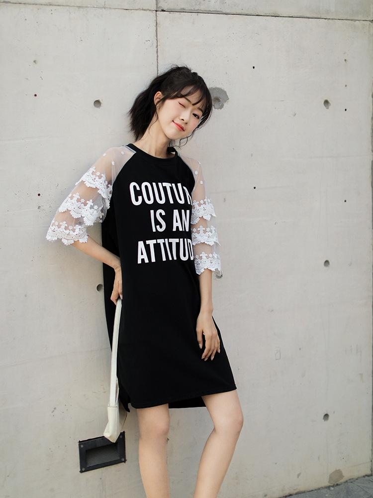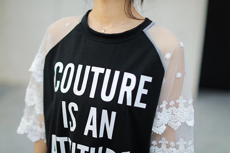 Camiseta de manga corta con costura de encaje para mujer, largo medio, nuevo diseño holgado de verano 2022, falda interior de media manga de talla grande