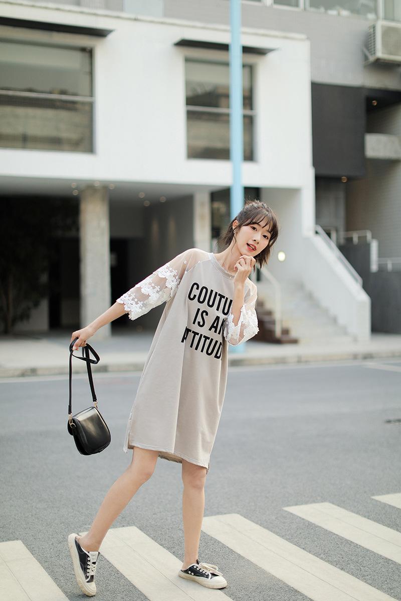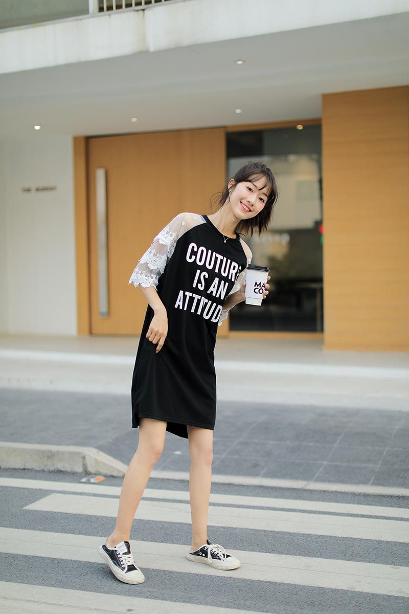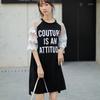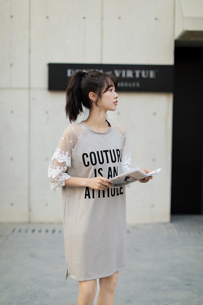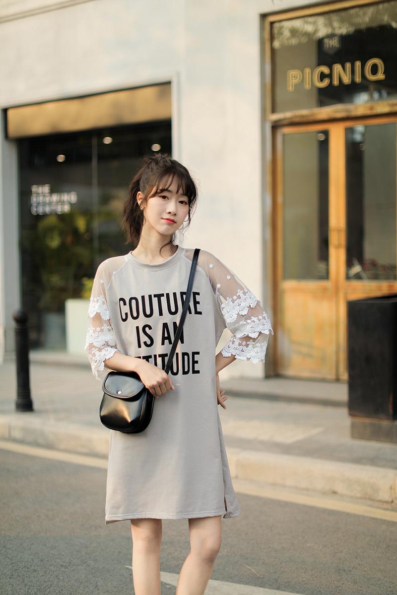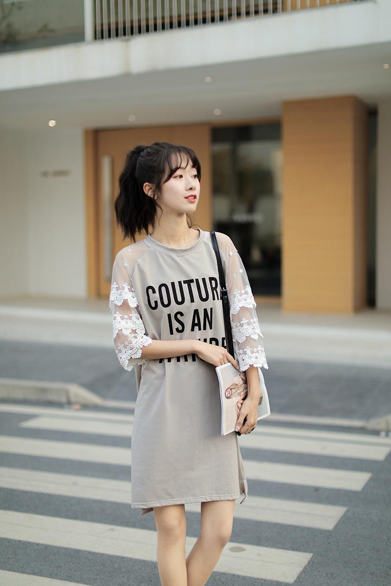 Camiseta de manga corta con costura de encaje para mujer, largo medio, nuevo diseño holgado de verano 2022, falda interior de media manga de talla grande