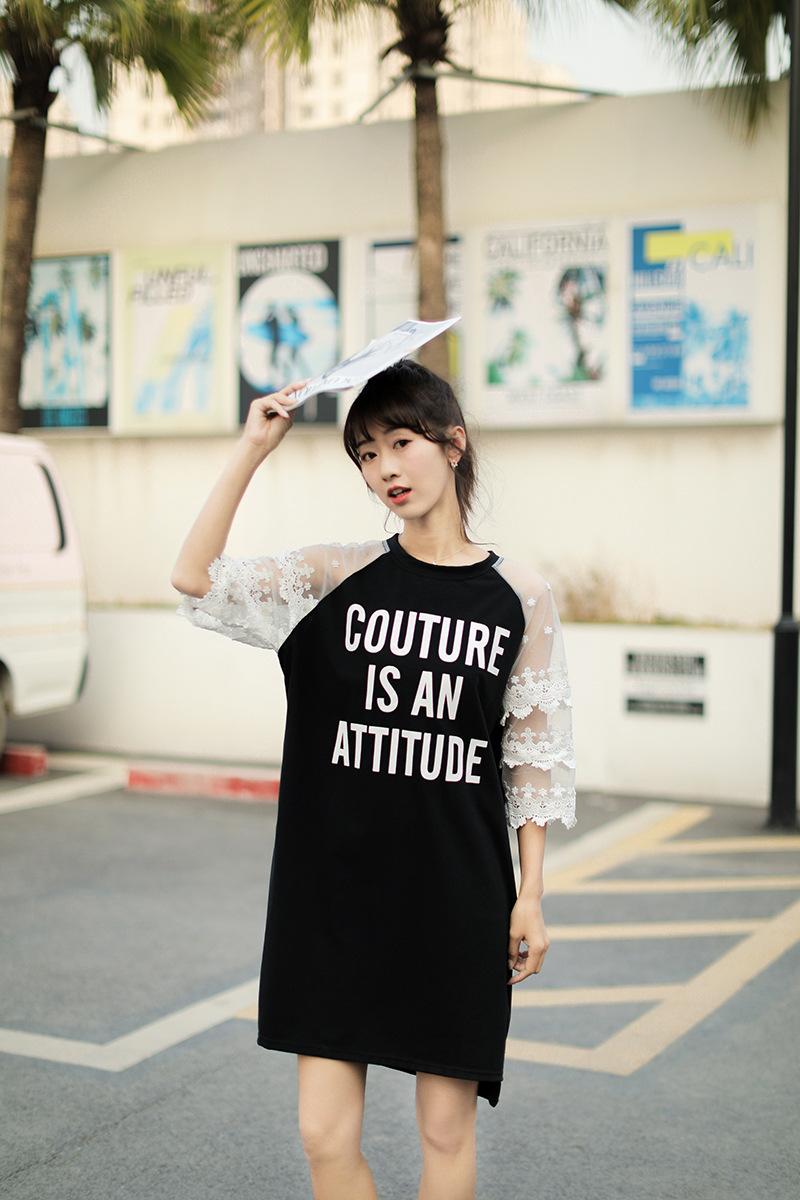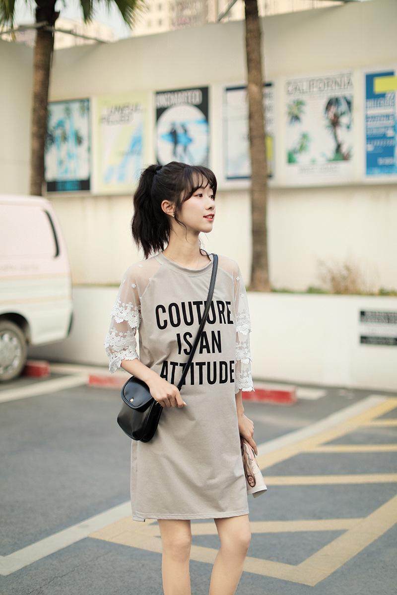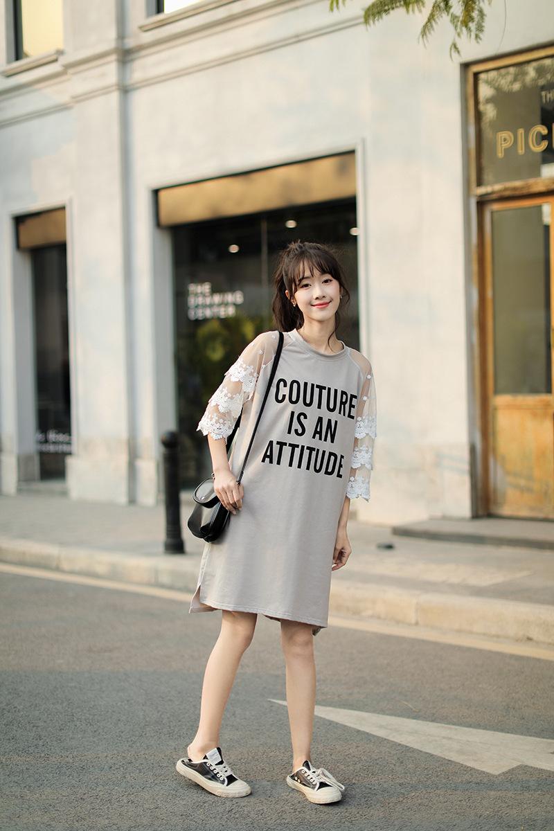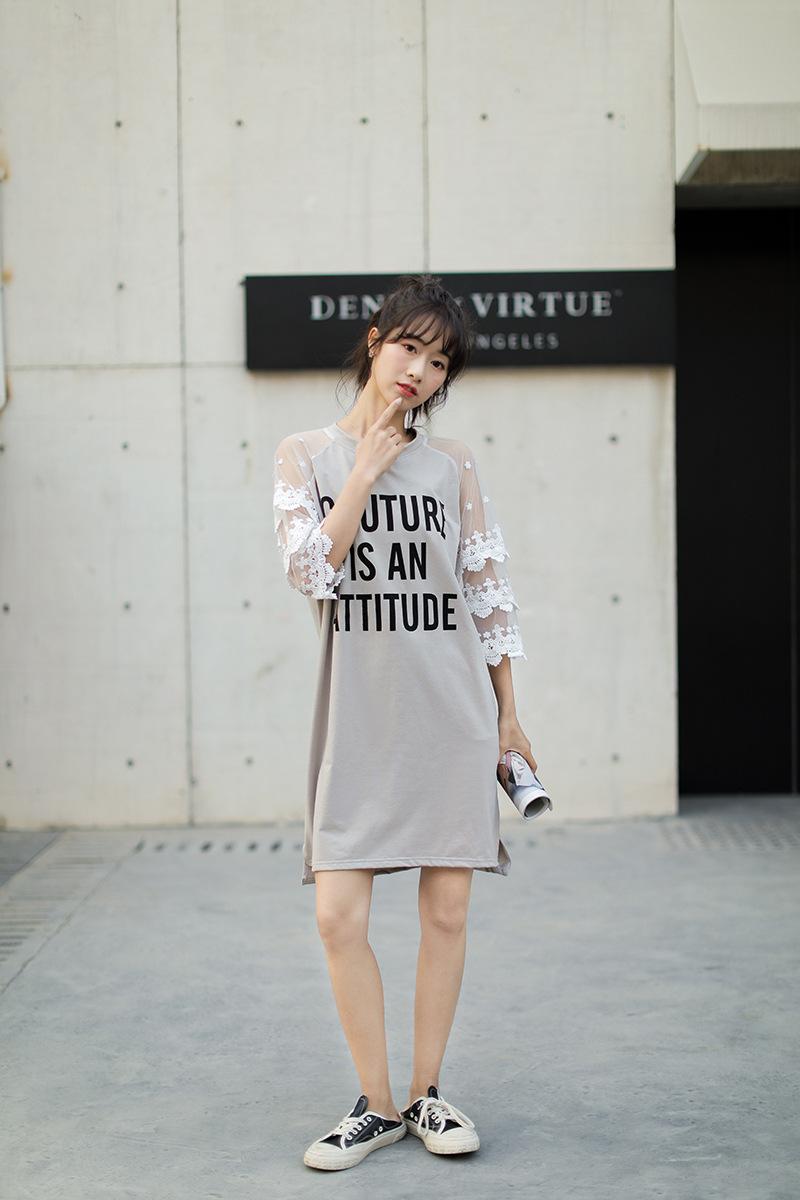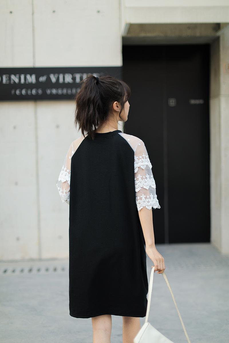 Camiseta de manga corta con costura de encaje para mujer, largo medio, nuevo diseño holgado de verano 2022, falda interior de media manga de talla grande