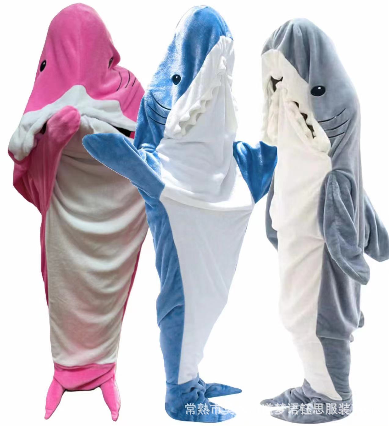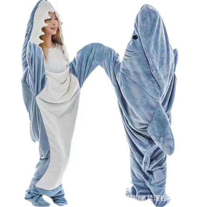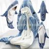 Cobija de tiburón transfronteriza para adulto, sudadera con capucha de franela súper suave, saco de dormir de tiburón, pijama de una pieza holgado y portátil