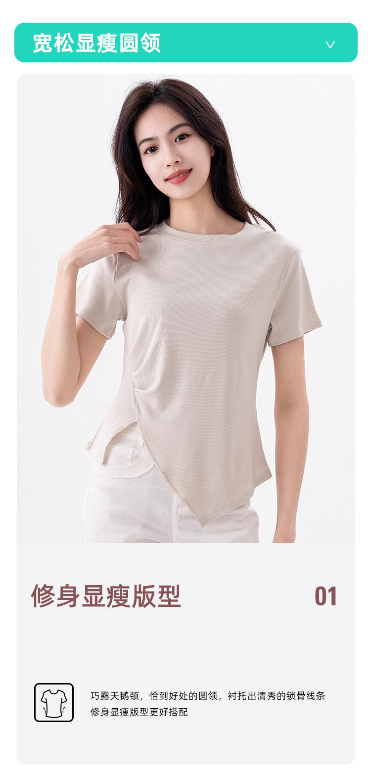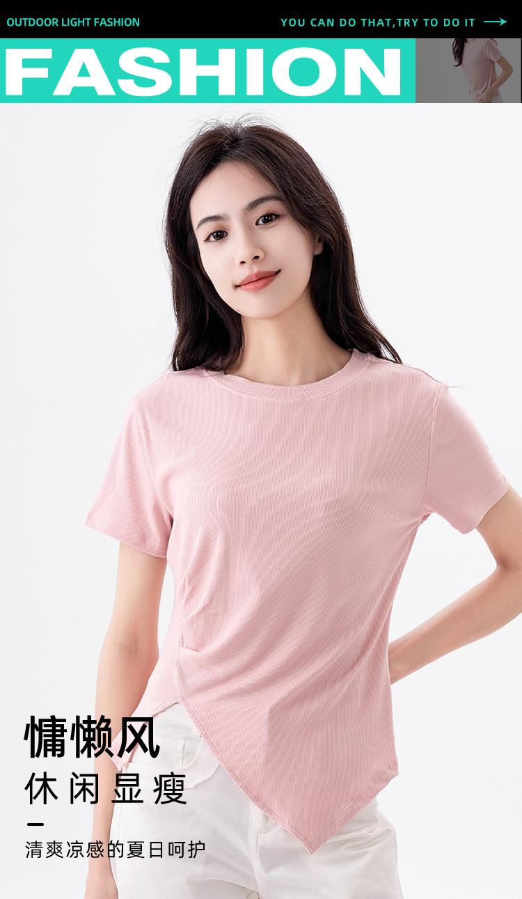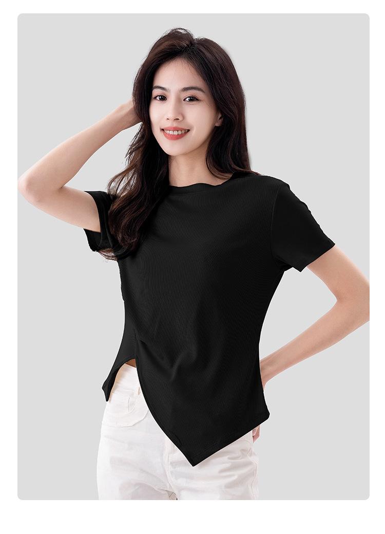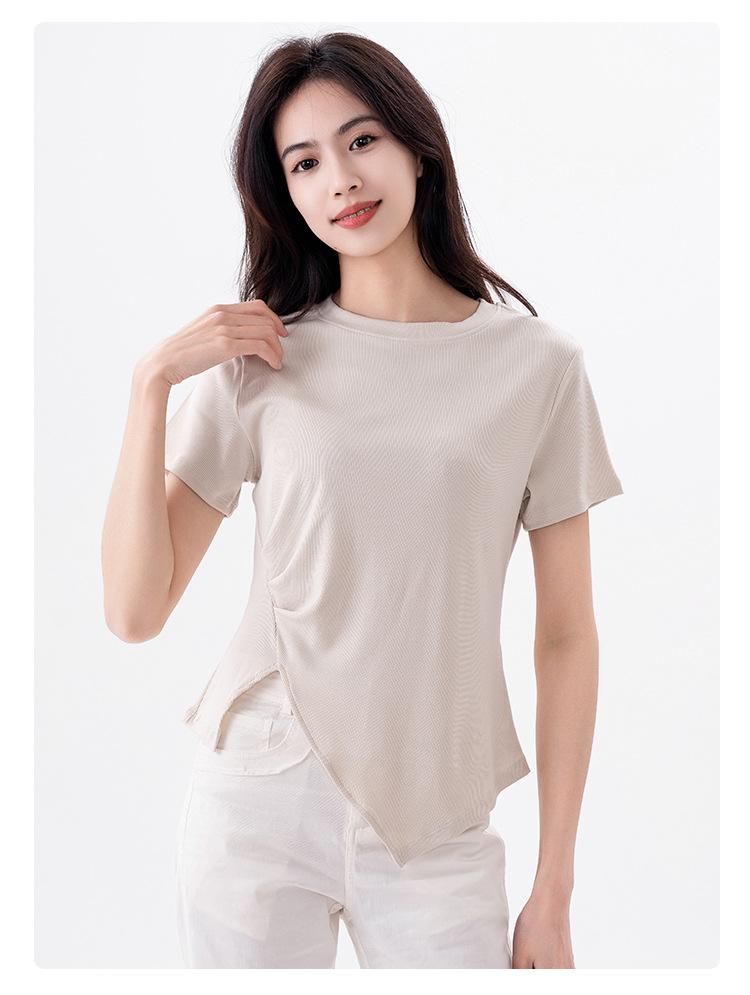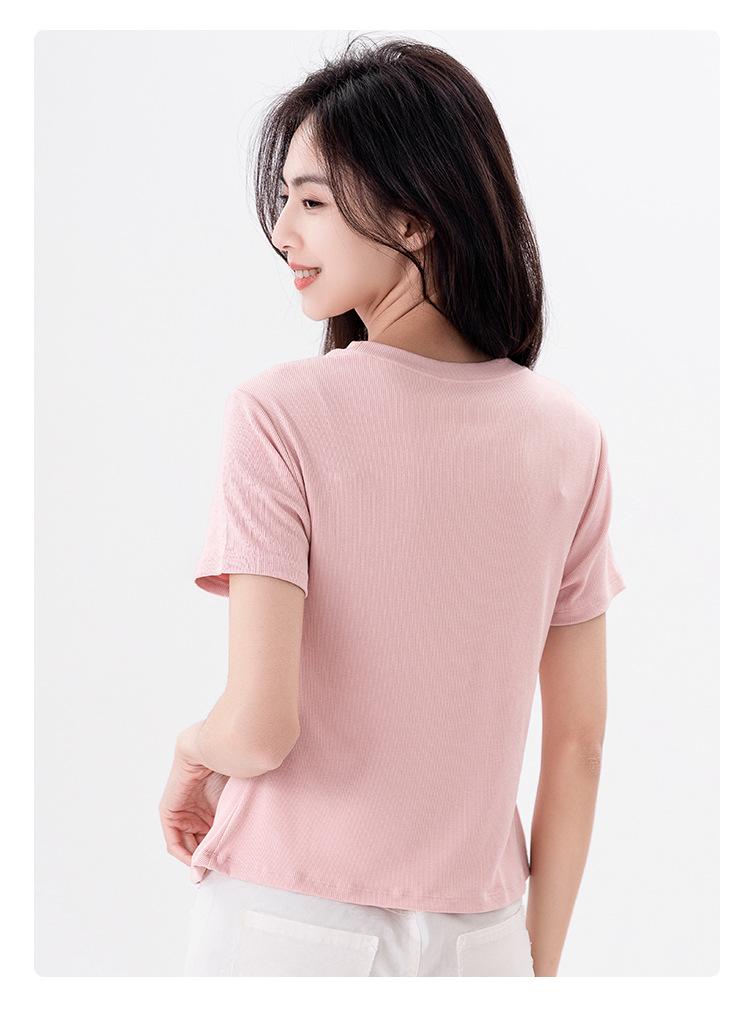 Playera Acanalada de Manga Corta para Mujer 2024 Verano Nueva Ropa de Mujer Slim Hombro Derecho Corta Versátil Adelgazante Camiseta para Fondo