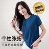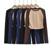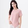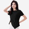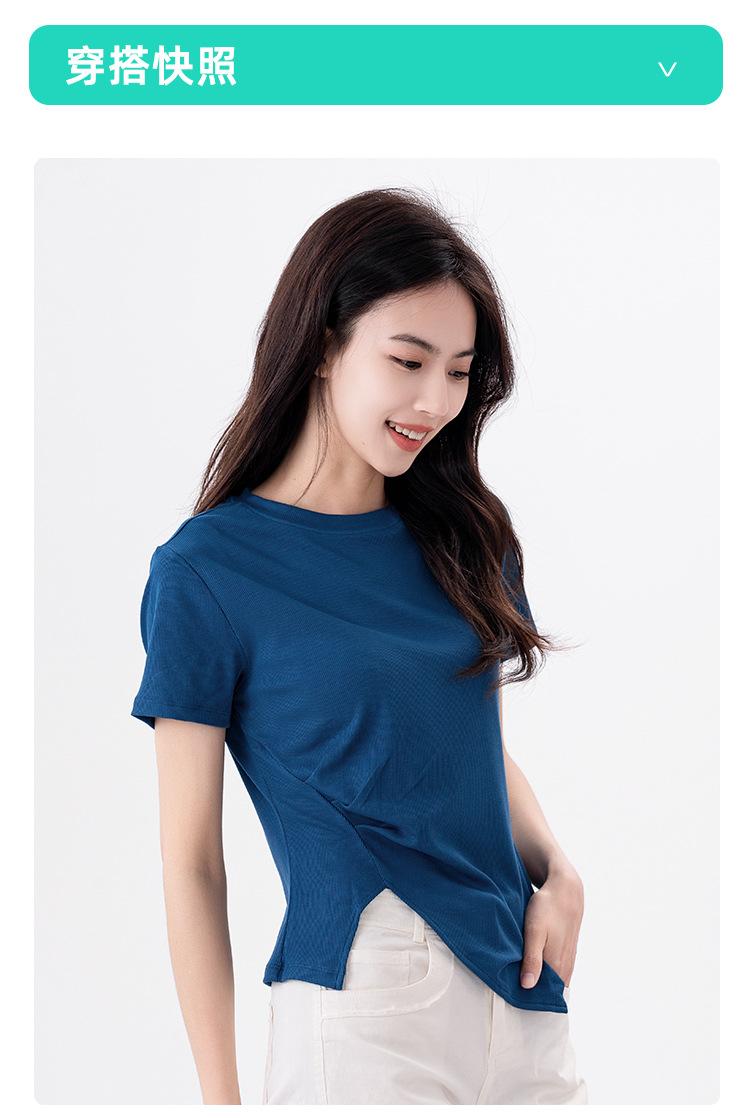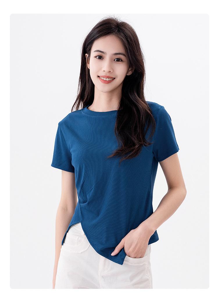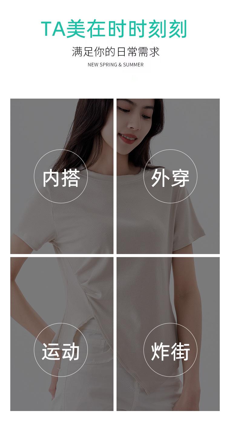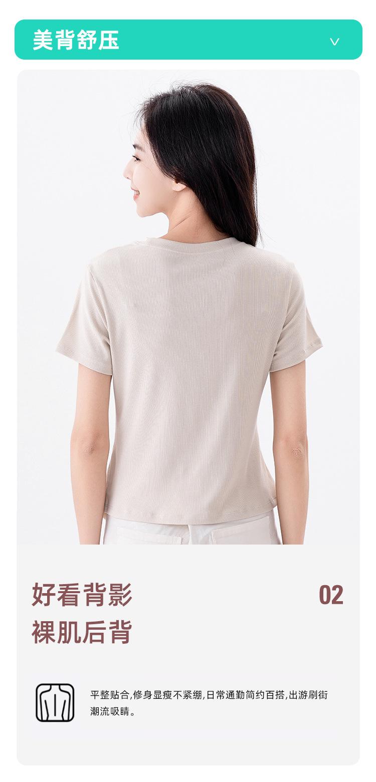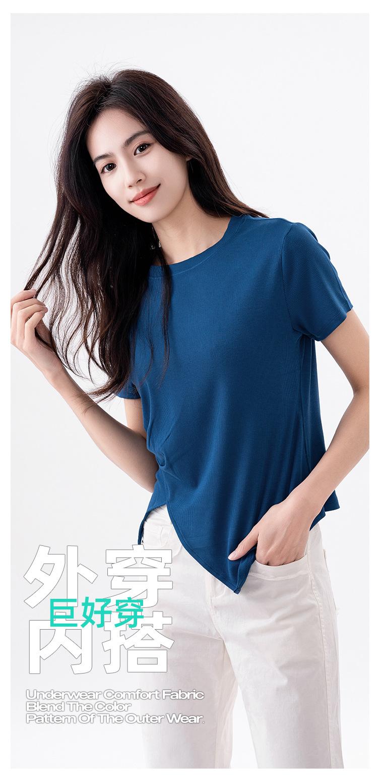 Playera Acanalada de Manga Corta para Mujer 2024 Verano Nueva Ropa de Mujer Slim Hombro Derecho Corta Versátil Adelgazante Camiseta para Fondo