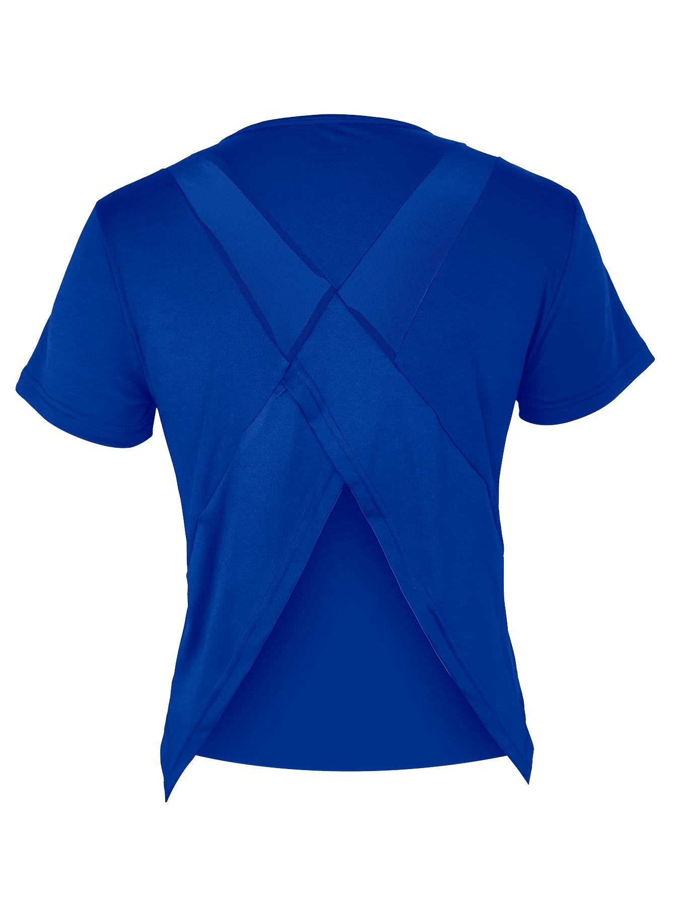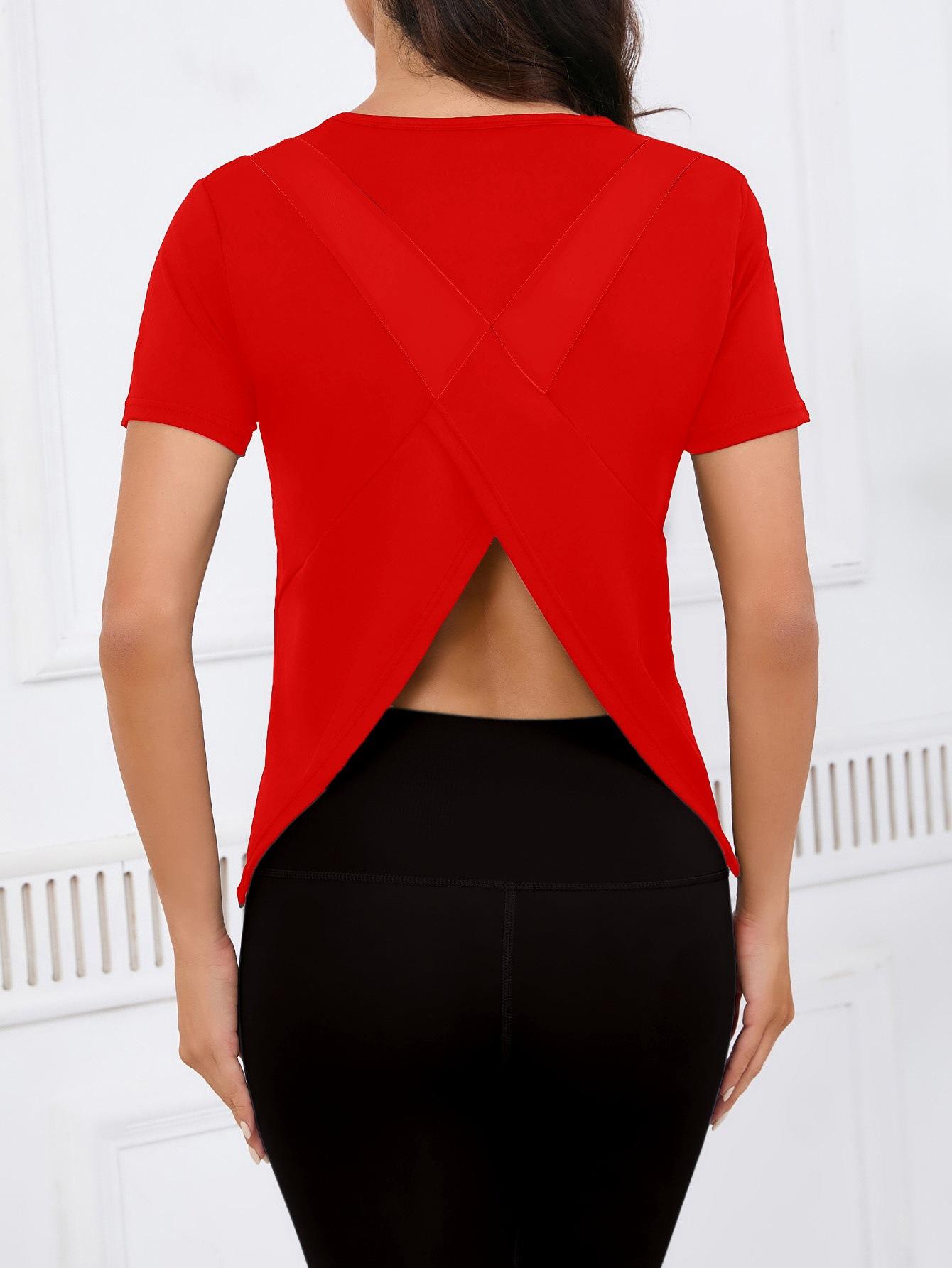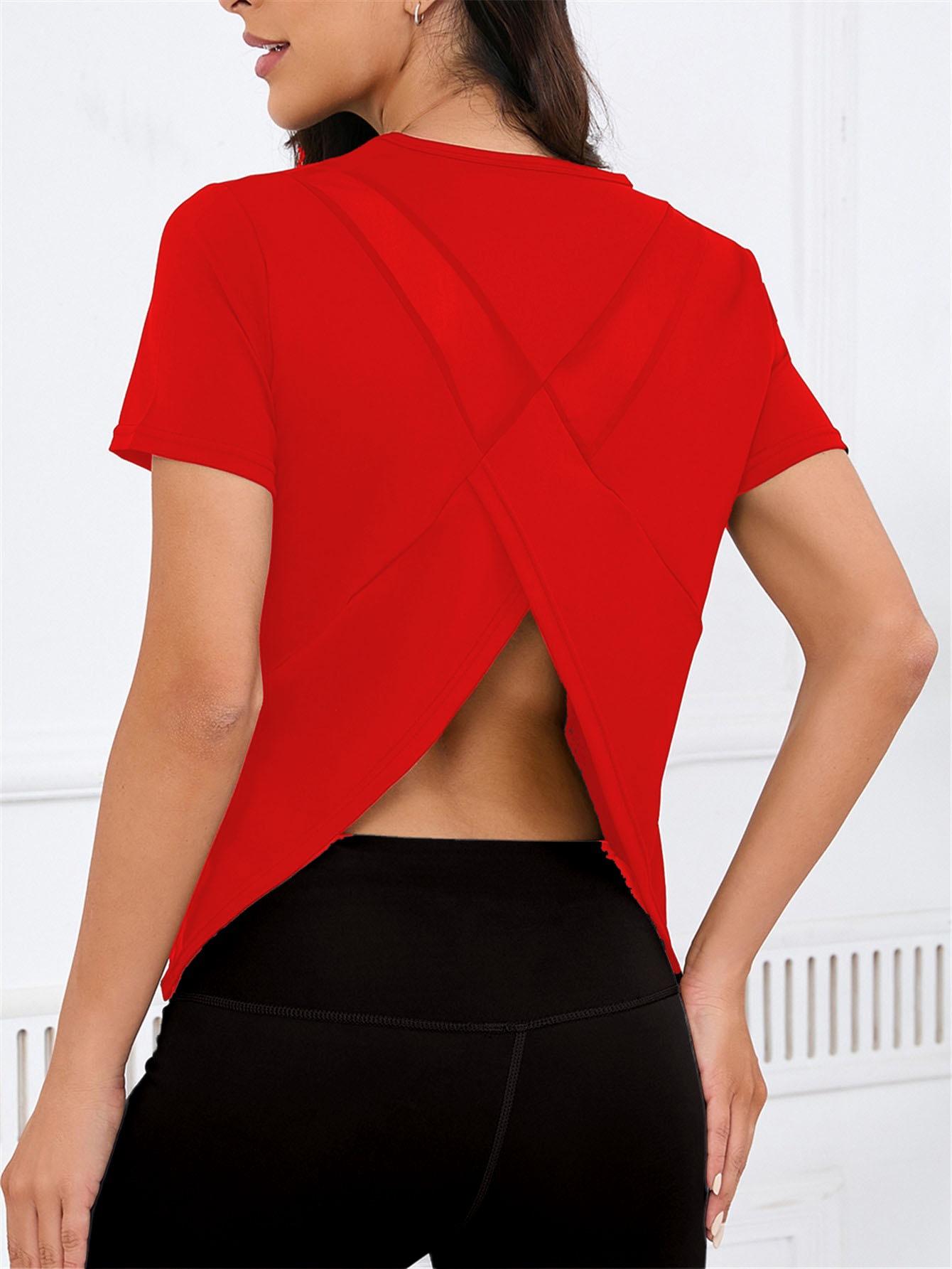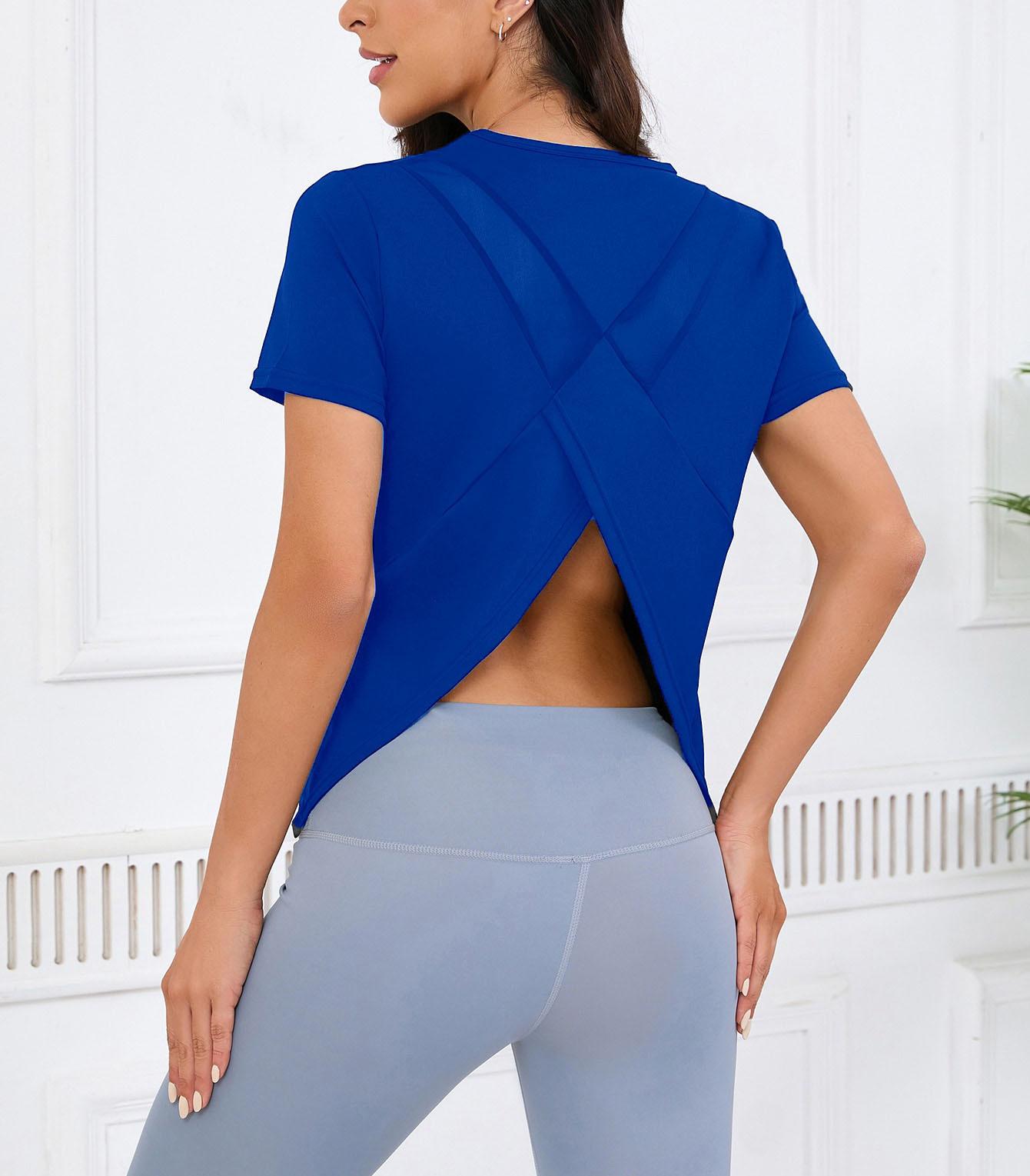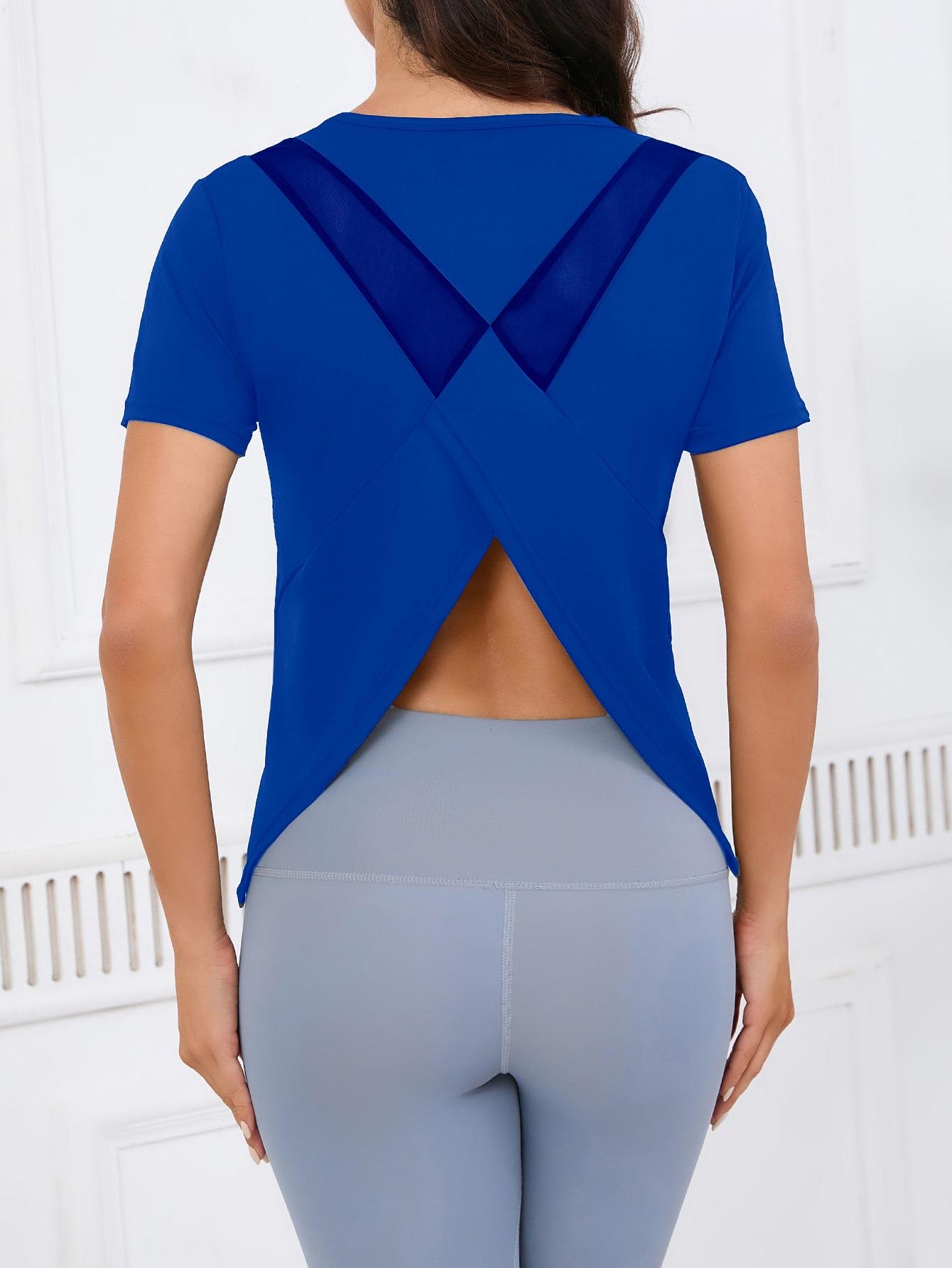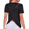 Ropa de yoga para mujer, camiseta deportiva de verano, suelta, transpirable, de secado rápido, de malla, para entrenamiento de espalda, fitness, manga corta