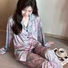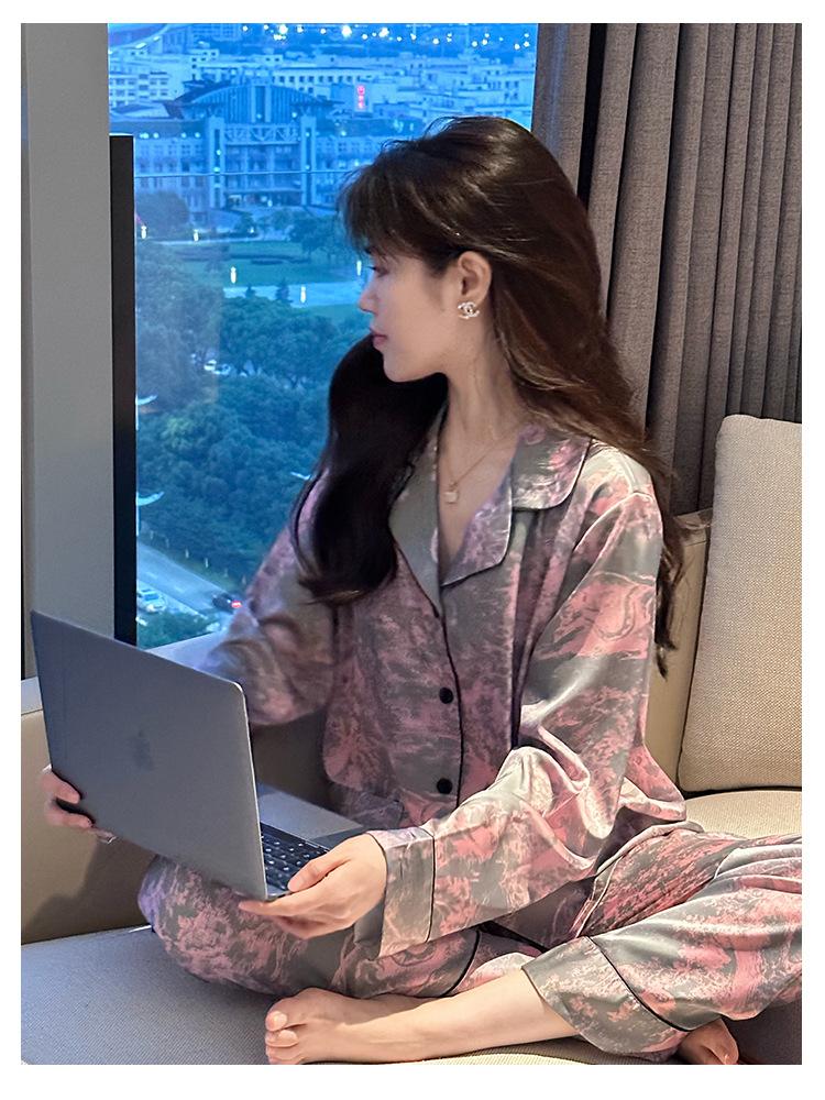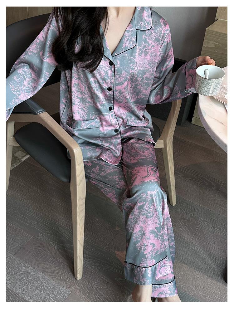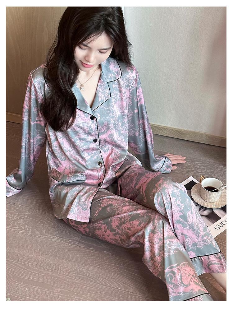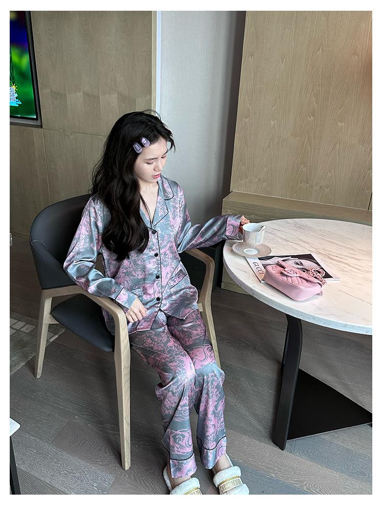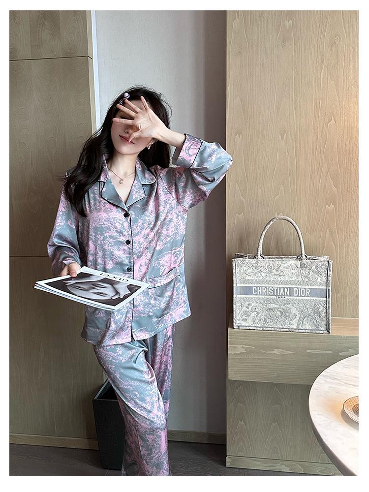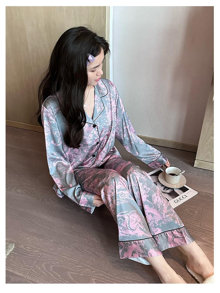 [Buenos días] Pijamas de seda helada estampados para mujer, ropa de hogar holgada, fina y de alta gama, 2023