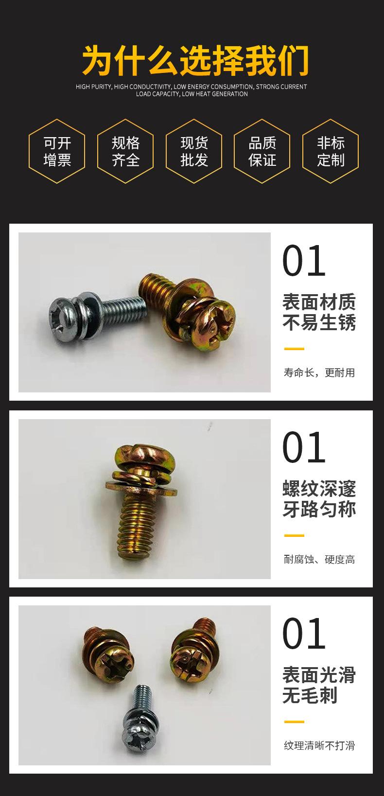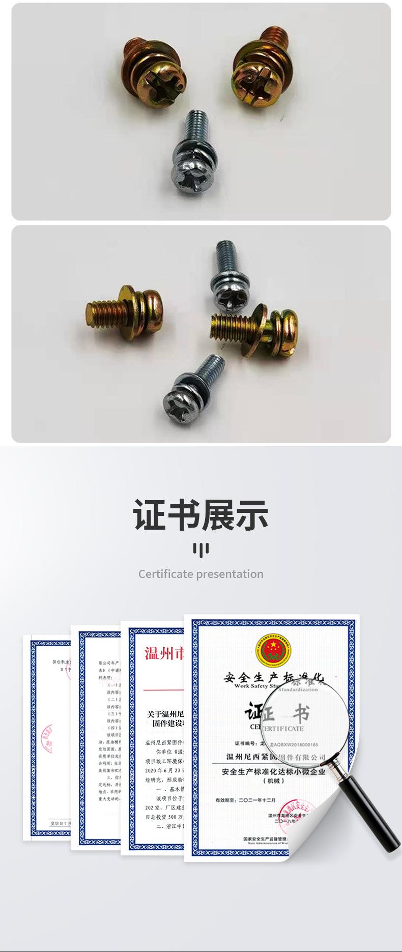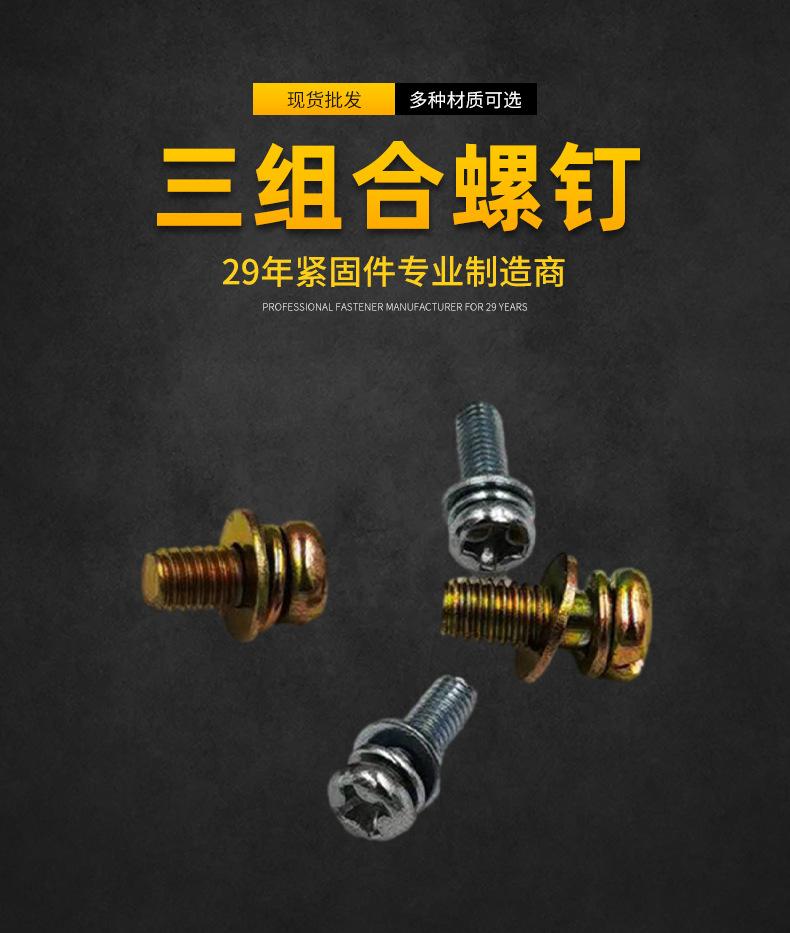Tornillo de combinación cruz cabeza redonda arandela plana arandela elástica tornillo de tres combinaciones cabeza plana galvanizado niquelado máquina alambre GB9074.8