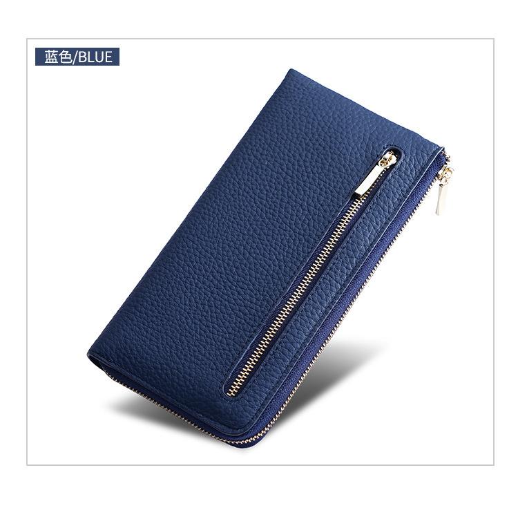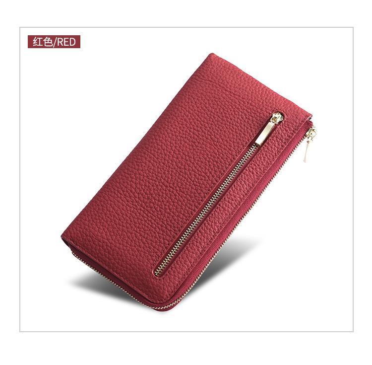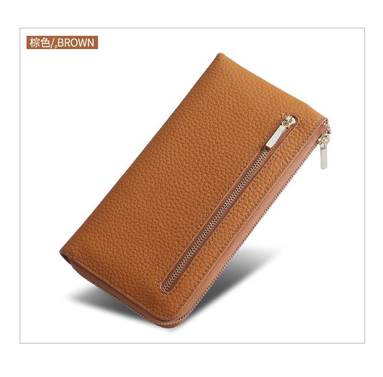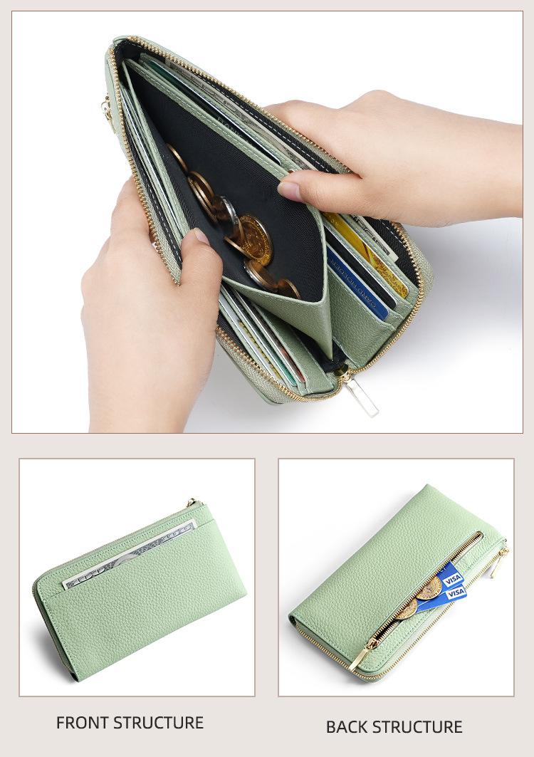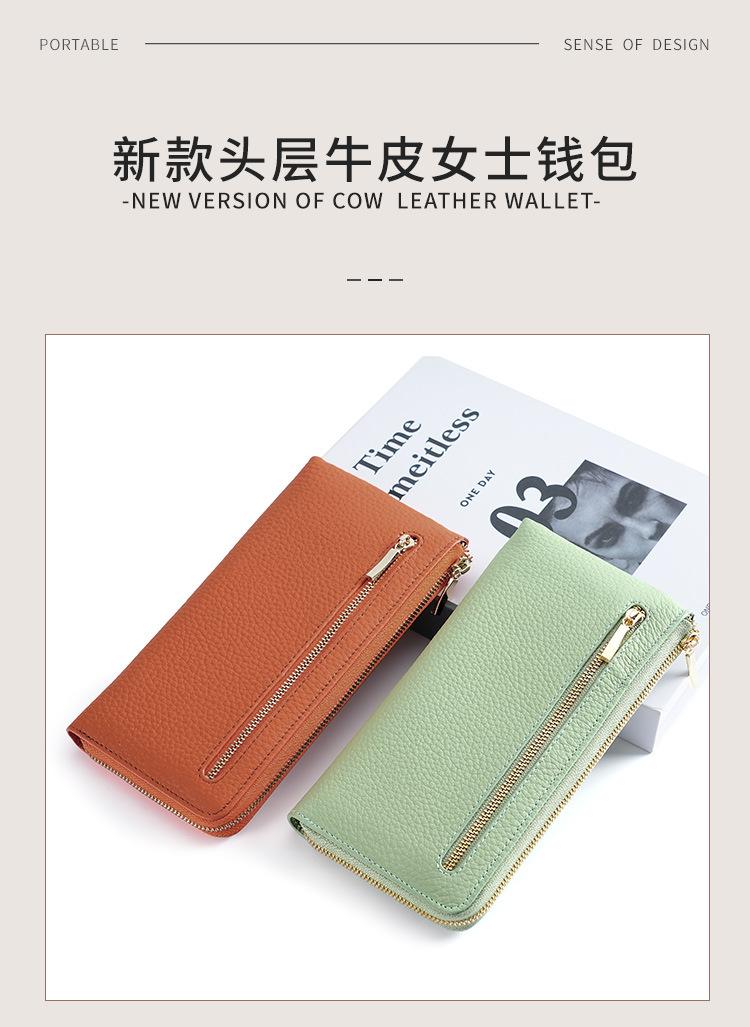 Nueva cartera de cuero genuino de Amazon, con RFID, antirrobo, con cepillo, multitarjeta, larga, de piel de vaca, monedero japonés para mujer