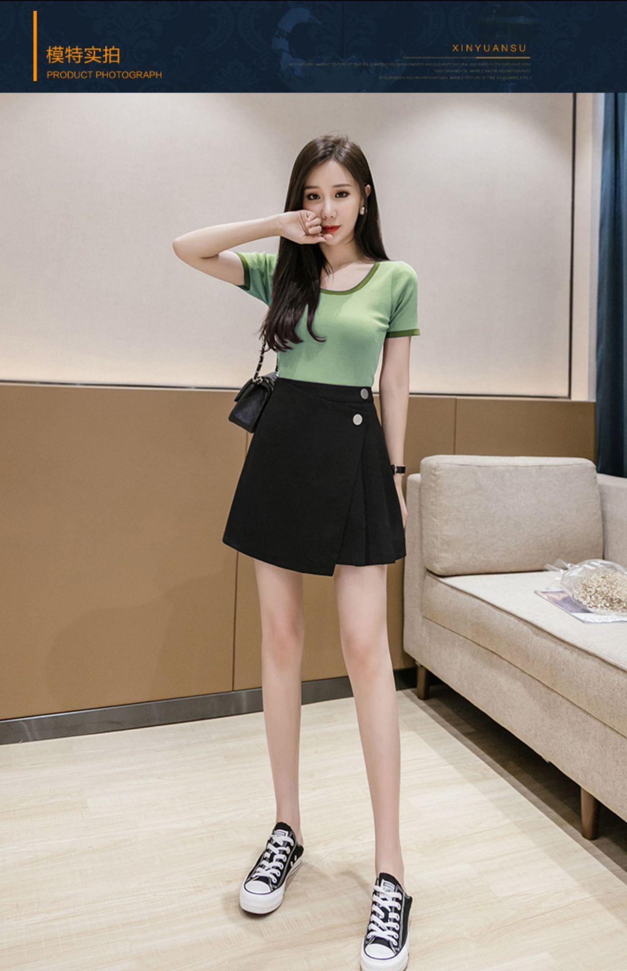 Falda línea A para hermana gordita Irregular Cubre vientre Cintura alta Talla grande Estilo coreano Falda adelgazante Ins Super Hot Pantalones cortos para mujer