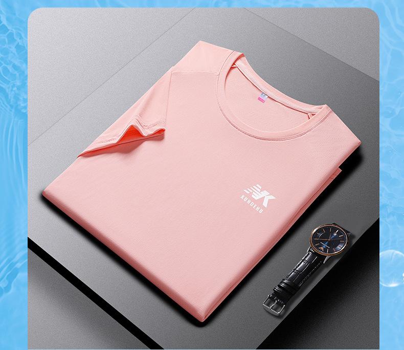 Camiseta de manga corta de seda de hielo para hombre, de secado rápido, fina, holgada, de verano, de talla grande, deportiva, de media manga, de malla transpirable.